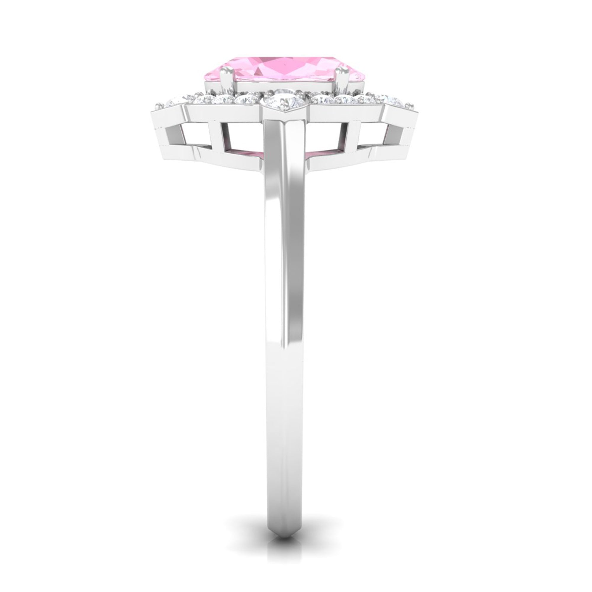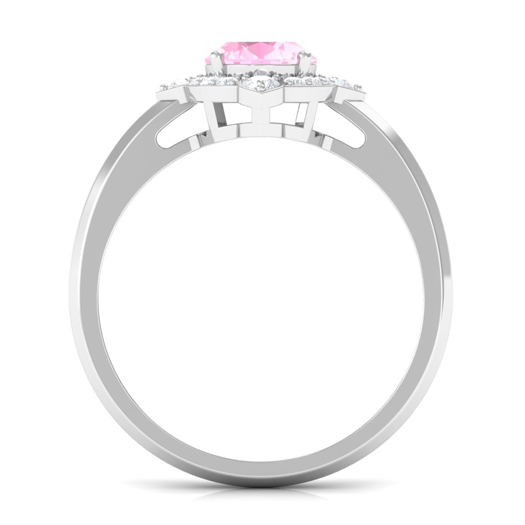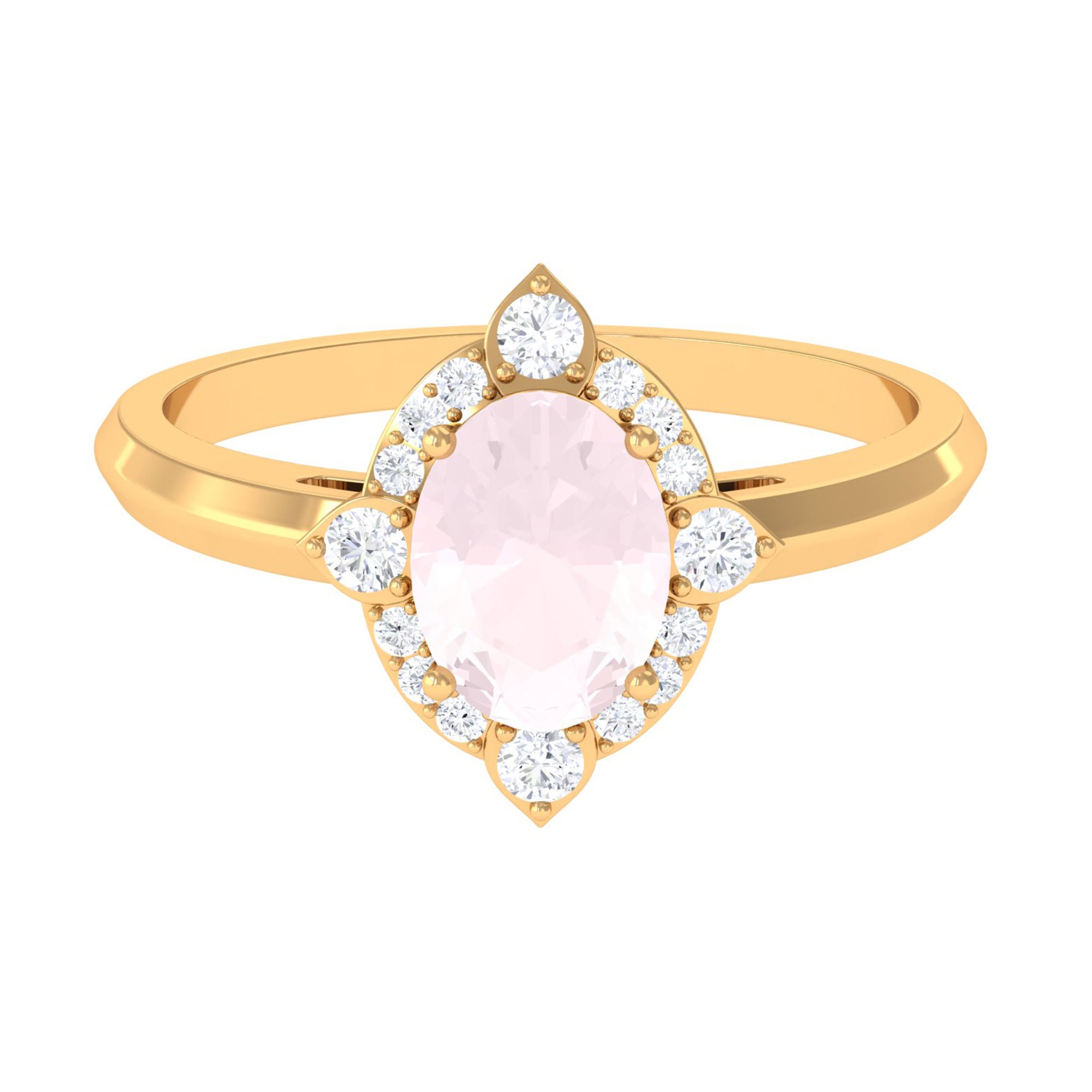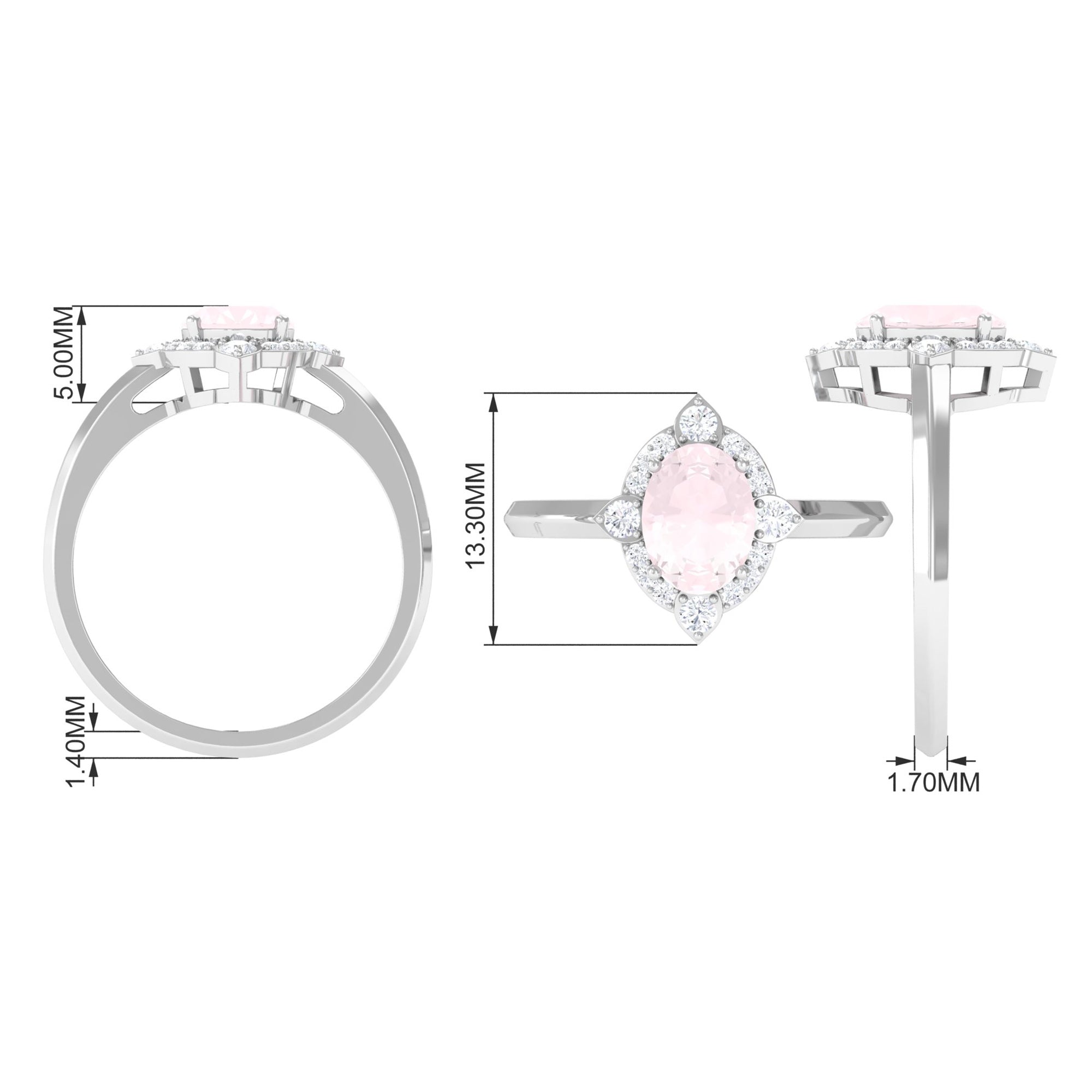 1.50 CT Art Deco Engagement Ring with Oval Shape Rose Quartz and Diamond Accent