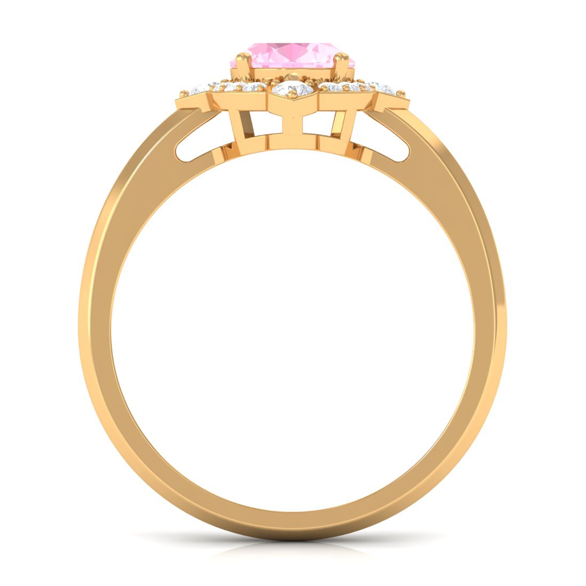 Profess your love with this Art Deco Engagement Ring is adorned with Oval Shape Rose Quartz set as a solitaire in a prong setting with Round Shape Diamond Accent. This Gold Art Deco Ring is mounted in Solid Gold.