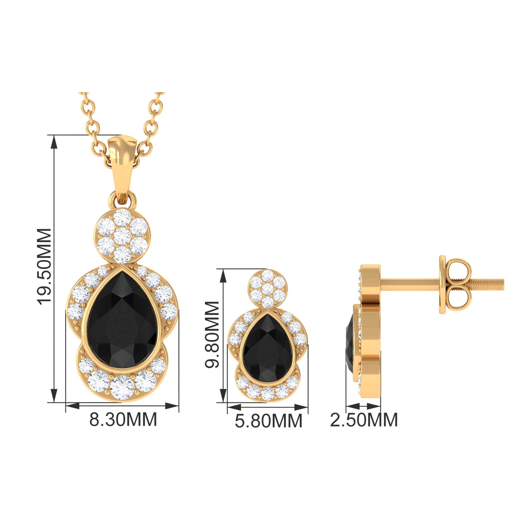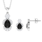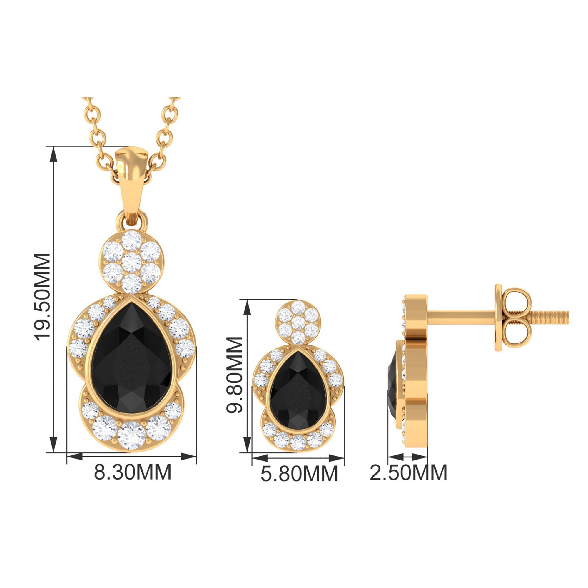 1.50 CT Black Onyx Dangle Jewelry Set with Diamond Stones
