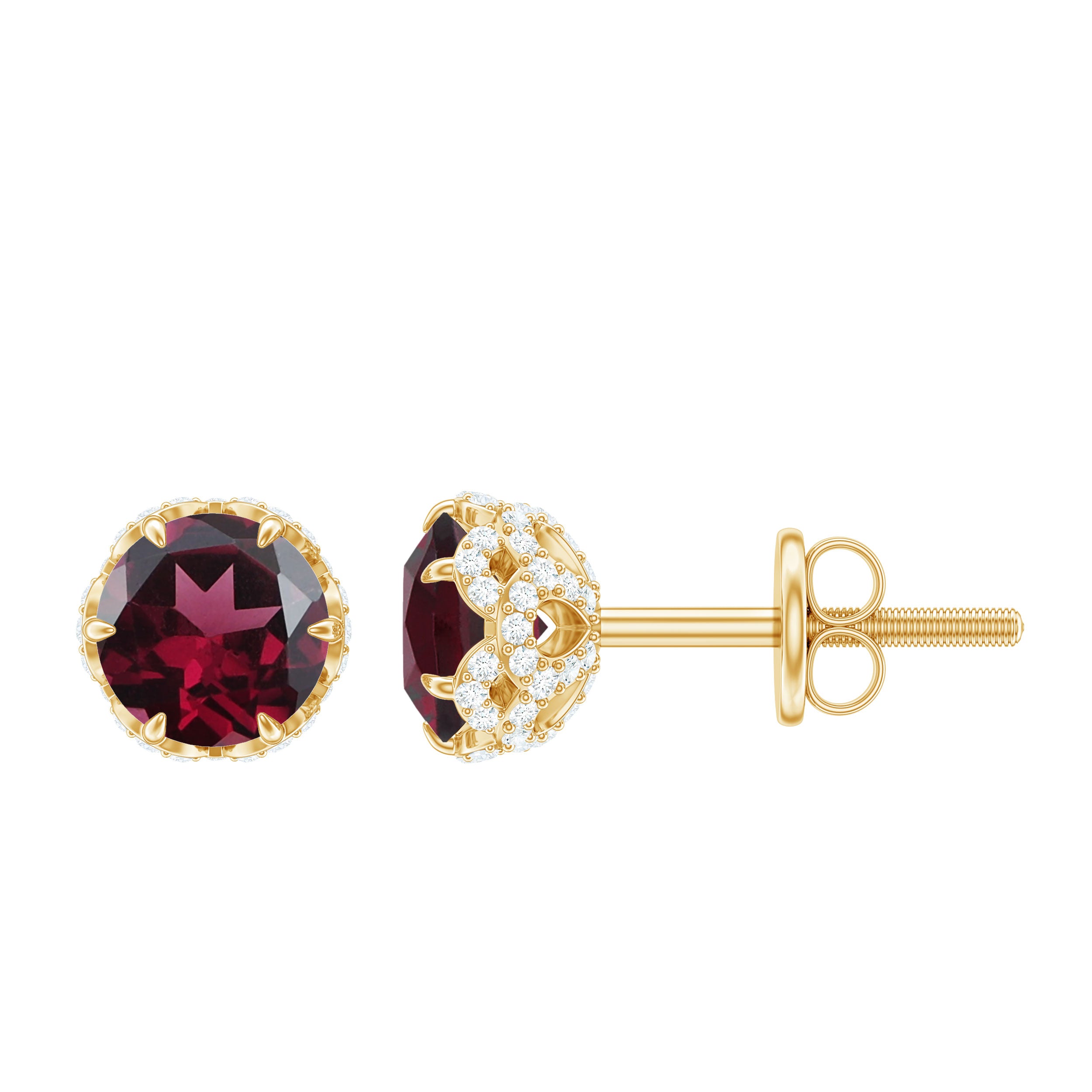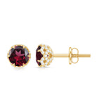 Enhance your Beauty with these Solitaire Stud Earrings embellished with Round Shape Rhodolite set as Solitaire in Claw Setting and round shape Diamond is set in Decorative Setting.