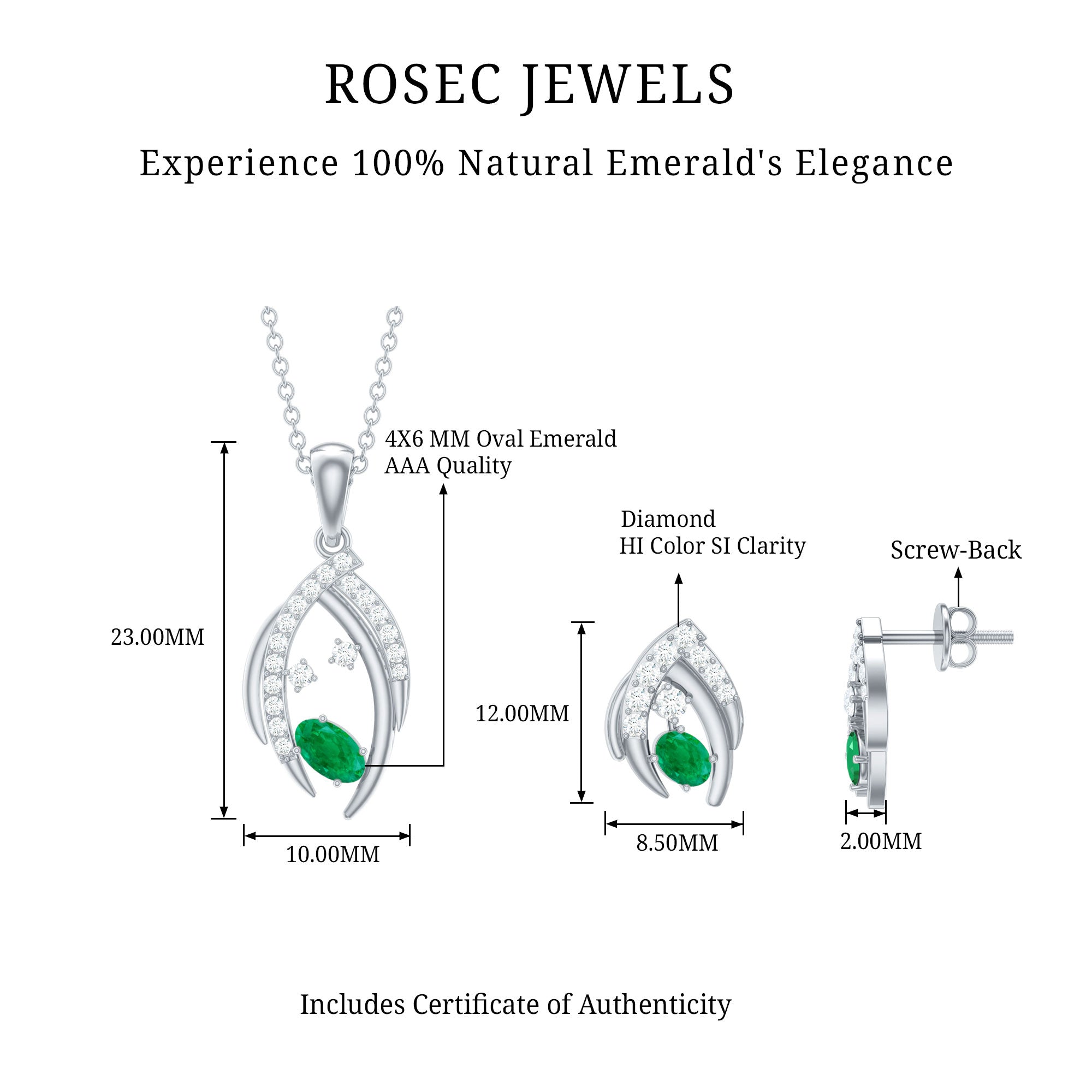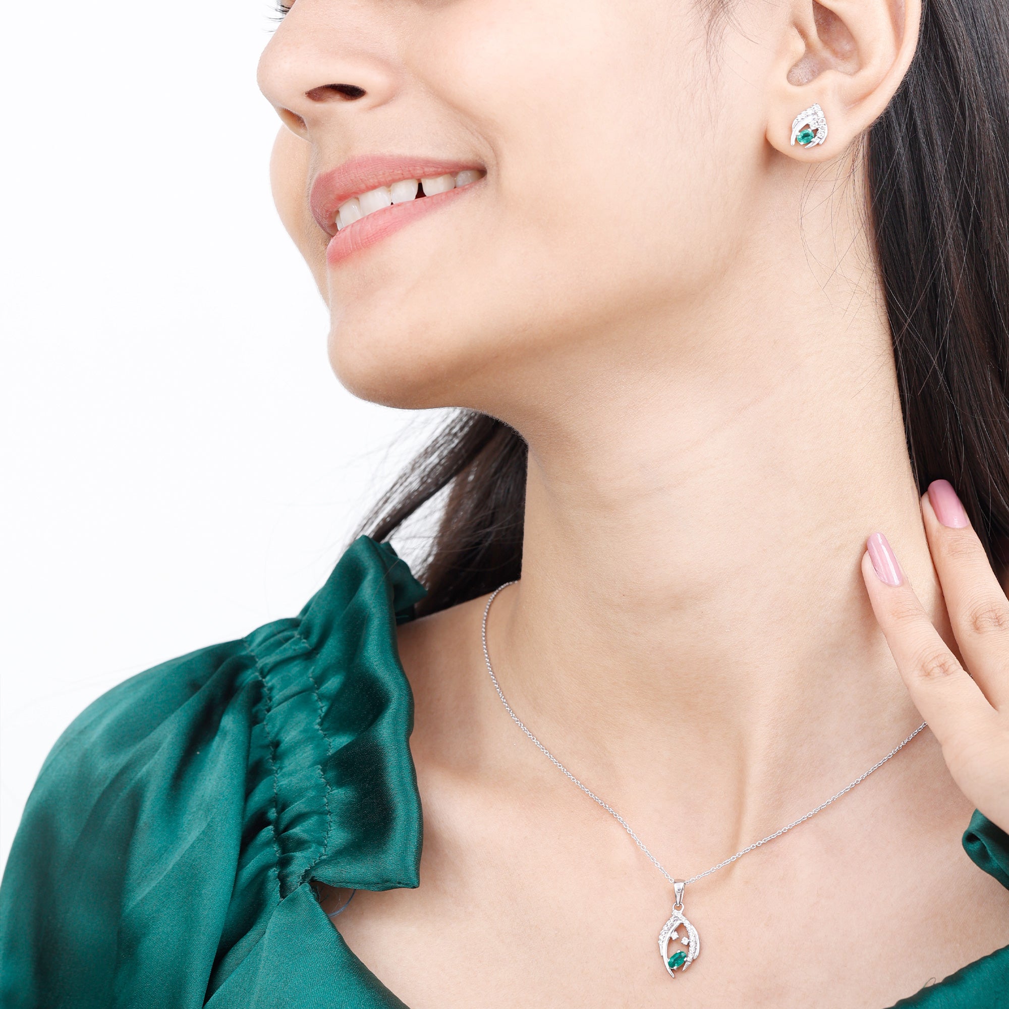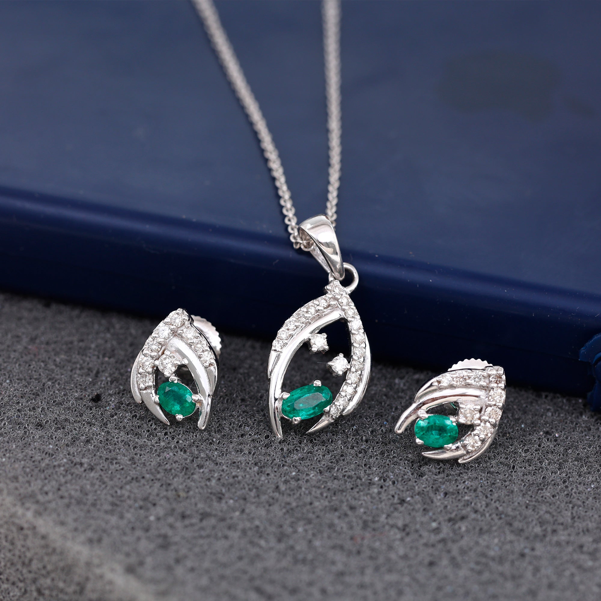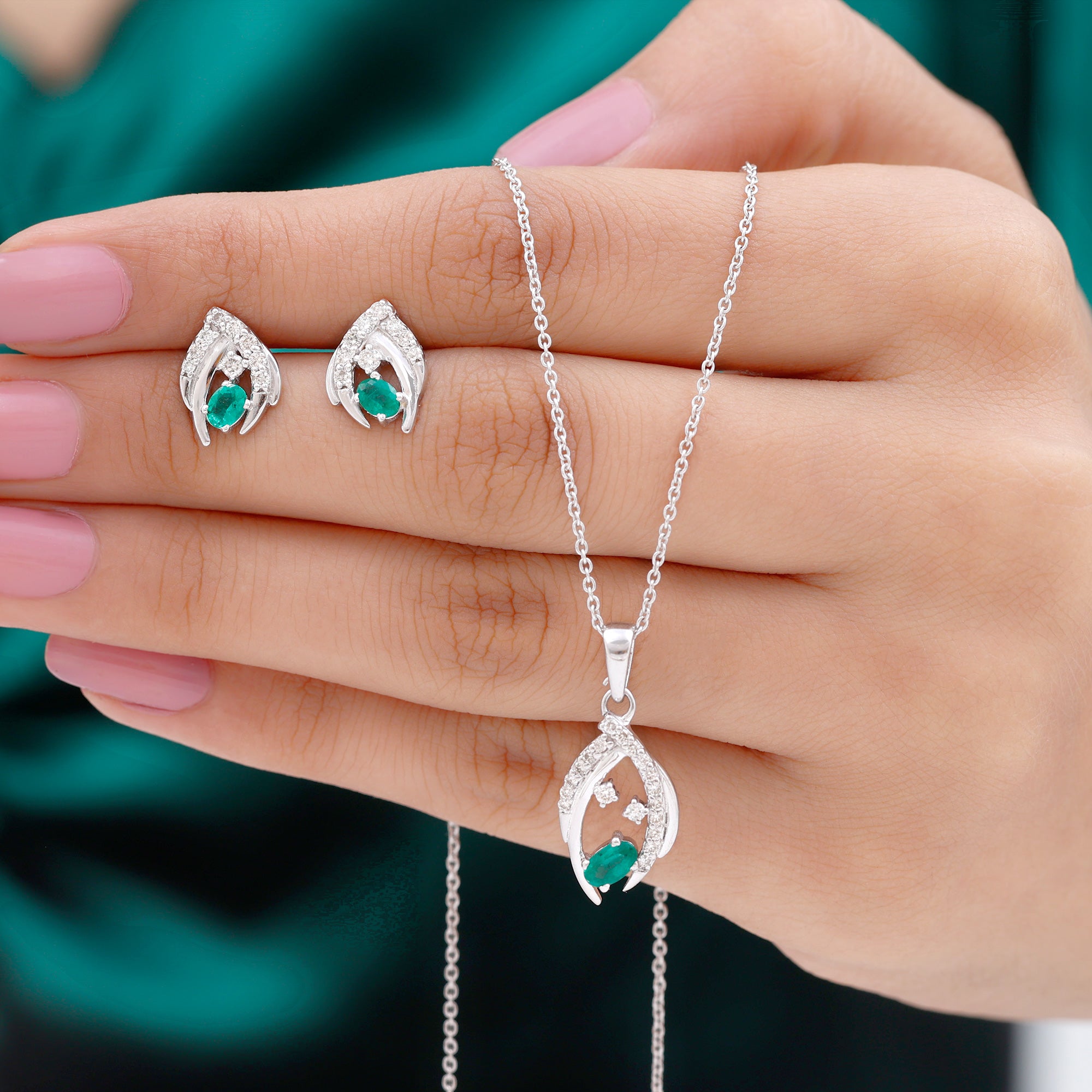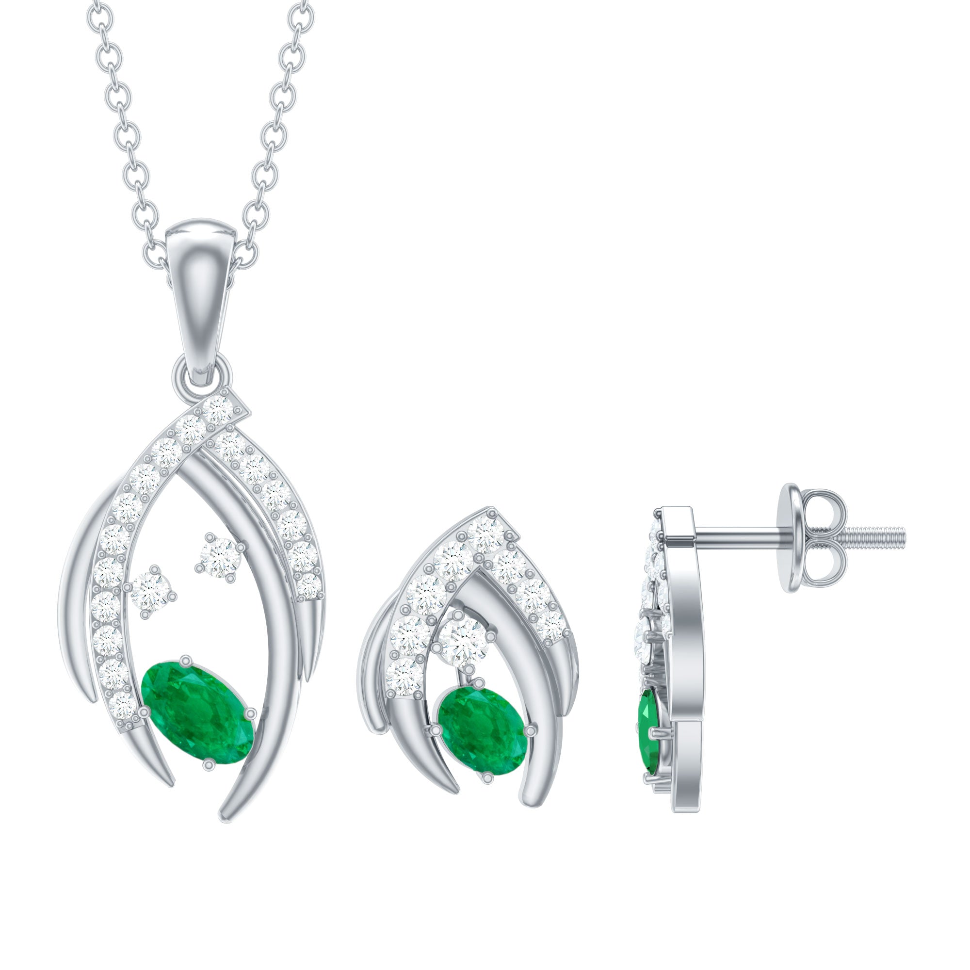 1.50 CT Emerald and Diamond Simple Jewelry Set