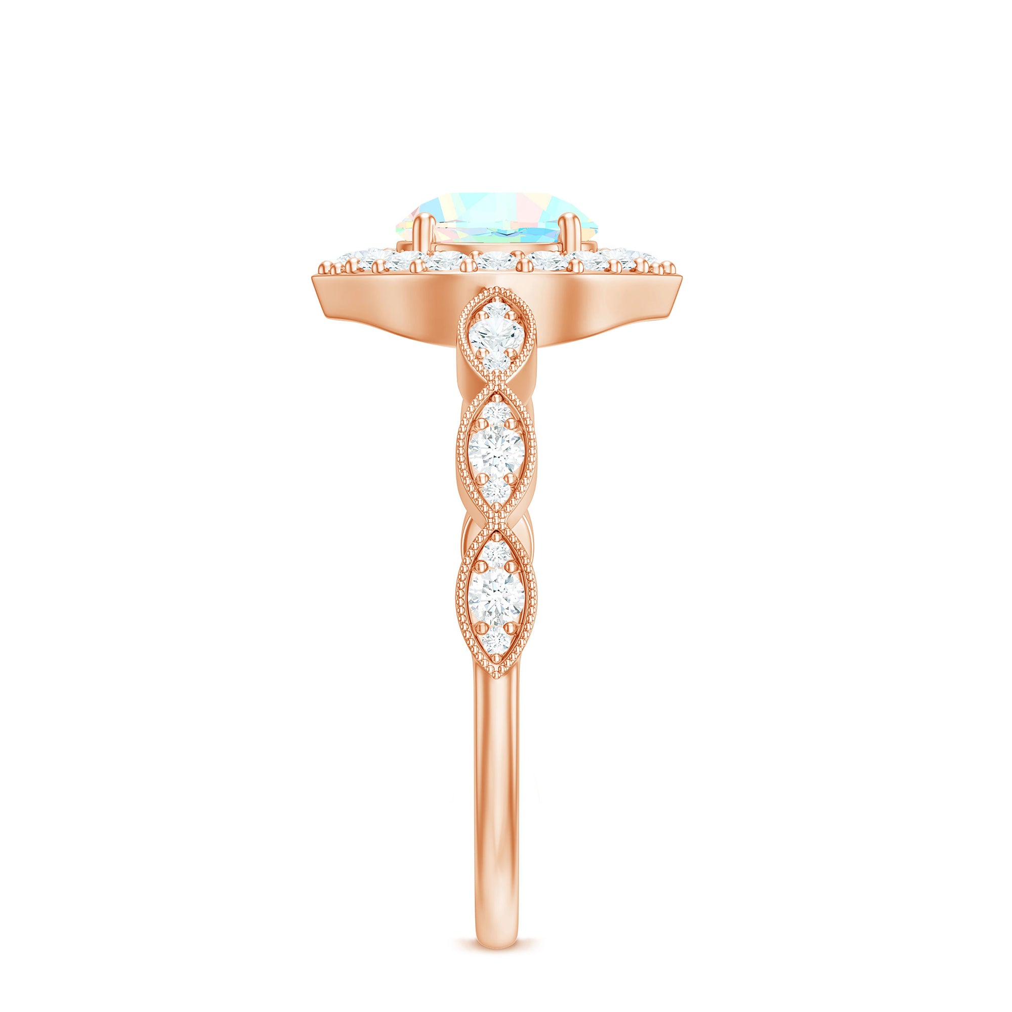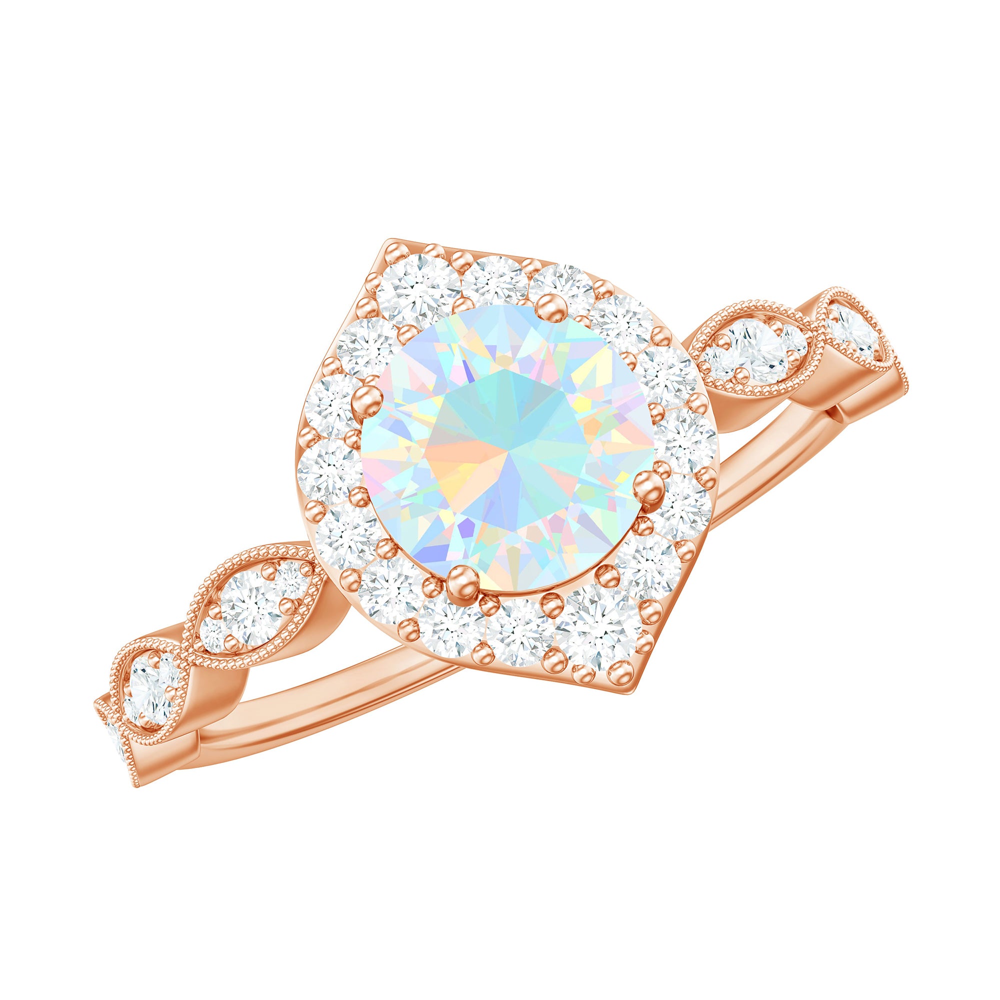 Vintage Looking Ethiopian Opal Engagement Ring with Real Diamond Halo