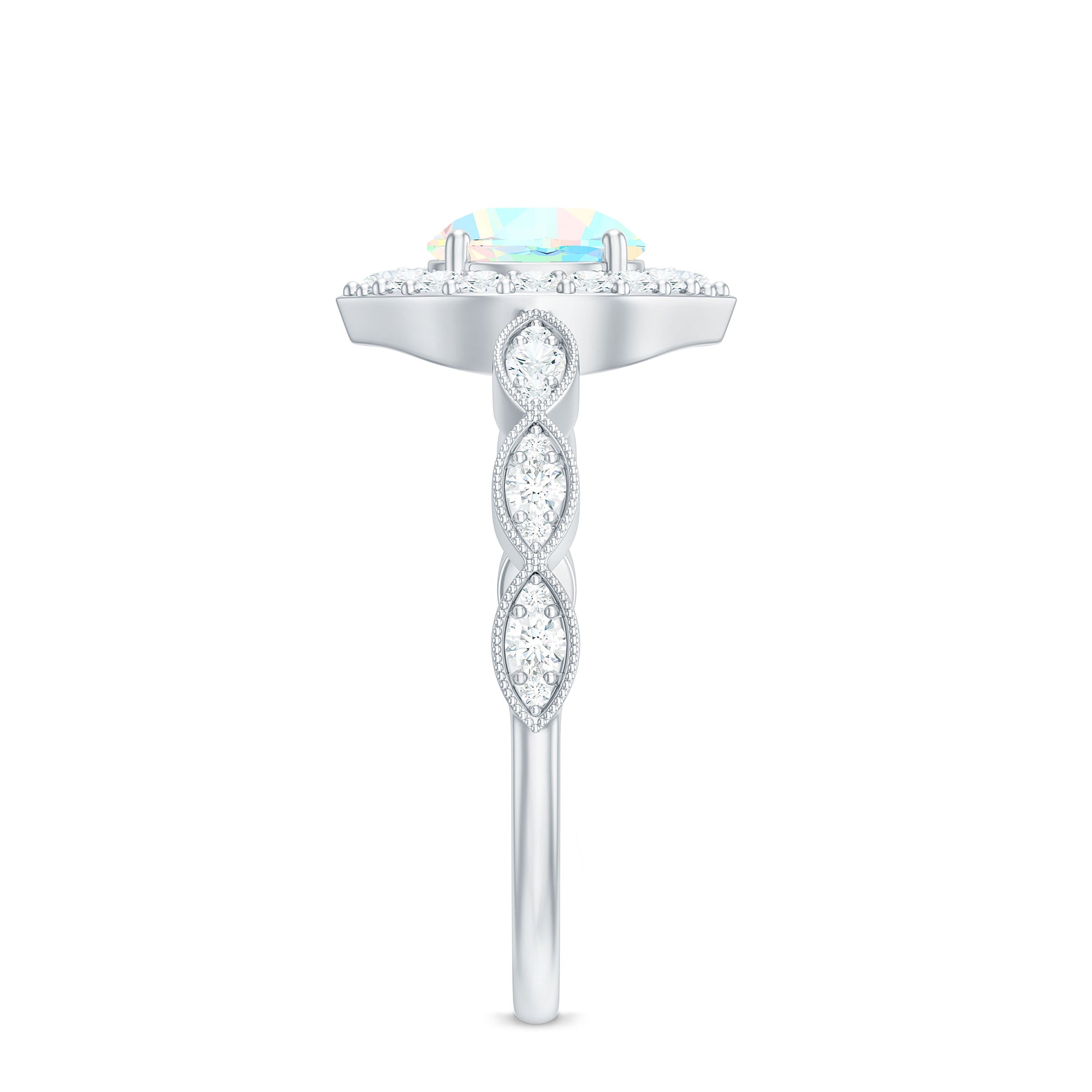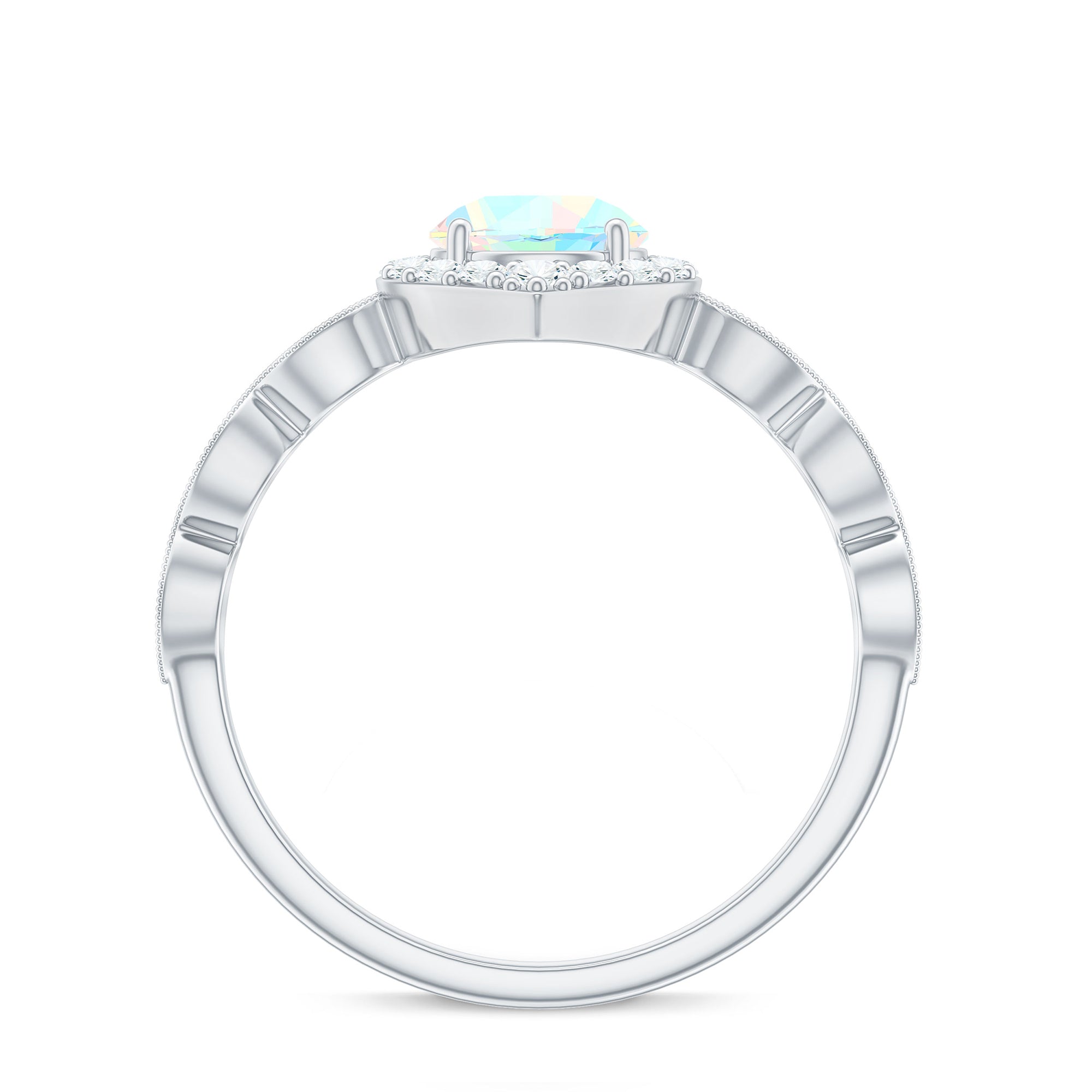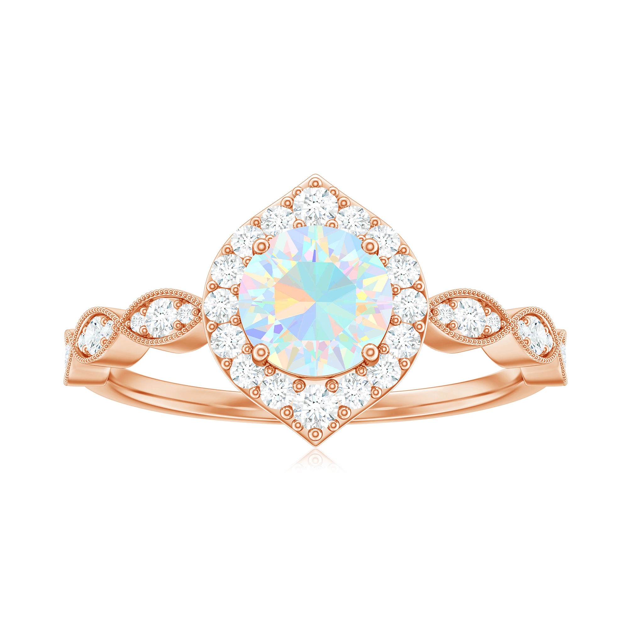 This Vintage Inspired Engagement Ring is a design that feels like it was plucked from a romantic era gone by. At its center, a luminous 6 mm Round Shape Ethiopian Opal set in Prong Setting glows with rainbow hues. Encircling the AAA Quality Opal is a shimmering Diamond Halo, while sparkling Side Stones cascade down the band, adding a graceful shimmer with every movement. The band is detailed with delicate Beading and antique style that whispers timeless elegance. This Opal Halo Engagement Ring is the kind of ring that looks like it holds a thousand love letters in its design, crafted for someone who dreams deeply and loves even deeper. Whether you are planning a surprise proposal or choosing it together as a symbol of forever, this Opal and Diamond Ring tells your story in the most breathtaking way. Arrives in a beautiful jewelry box, ready to mark the moment your forever begins. This Vintage Opal Engagement Ring is available in a range of sizes to ensure a perfect fit, because every love story deserves a perfect start.