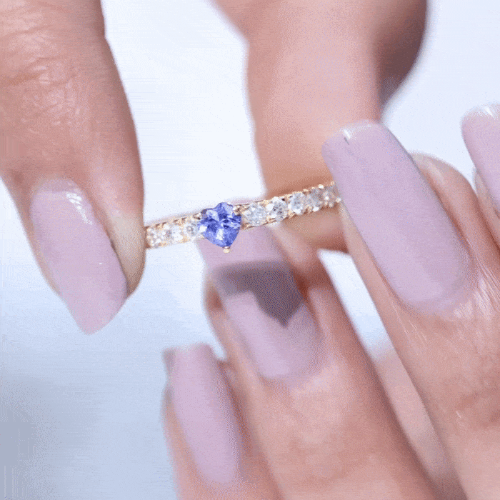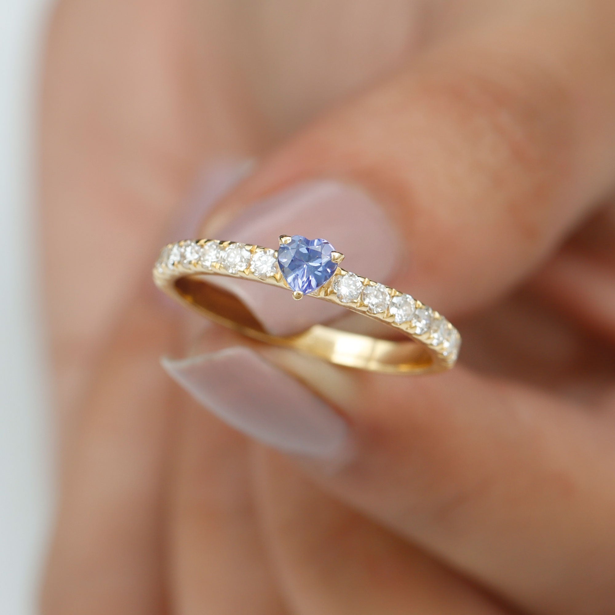 A Marvelous and Classic Tanzanite Solitaire Ring embellished with Solitaire Heart Shape Tanzanite is set in the center and Round Shape Diamond gemstones are set as Side Stones. Classic Women Ring is composed of Gold. Express your feeling by presenting this gorgeous and adorable ring as an anniversary gift.