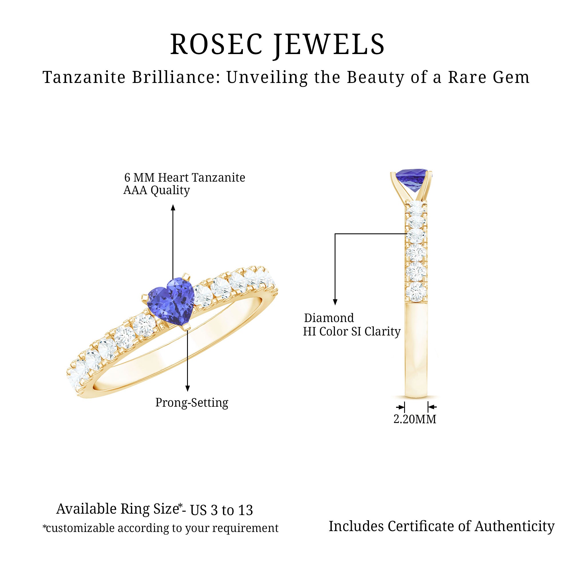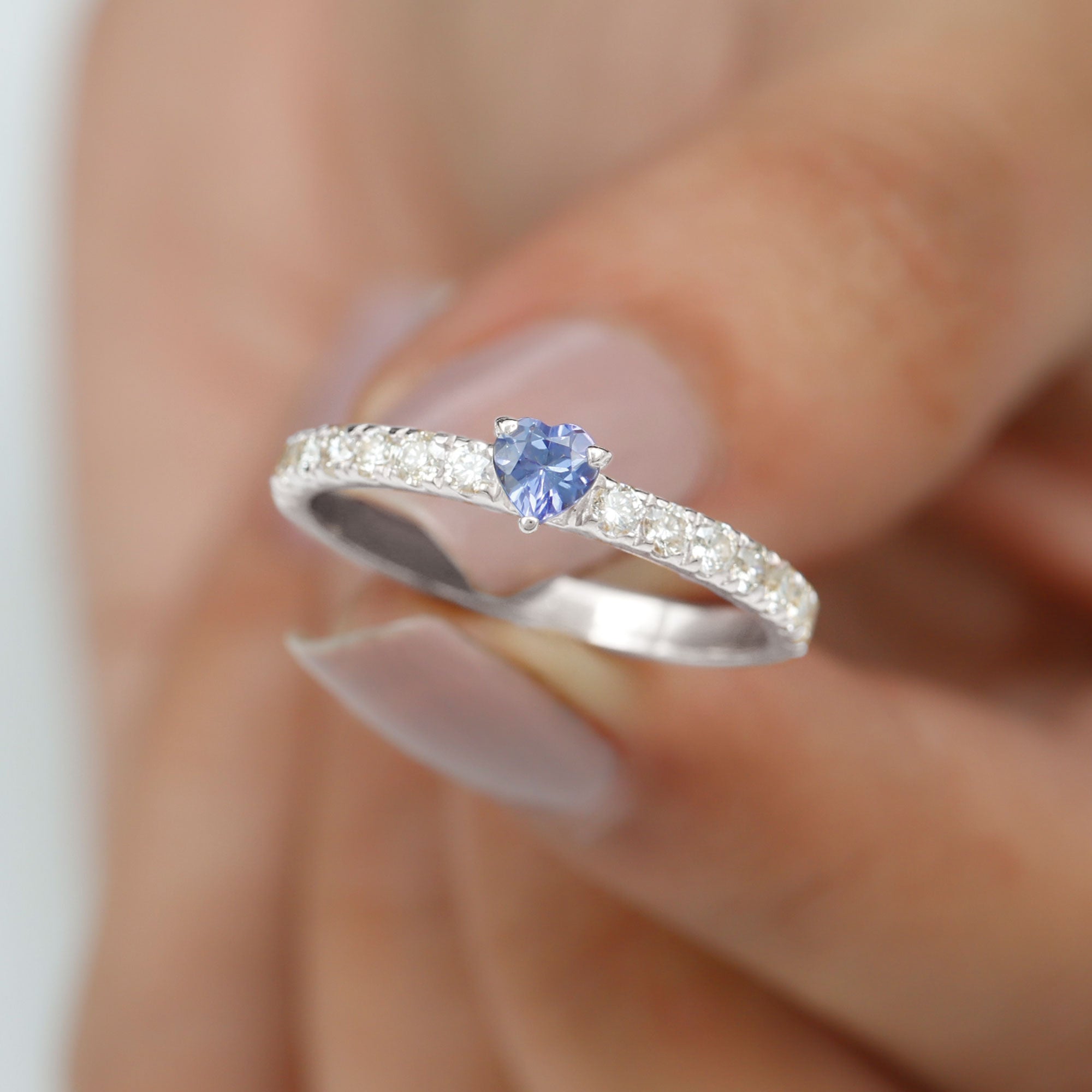 1.50 CT Heart Shaped Tanzanite Solitaire Ring with Diamond