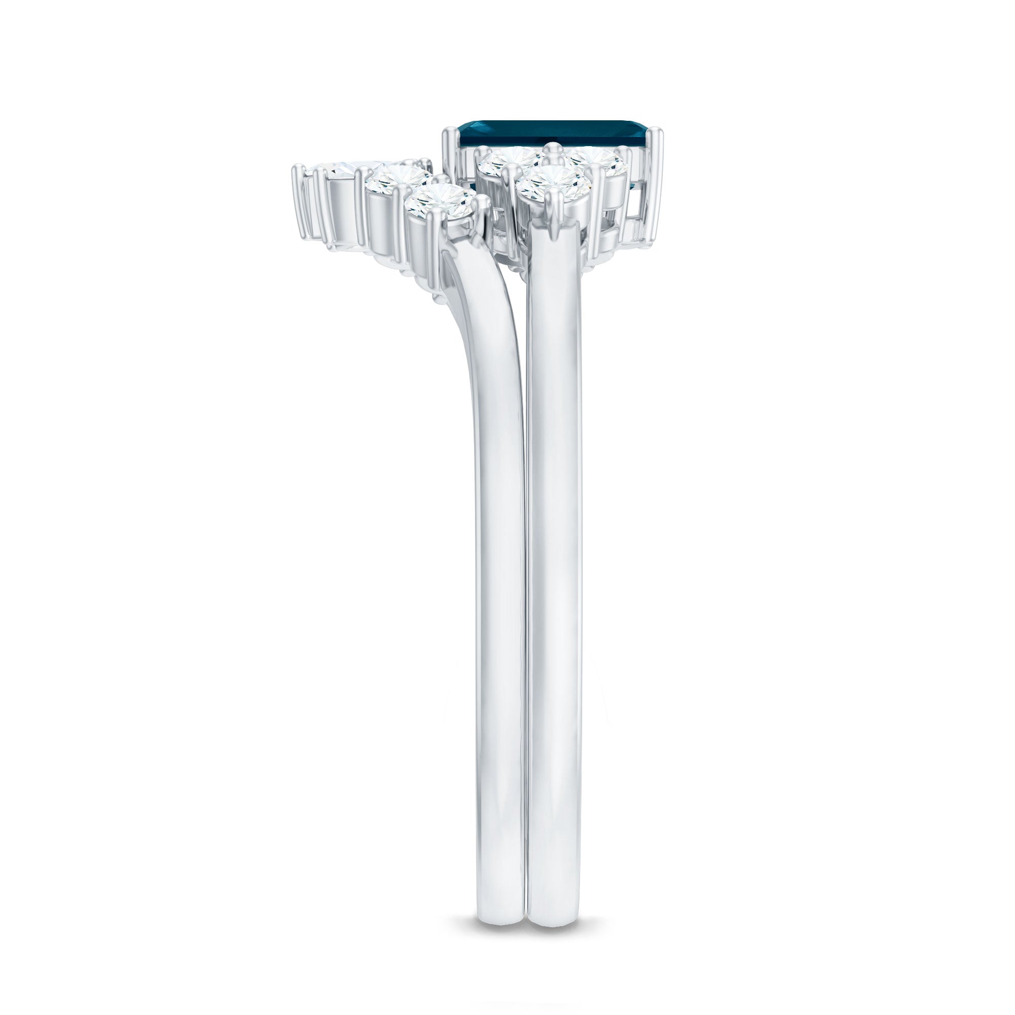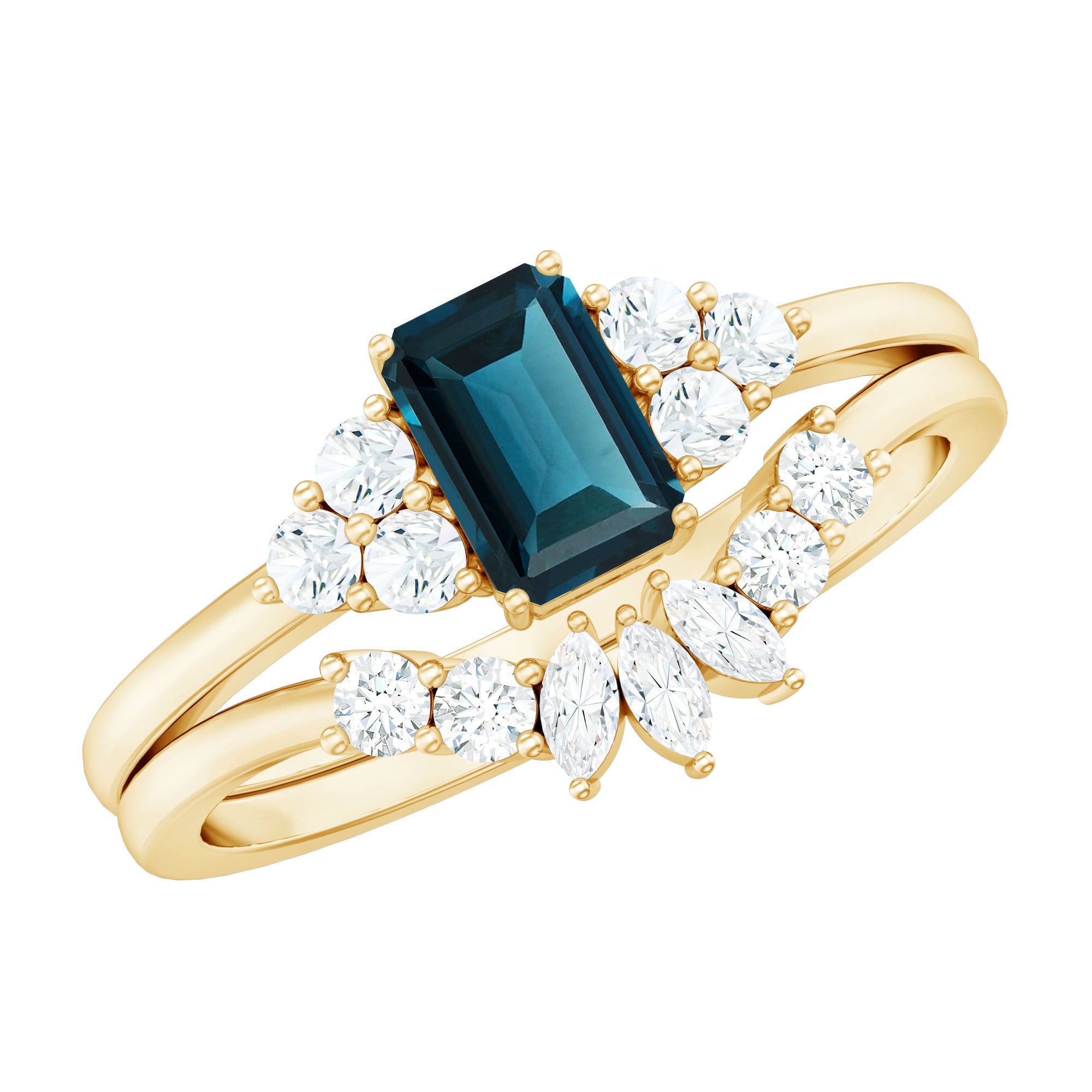 4X6mm Emerald Cut London Blue Topaz Designer Bridal Ring Set with Diamond