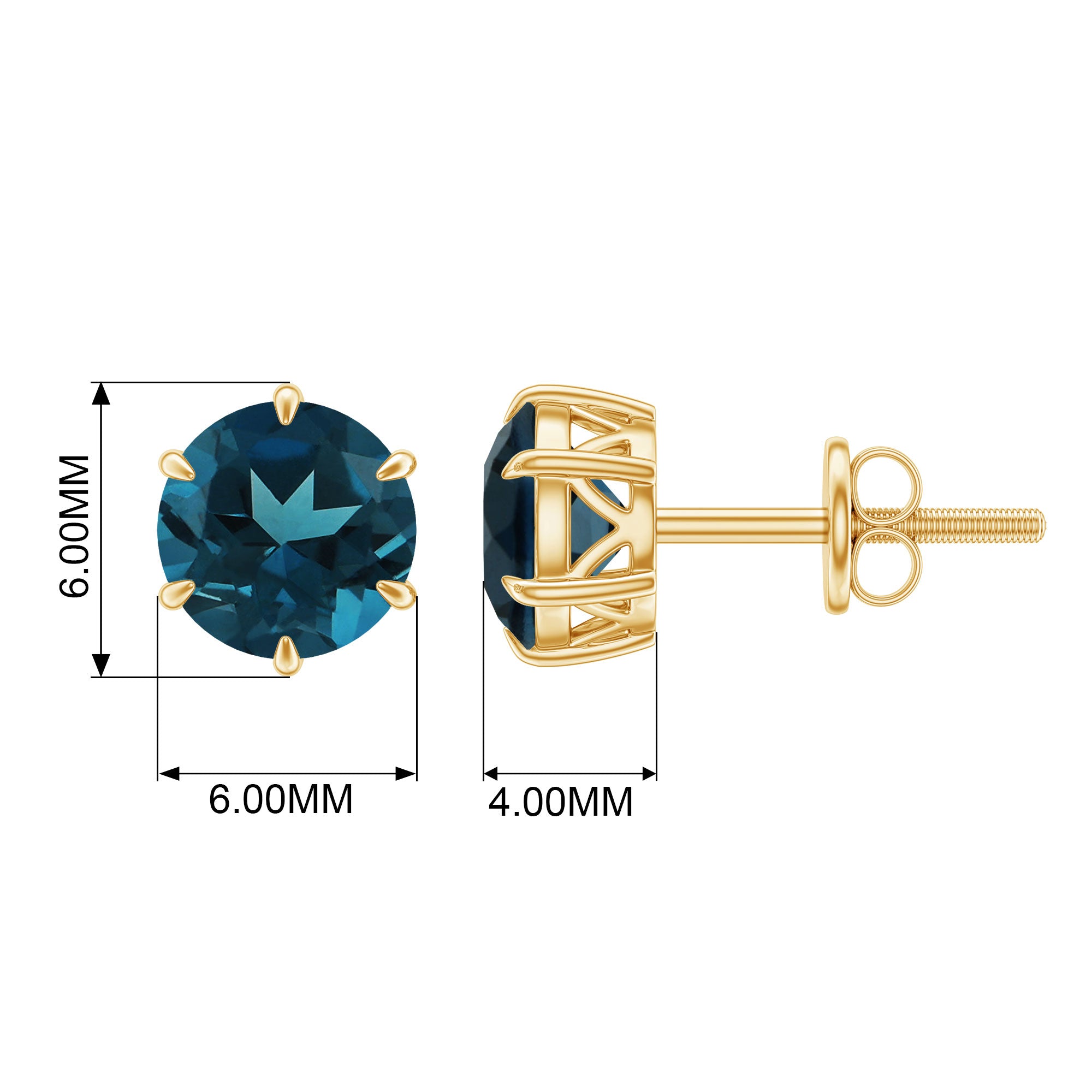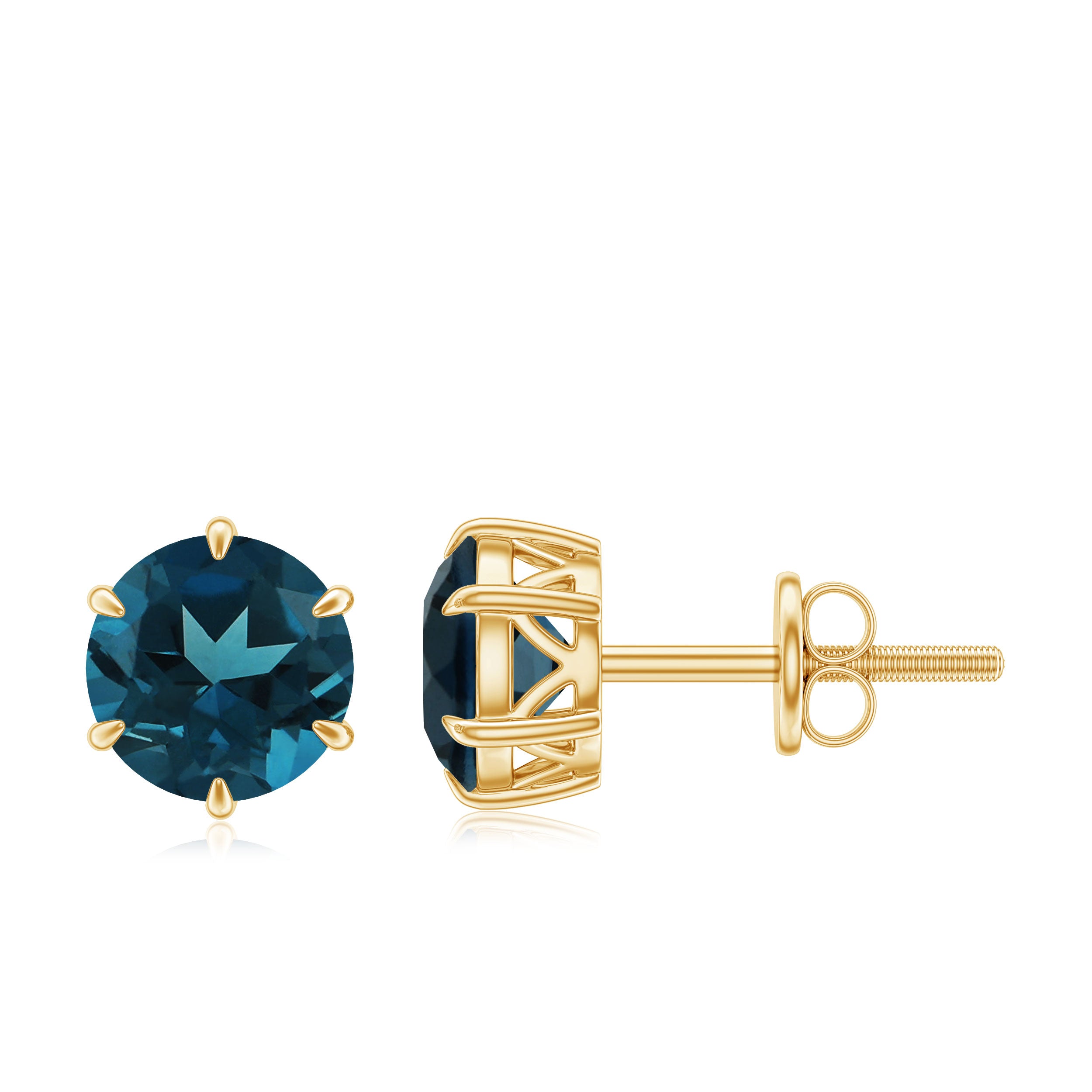 These elegant Solitaire Stud Earrings are adorned with Round Cut London Blue Topaz over 14K Gold to make for a lovely gift for your partner.