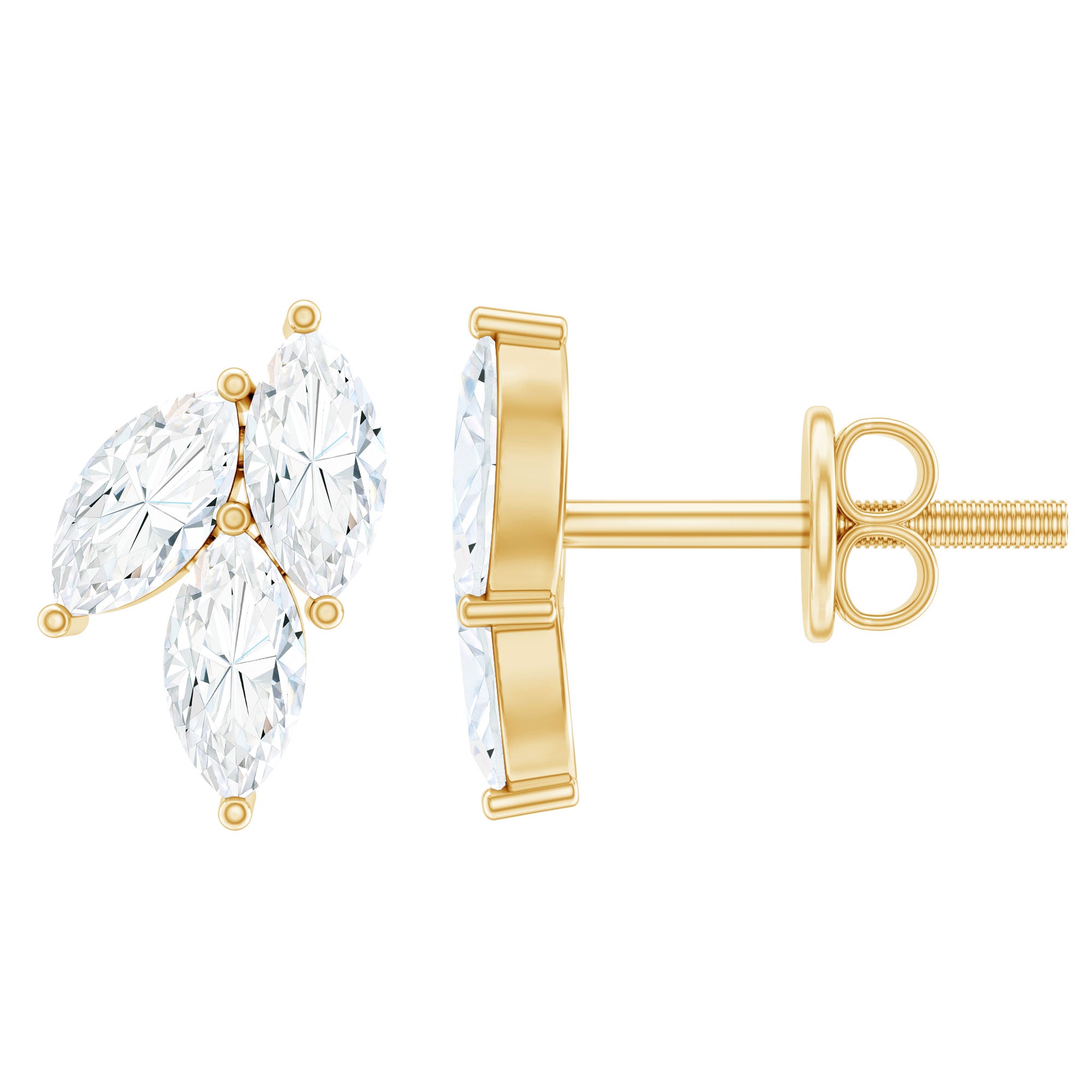 1.50 CT Marquise Cut Zircon Leaf Cluster Gold Stud Earrings