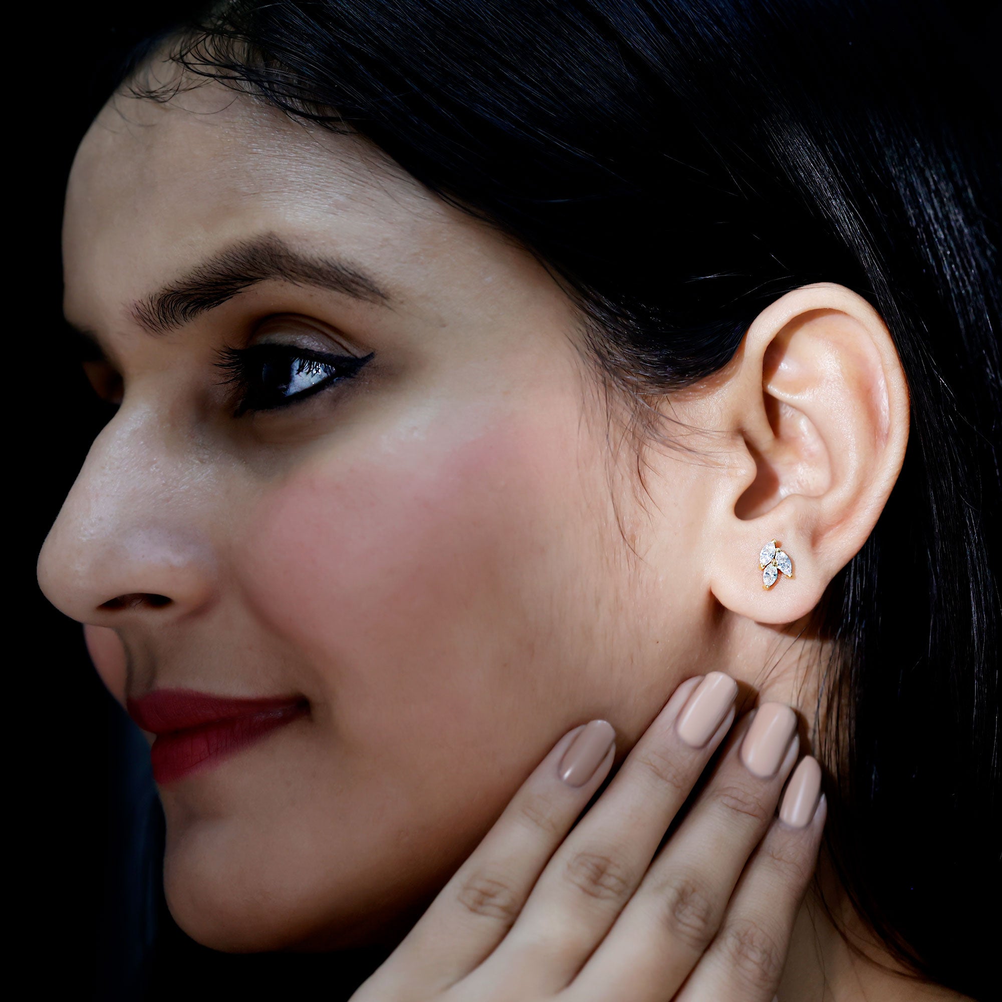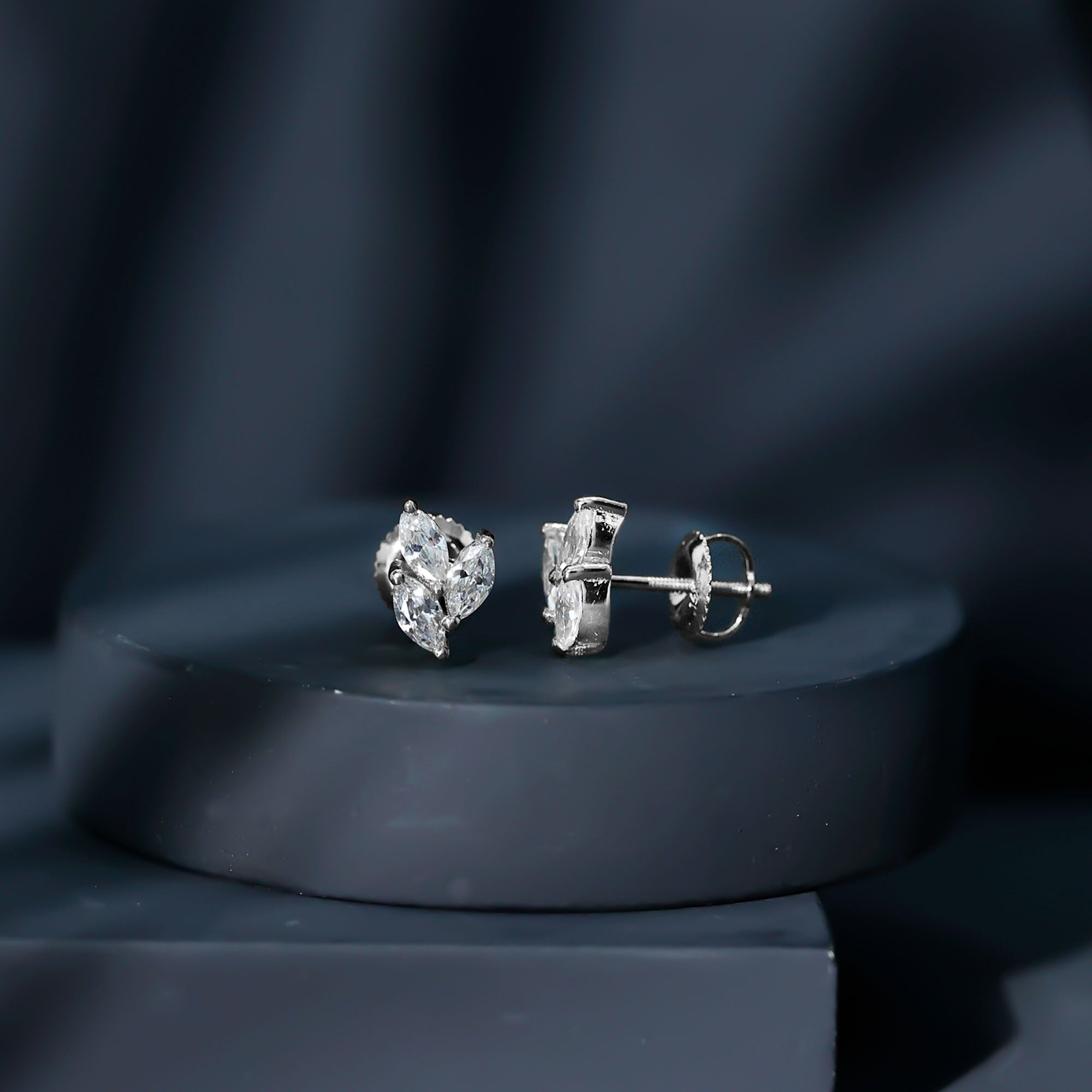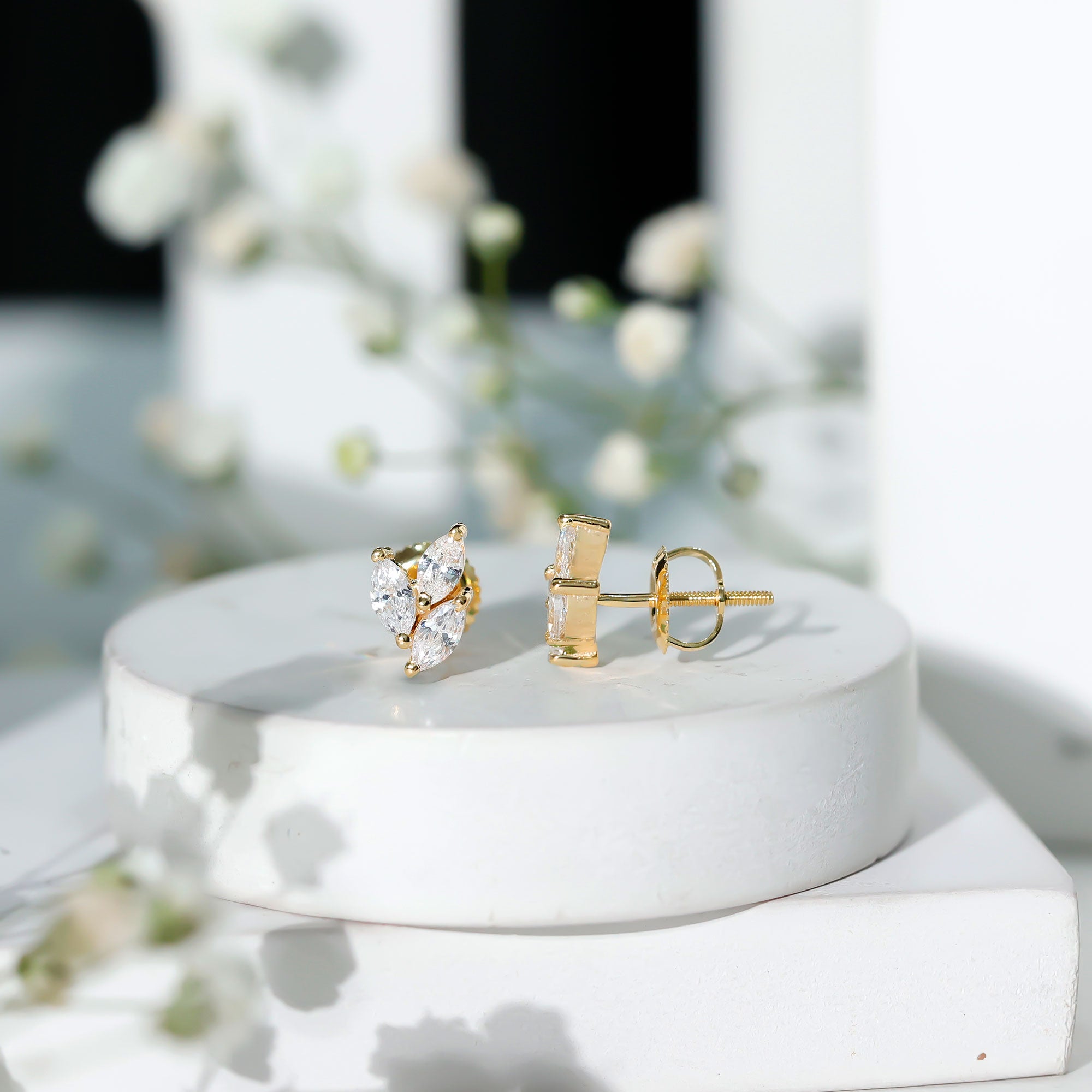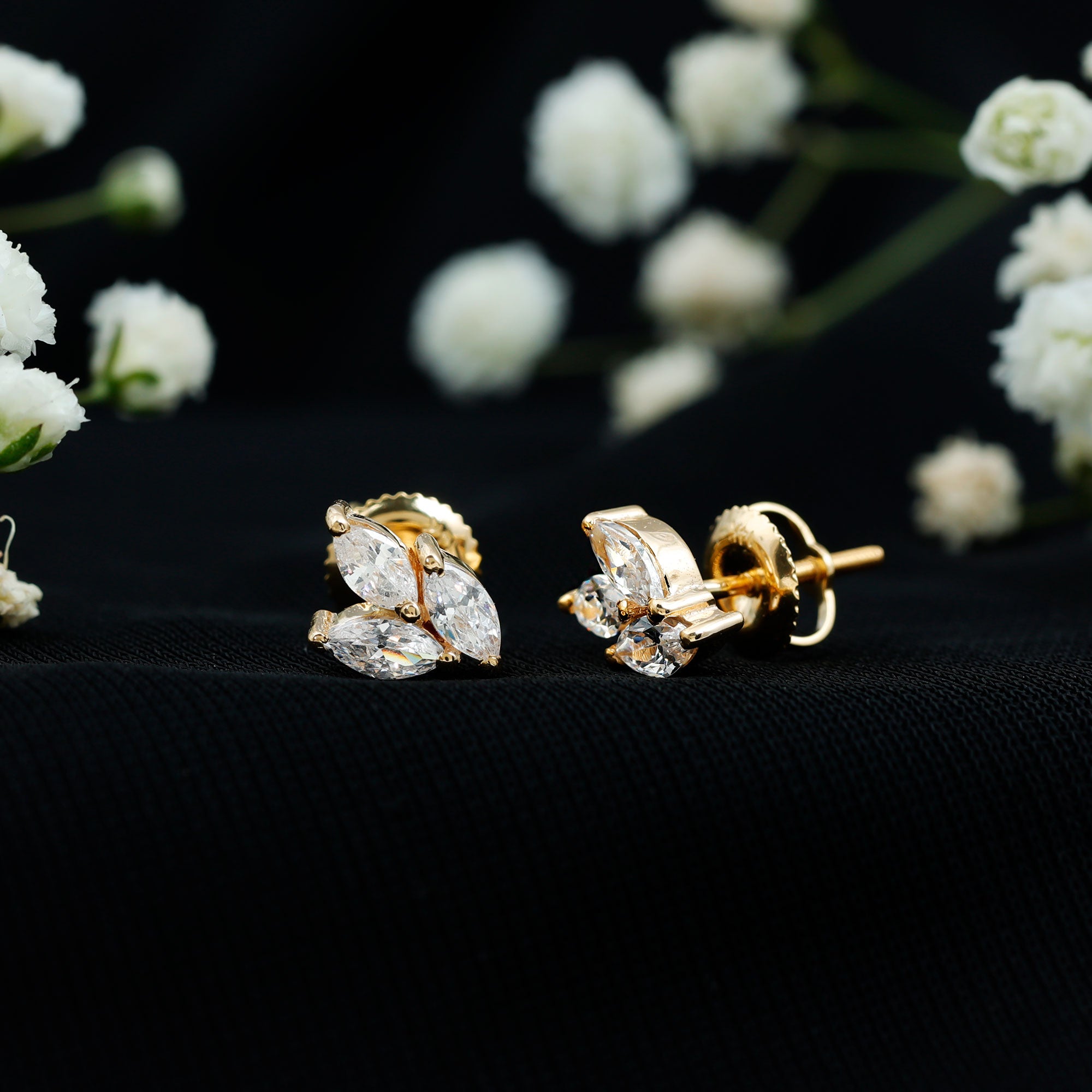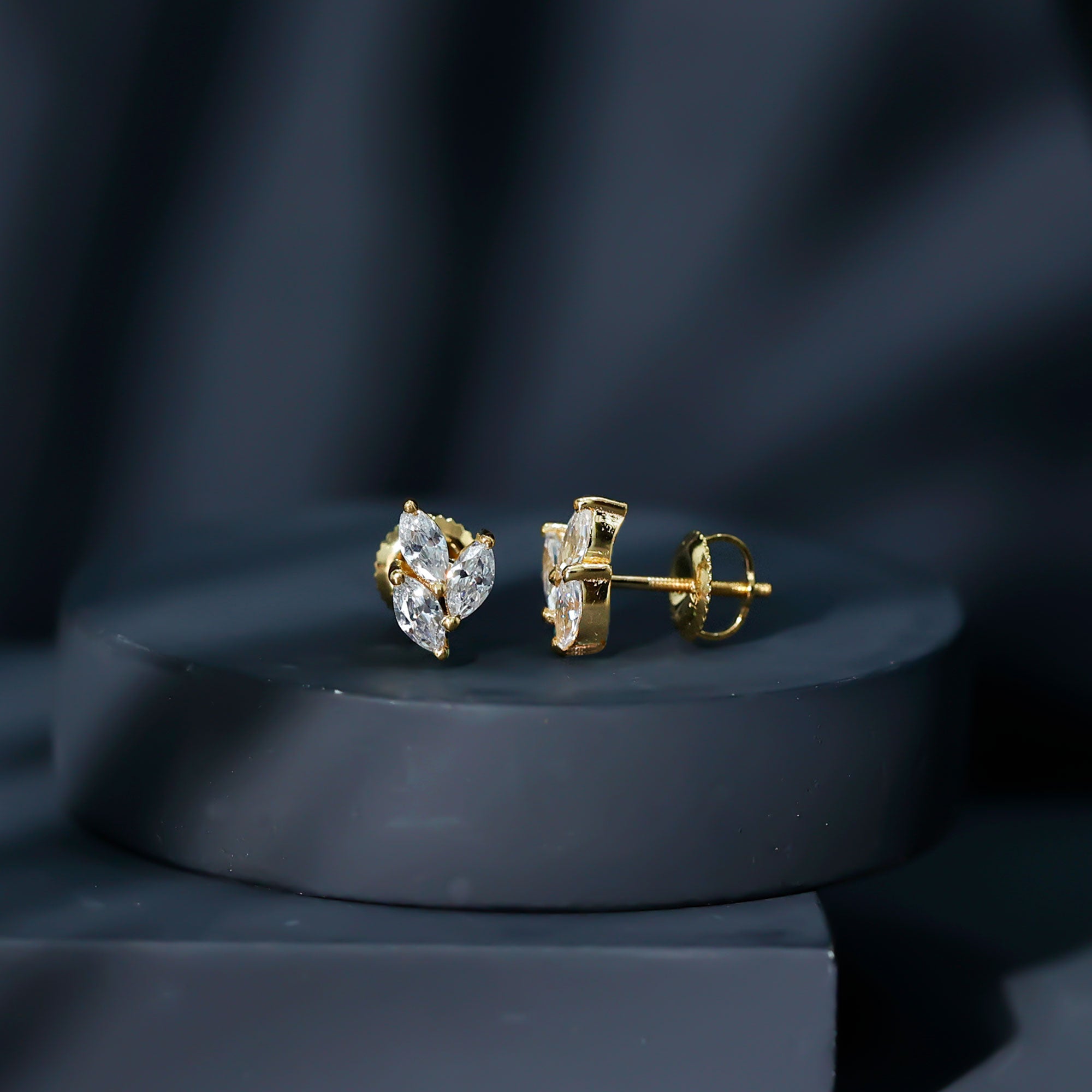1.50 CT Marquise Cut Zircon Leaf Cluster Gold Stud Earrings