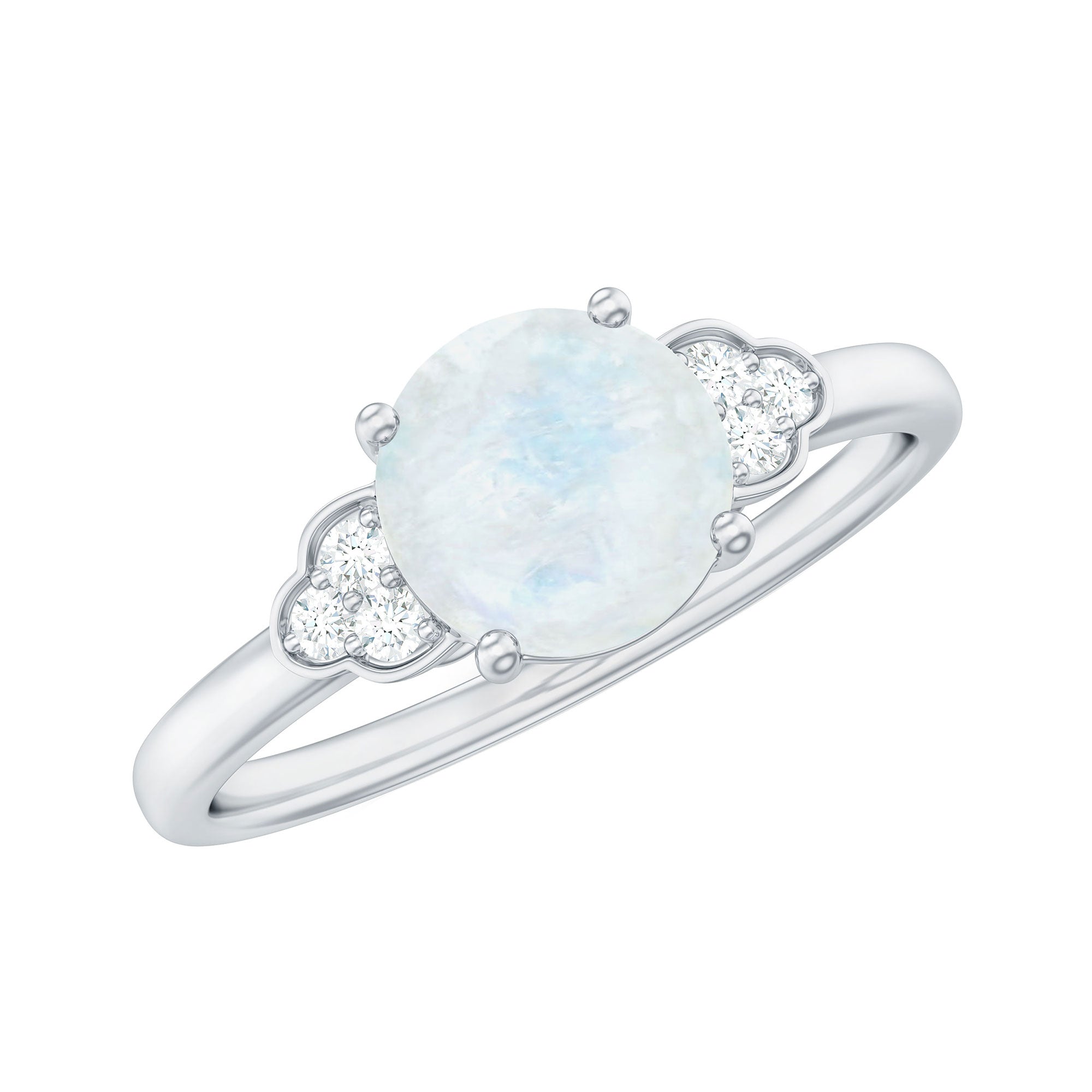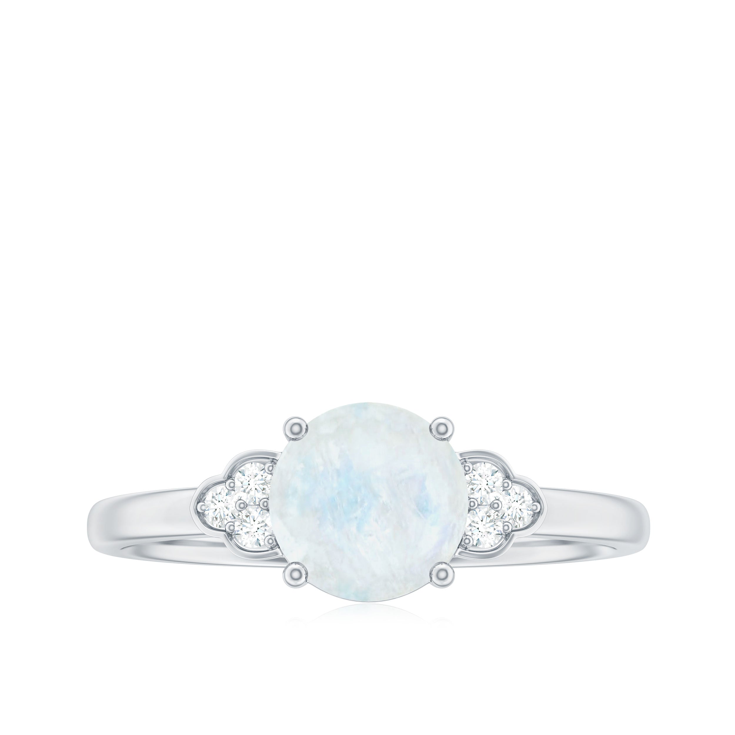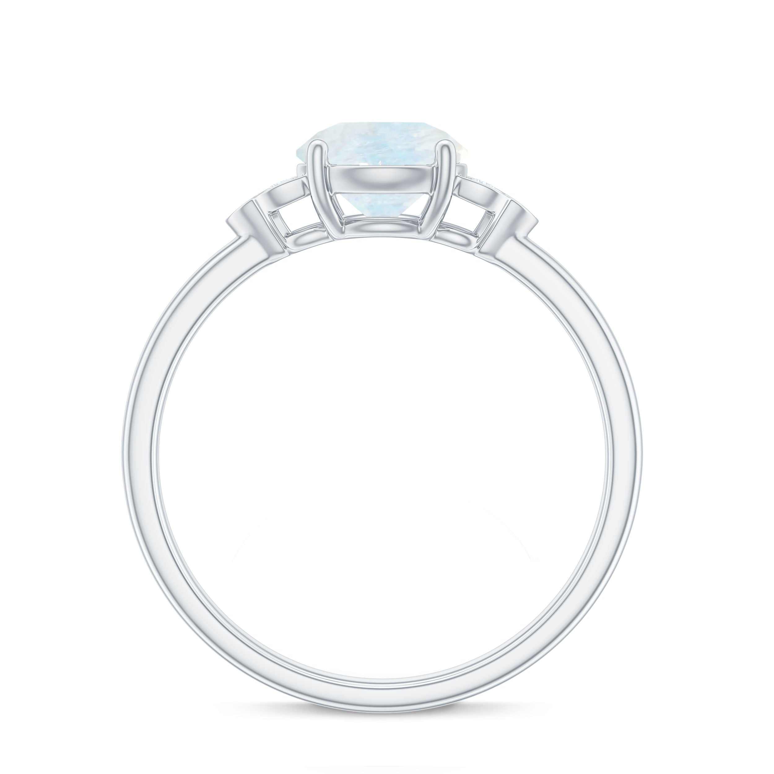 1.50 CT Moonstone Solitaire Engagement Ring with Diamond Trio