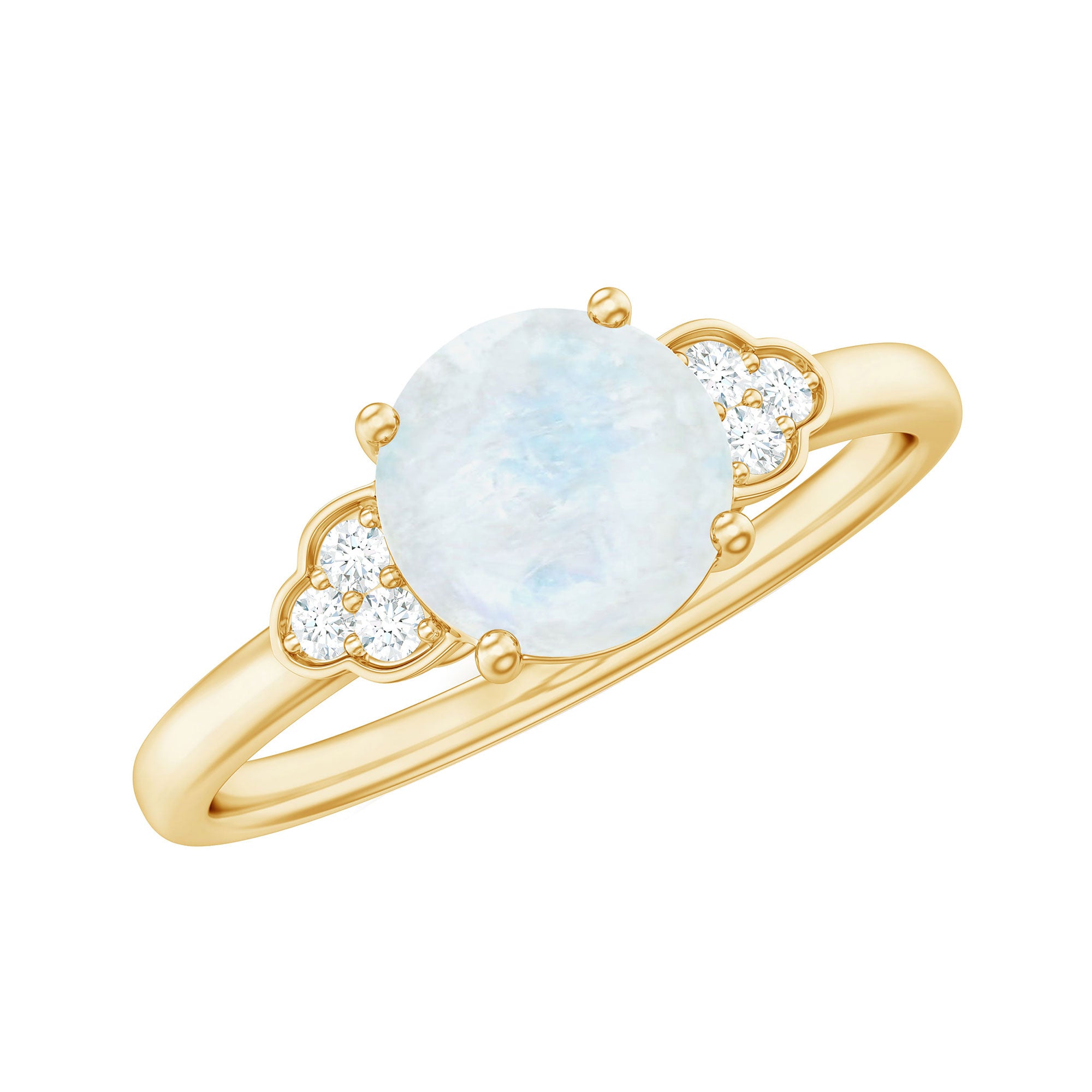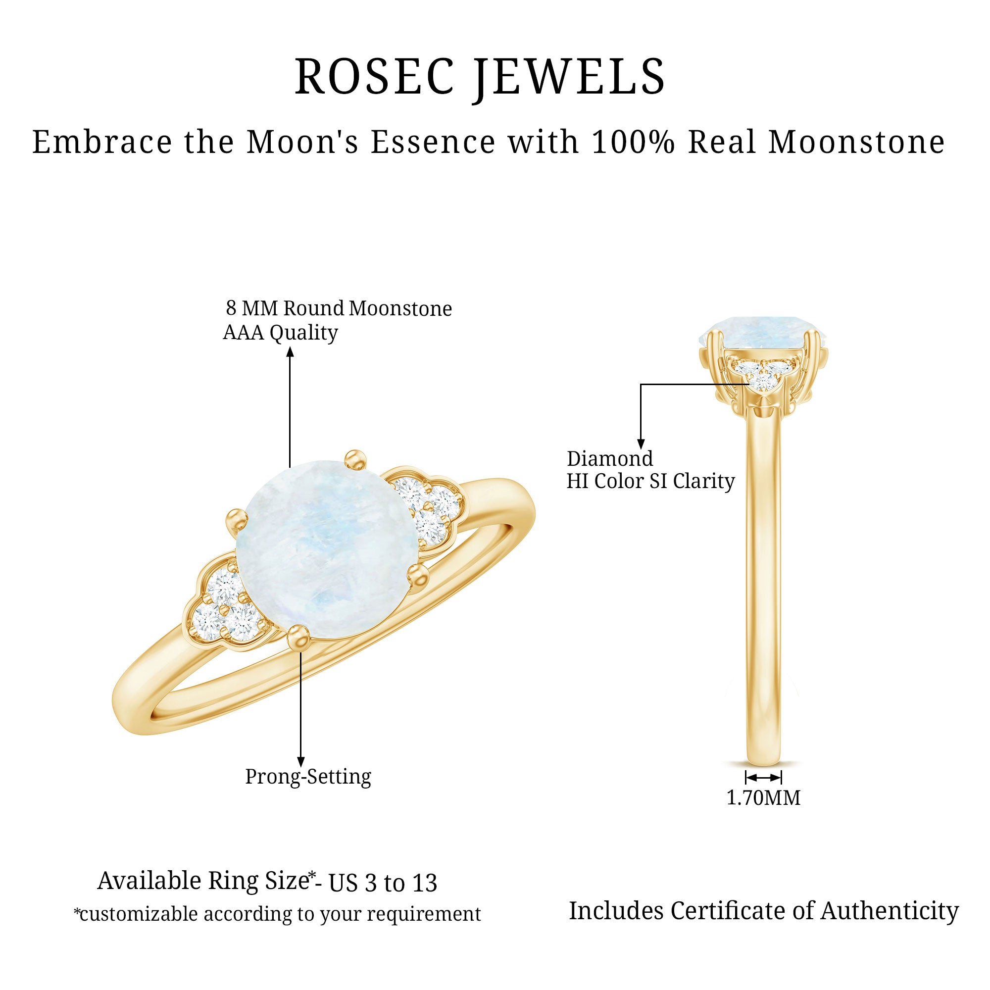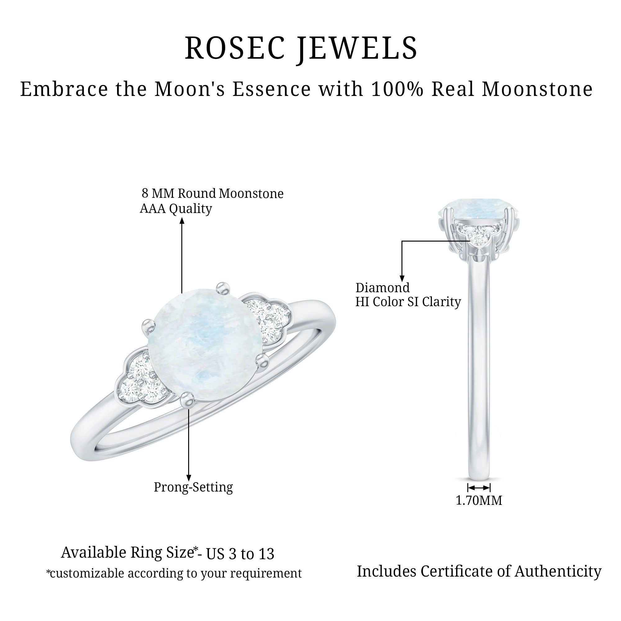 1.50 CT Moonstone Solitaire Engagement Ring with Diamond Trio