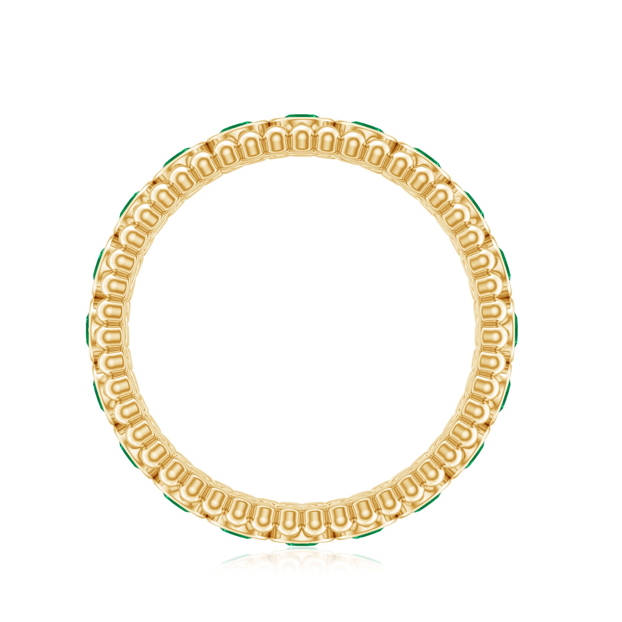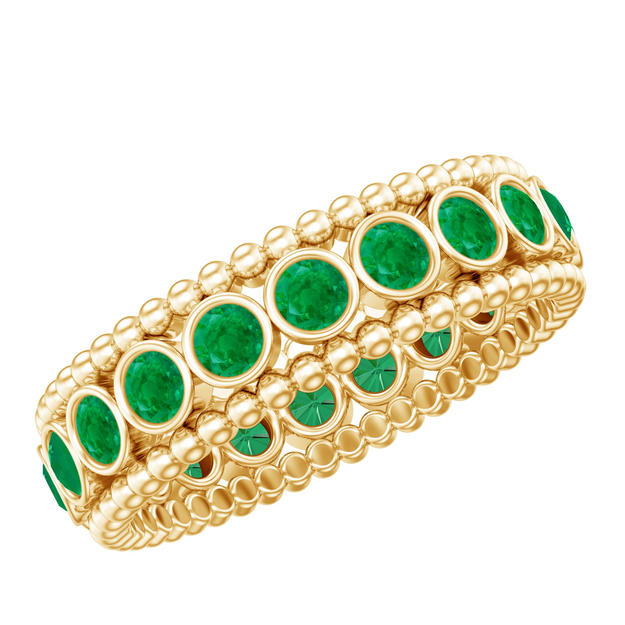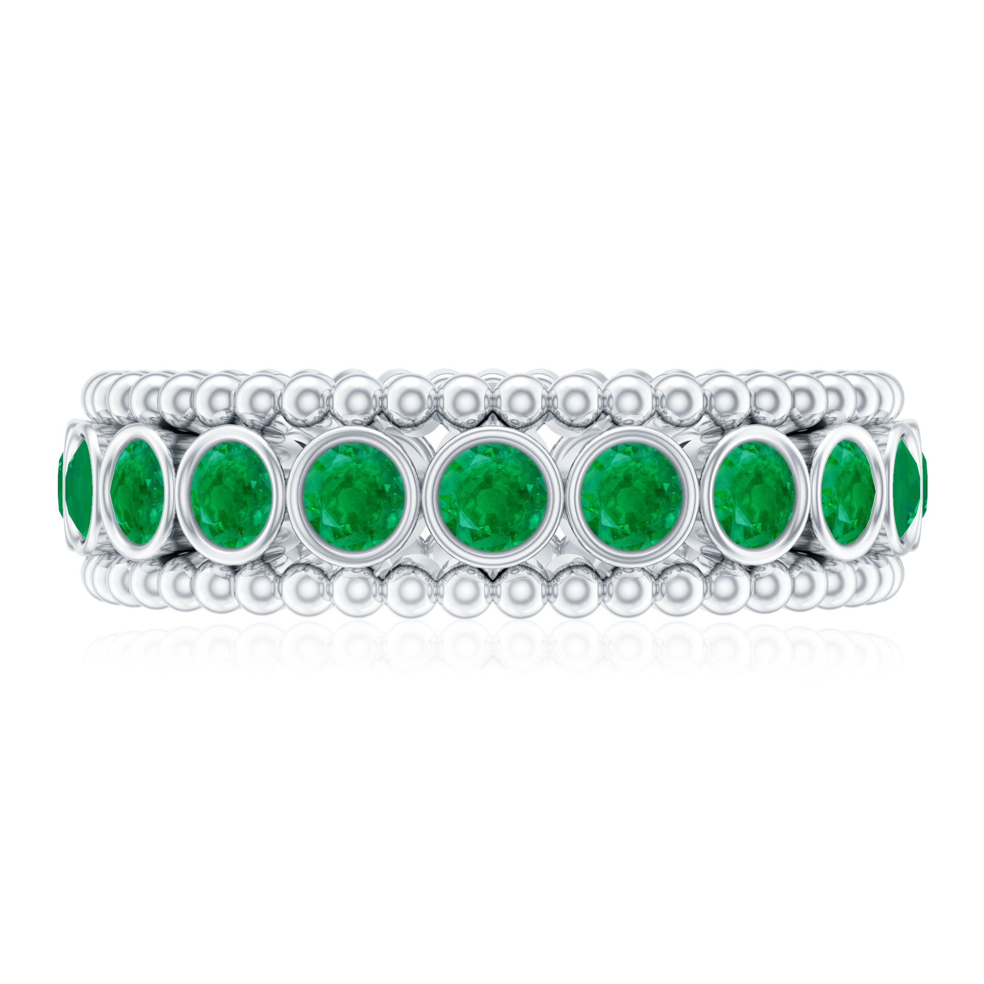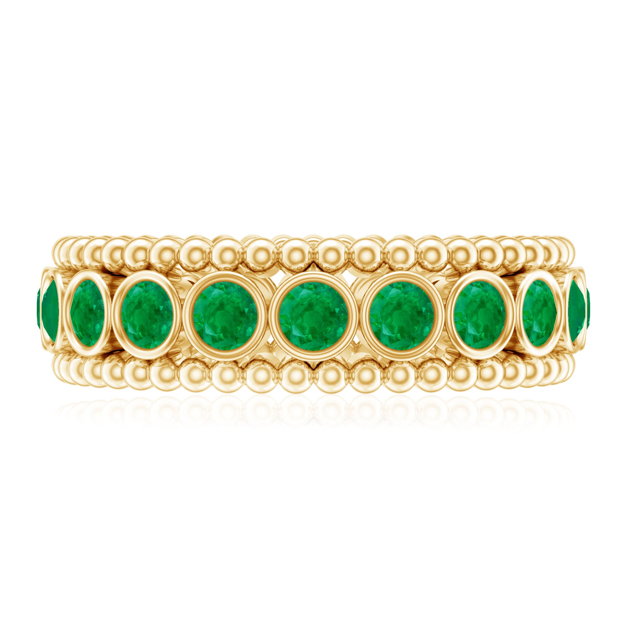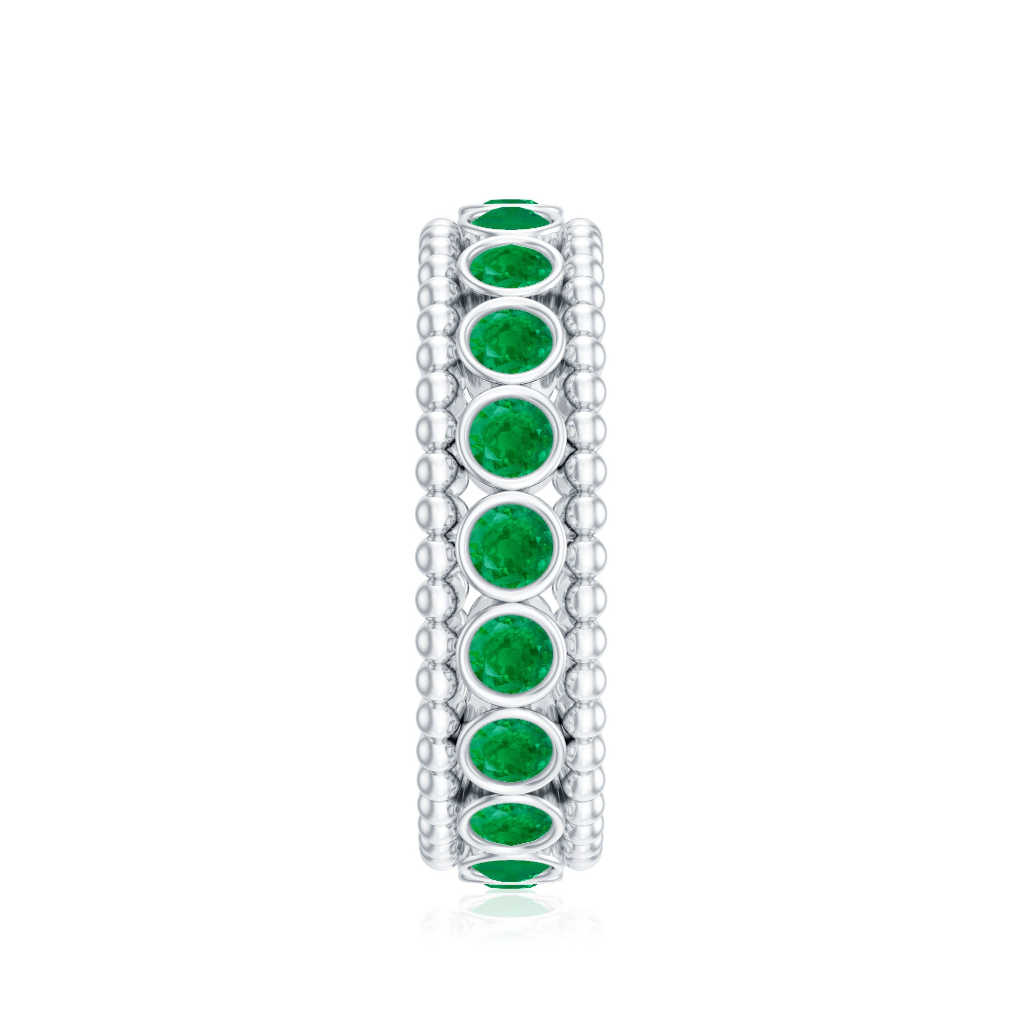 Timeless and full of meaning, this Emerald Eternity Band captures the beauty of everlasting love through its elegant design and graceful sparkle. The Full Eternity Band features a full circle of round cut emeralds, set securely in bezel setting. Along the edges runs a delicate beaded pattern, inspired by vintage artistry, adding a subtle touch of old-world charm. The continuous line of glowing green emeralds creates a captivating effect, making this Wedding Anniversary Band a perfect choice for celebrating milestones, anniversaries, or simply cherishing a love that stands the test of time. Designed with care and attention to detail, this Emerald Wedding Band combines classic beauty with lasting craftsmanship. The AAA quality emeralds shine with rich color and brilliance, offering both style and sentiment in every glance. This elegant band can be worn alone for a simple yet striking statement or stacked with an engagement ring for a layered, luxurious look. It also makes a heartfelt gift, representing promises that endure and memories that never fade. Presented with a gemstone certificate and a beautiful jewelry box, this Vintage Wedding Band is ready to be treasured for years to come.