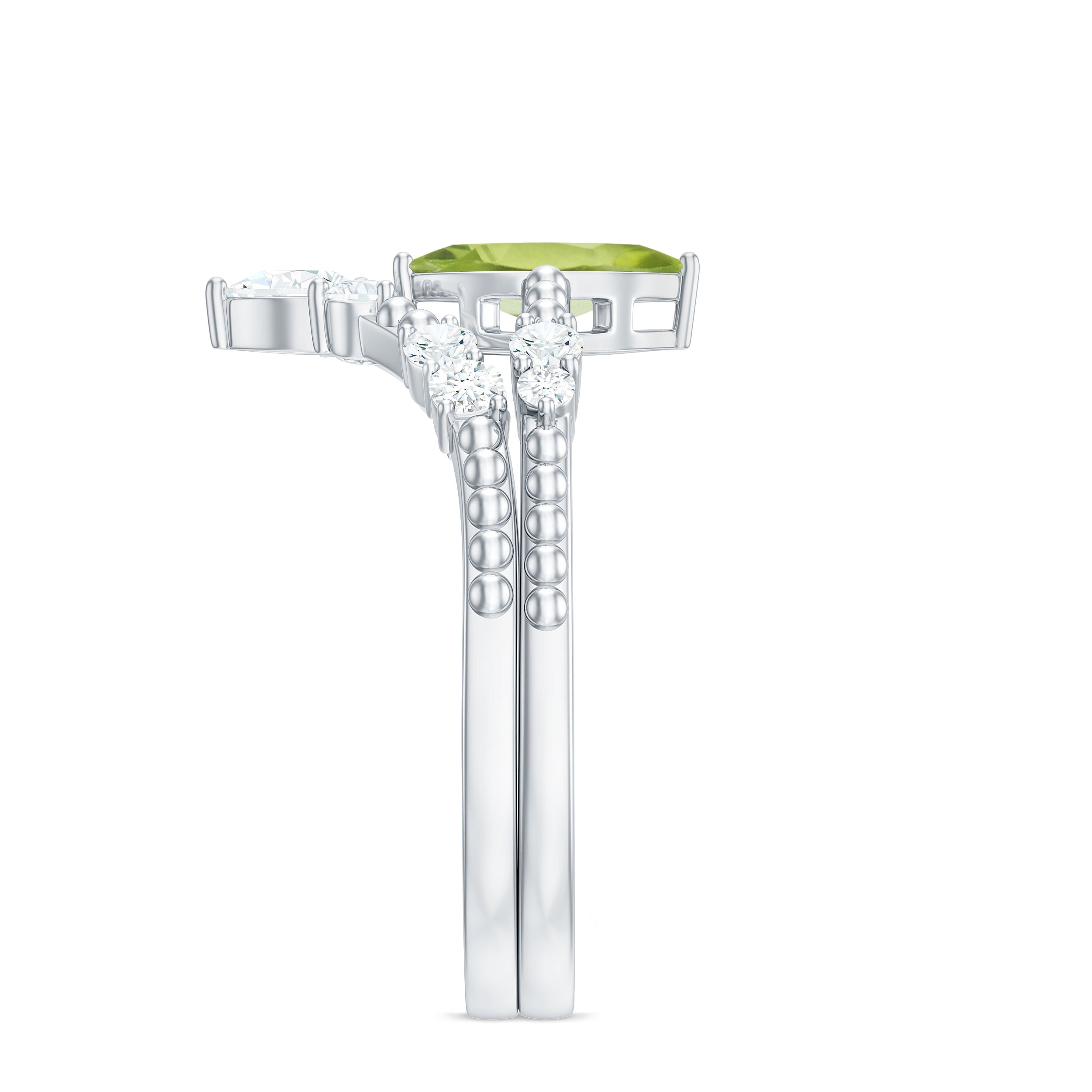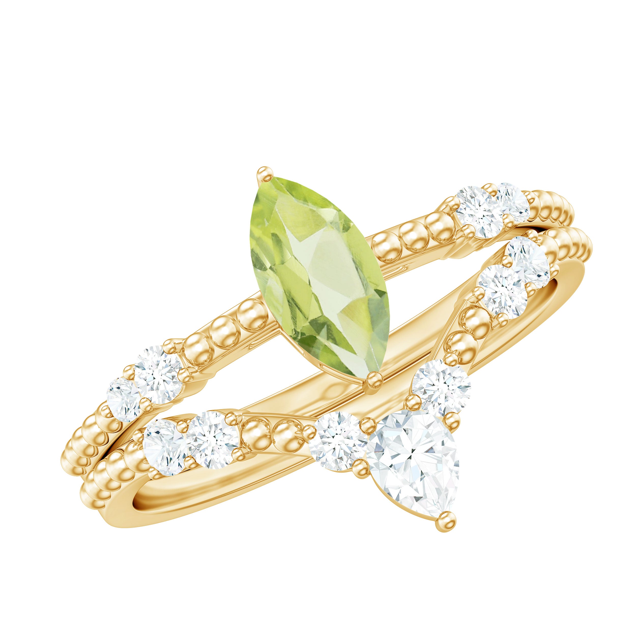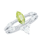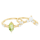 Marquise Shape Peridot Solitaire Ring Set with Moissanite