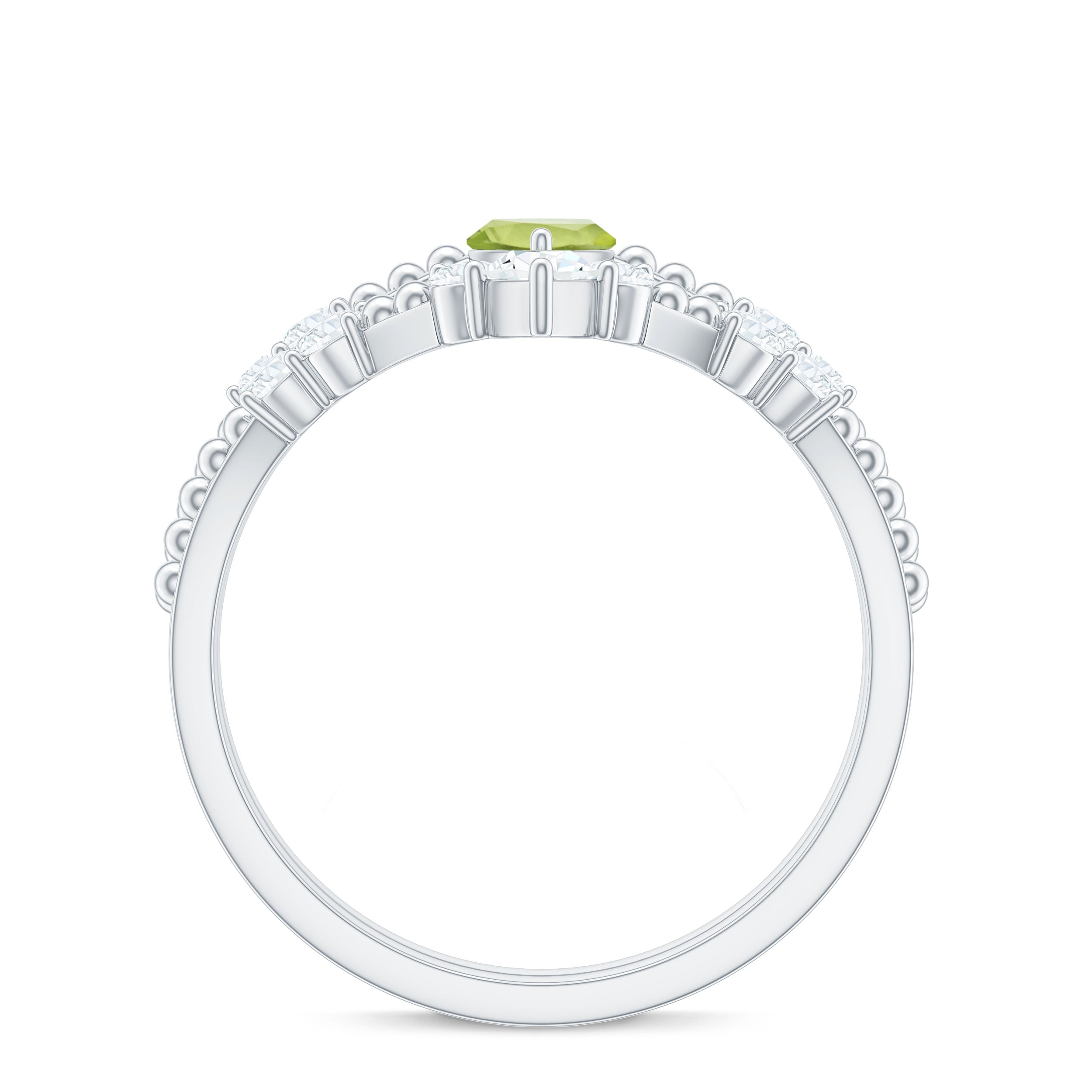 Elegance meets brilliance with this exquisite Beaded Ring Set of 2. A Marquise Shape Peridot gemstone takes center stage, beautifully complemented by the dazzling brilliance of Moissanite, adding a touch of sophistication and allure. Let this extraordinary Ring Set symbolize your individuality and style, capturing the essence of elegance with every glance.