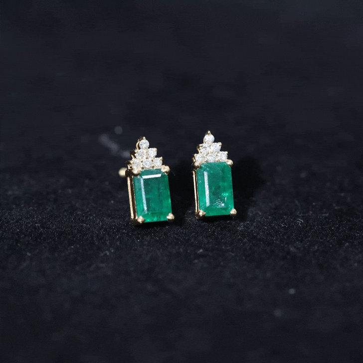 Complement your party outfit with these stunning Stud Earrings adorned with Octagon Cut Emerald Solitaire and Round Shape Diamond Accent. Solid Gold build gives a charming appeal to these Stud Earrings.