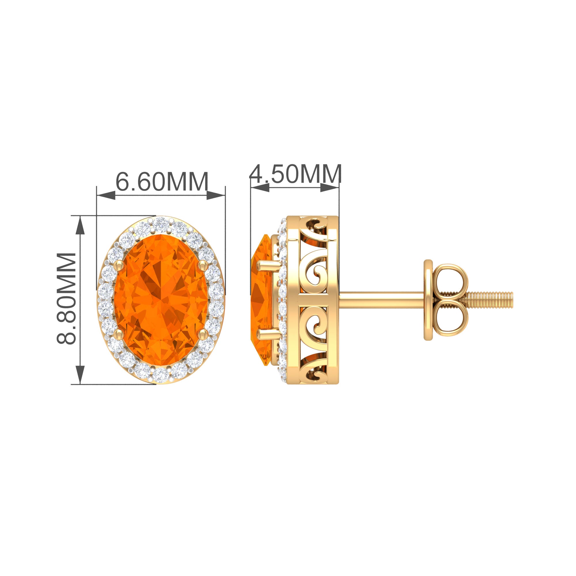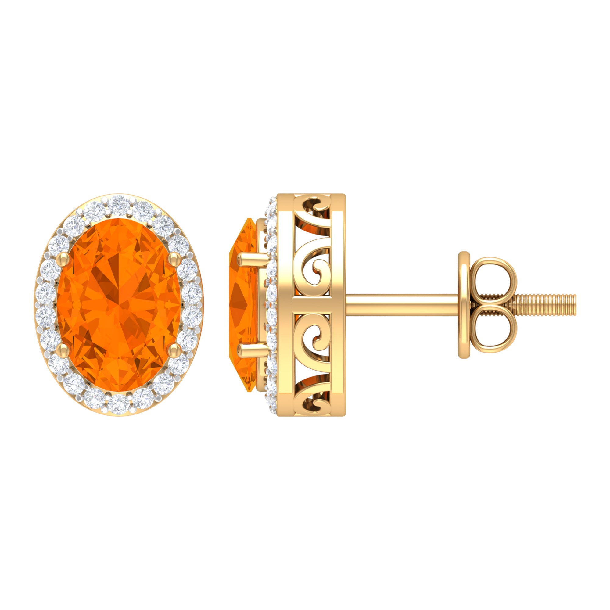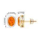 For those who seek a vintage touch to their style, these stud earrings are the perfect addition. The earrings feature an oval cut fire opal solitaire, surrounded by a Diamond halo, adding to their charm and elegance. The earrings are crafted from solid gold, making them a durable and timeless accessory for any occasion. These simple yet stunning solitaire earrings are sure to make a statement and complement any outfit.