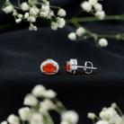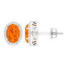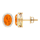 1.50 CT Oval Cut Fire Opal and Diamond Halo Stud Earrings