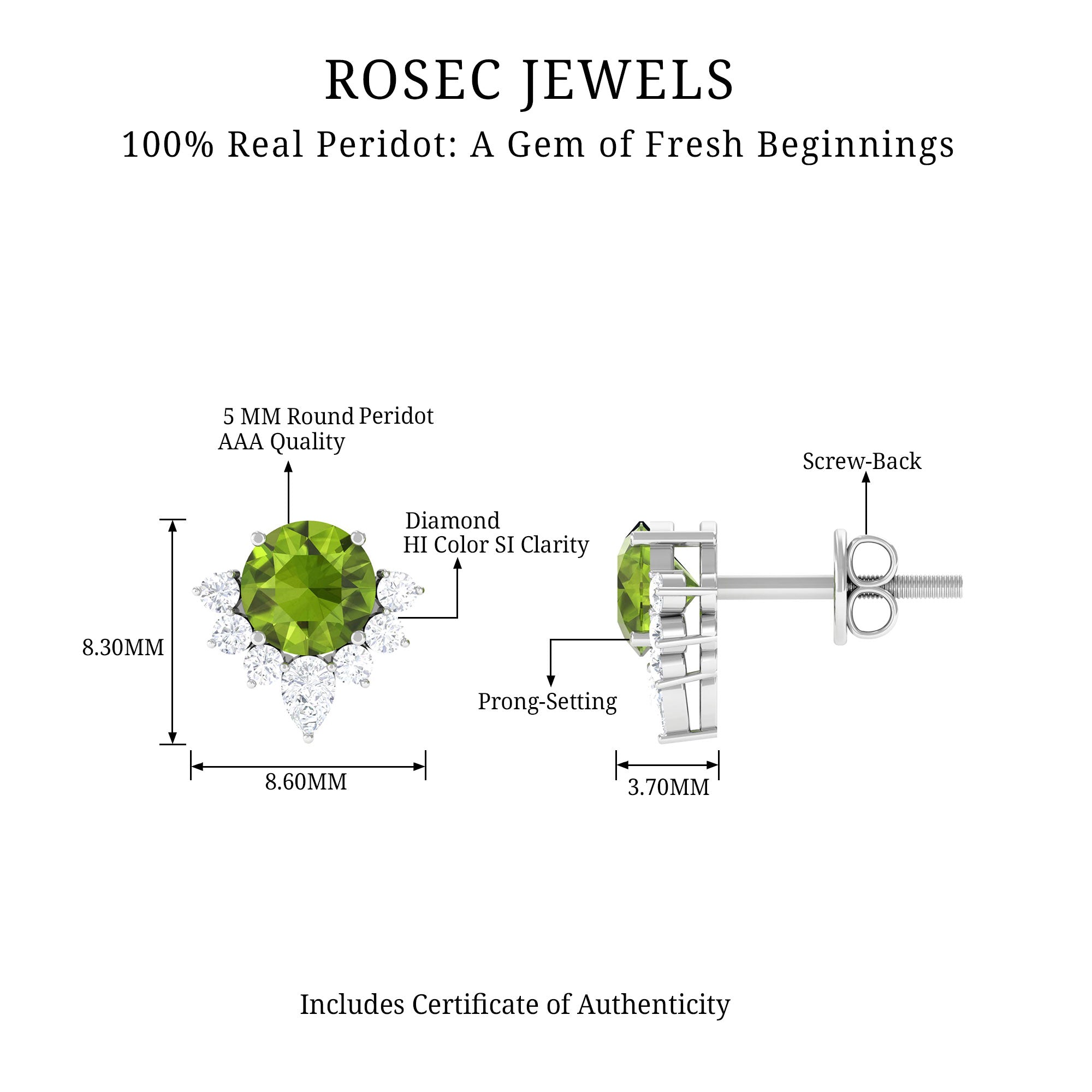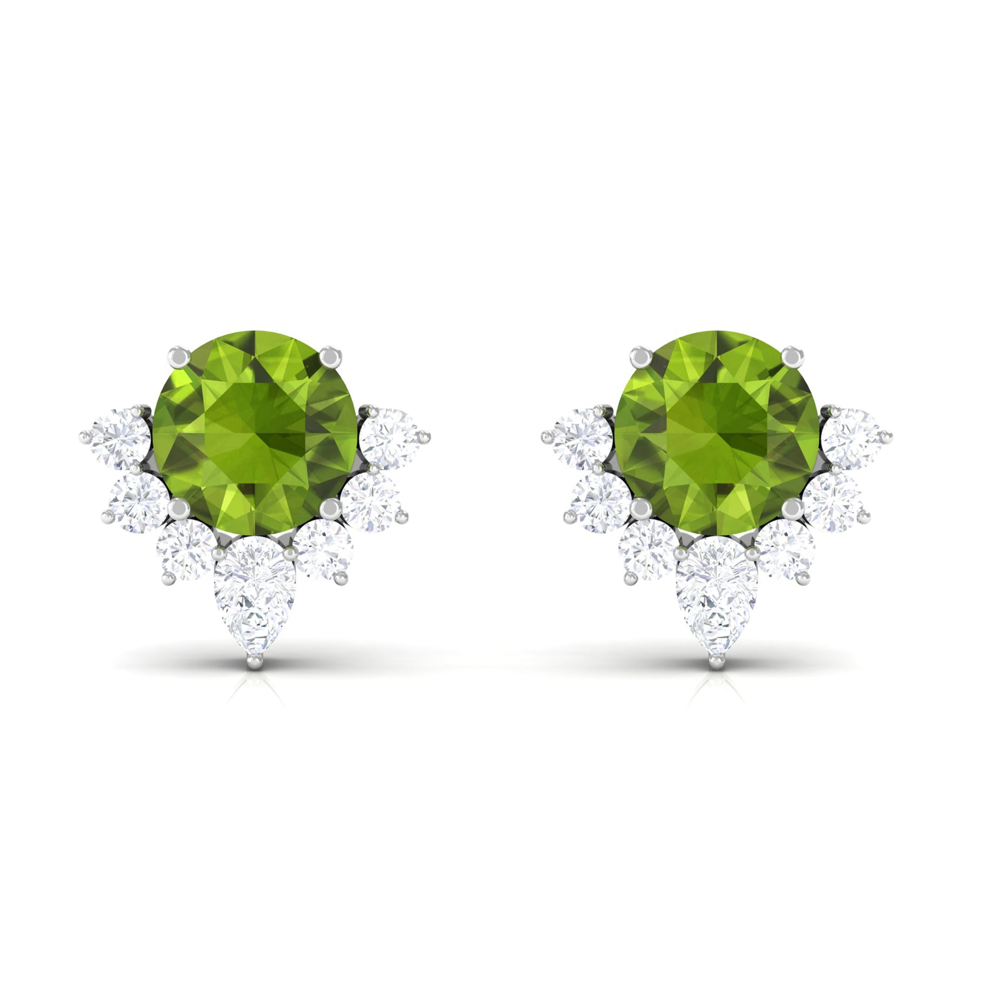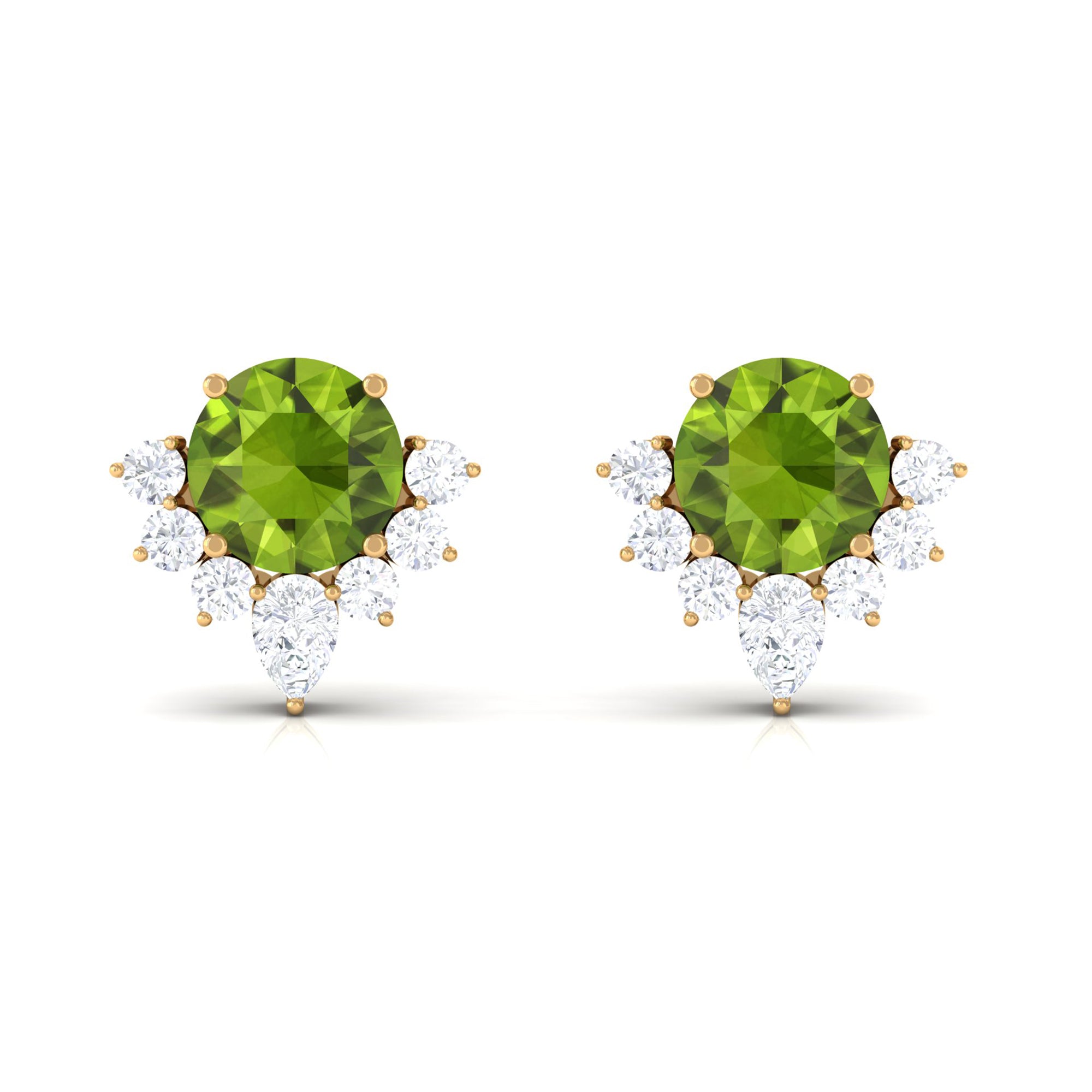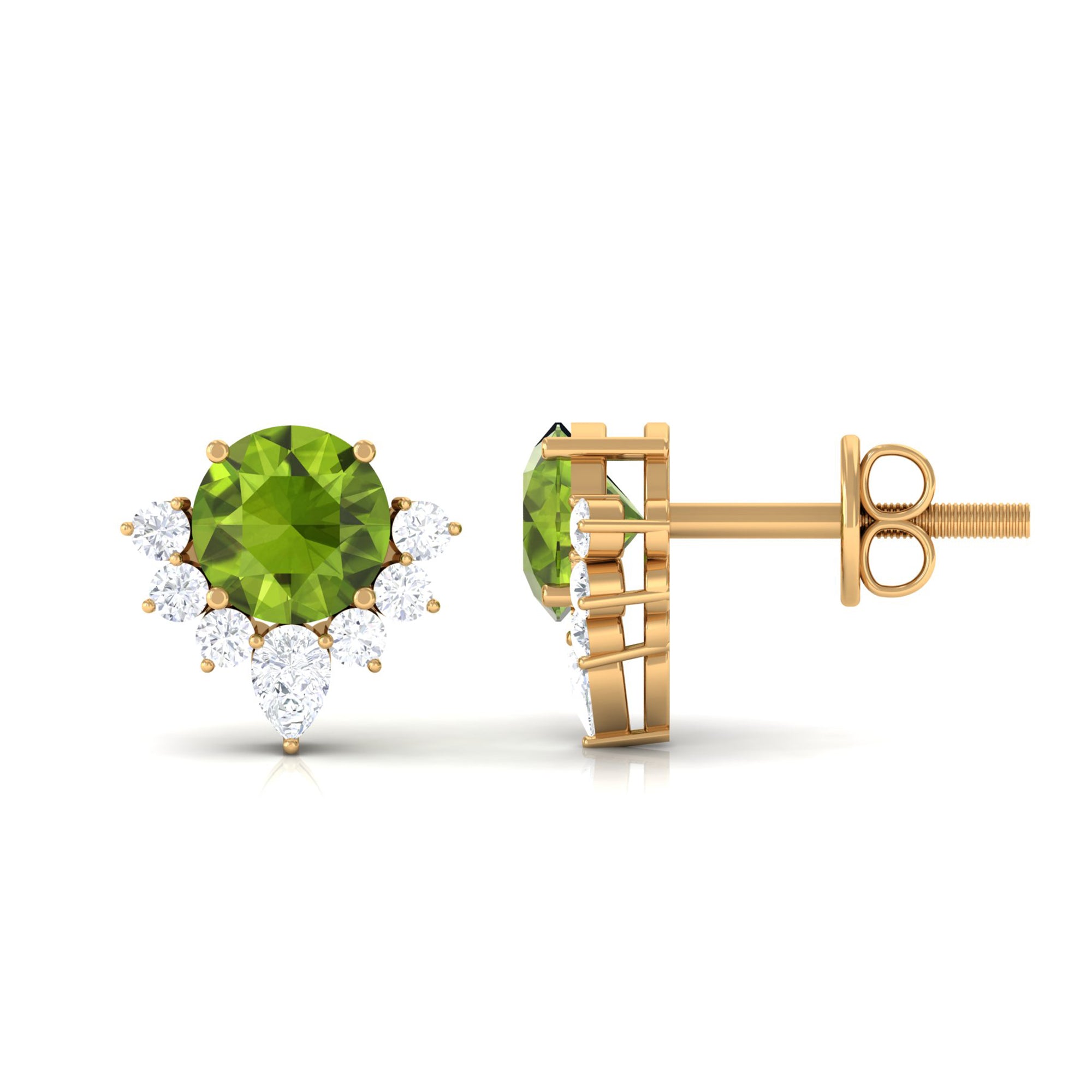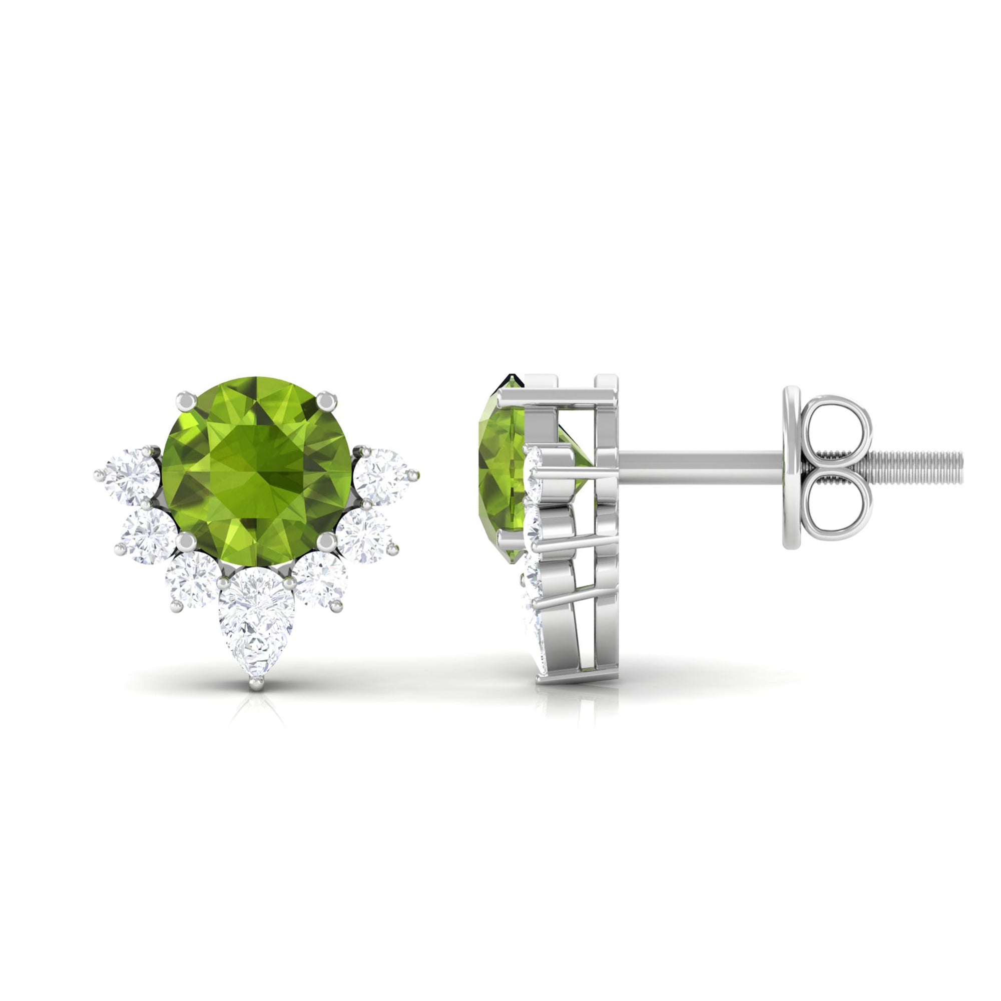 1.50 CT Peridot and Diamond Classic Stud Earrings with Half Halo