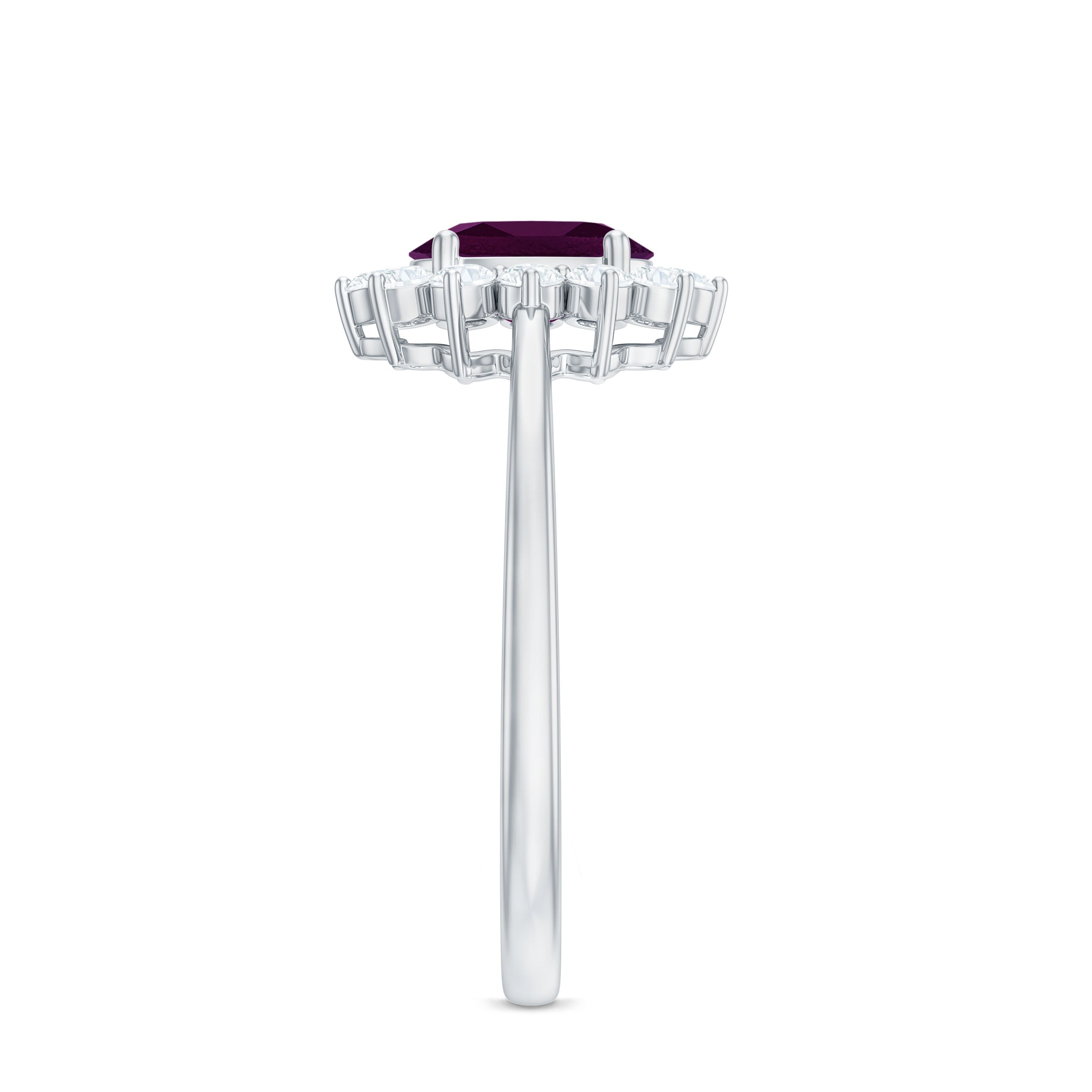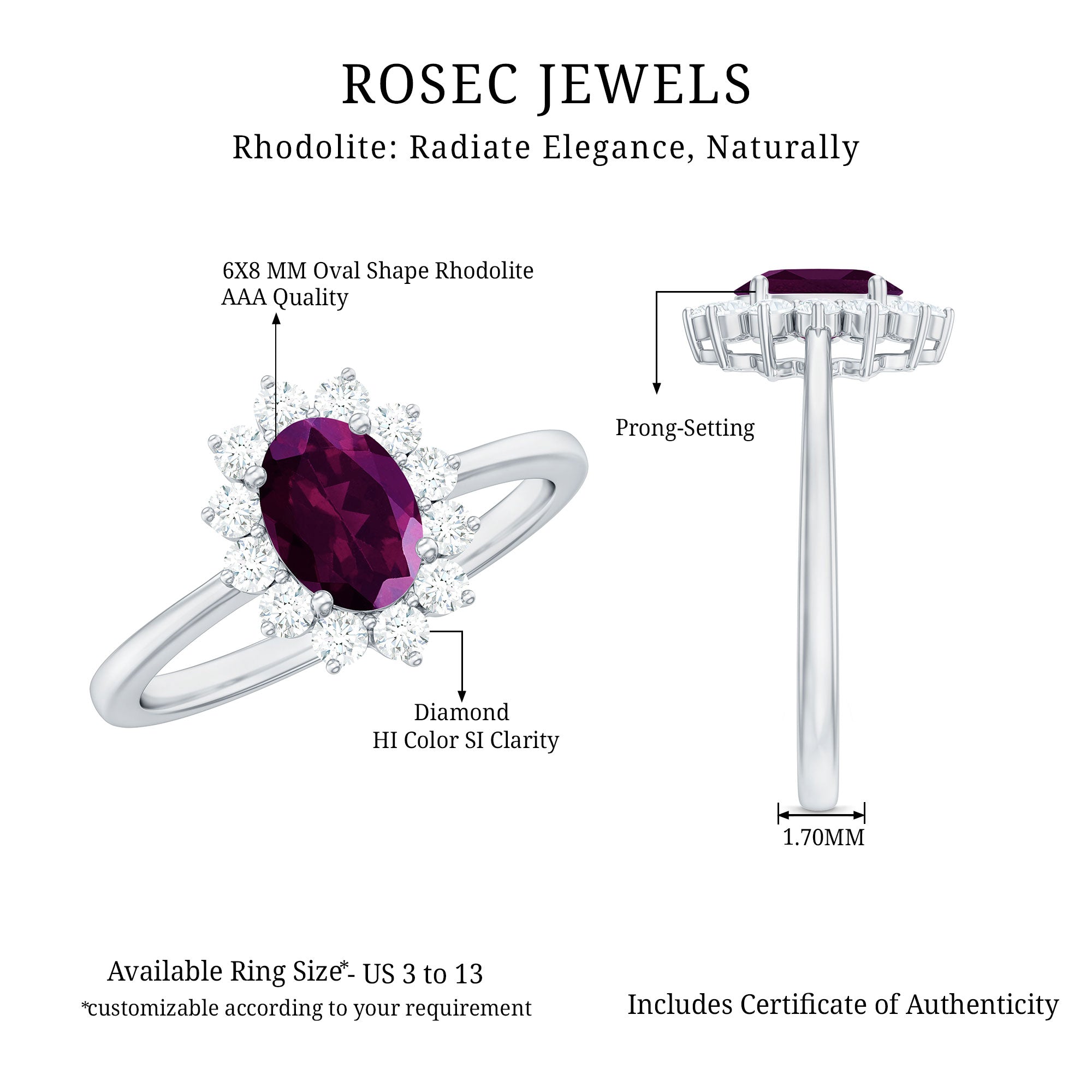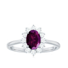 1.50 CT Princess Diana Inspired Oval Shape Rhodolite Engagement Ring Diamond Halo