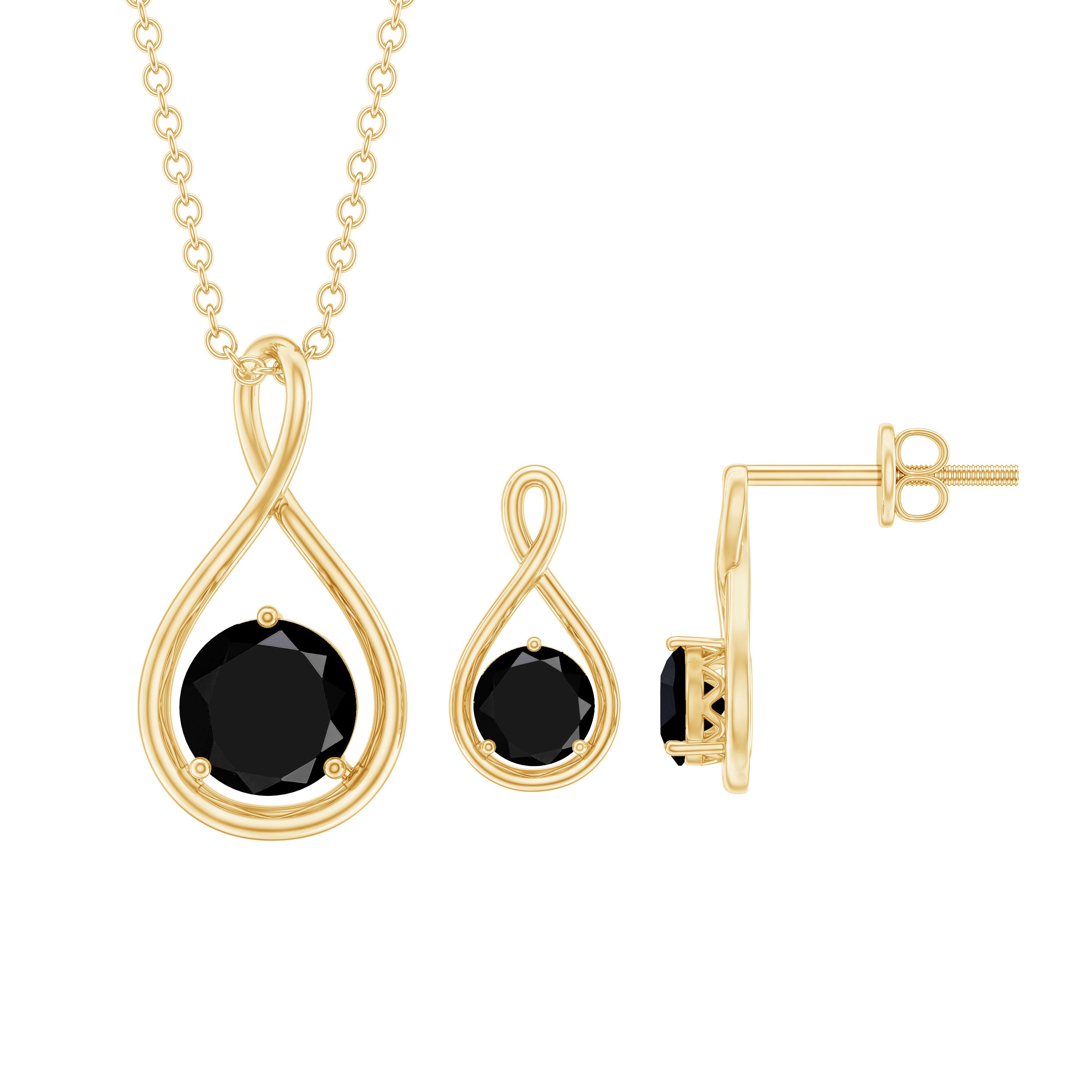 1.50 CT Round Cut Black Spinel Solitaire Infinity Jewelry Set