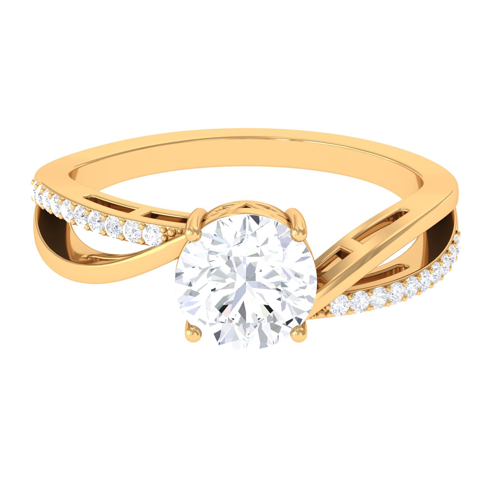 Jewelry has the power to be the one little thing that makes you feel unique. This Bypass Engagement Ring is embellished with Round Cut Zircon in Bypass Shank. This Simulated Diamond Engagement Ring is crafted in gold. Tell your story by wearing this Beautiful Solitaire Engagement Ring.