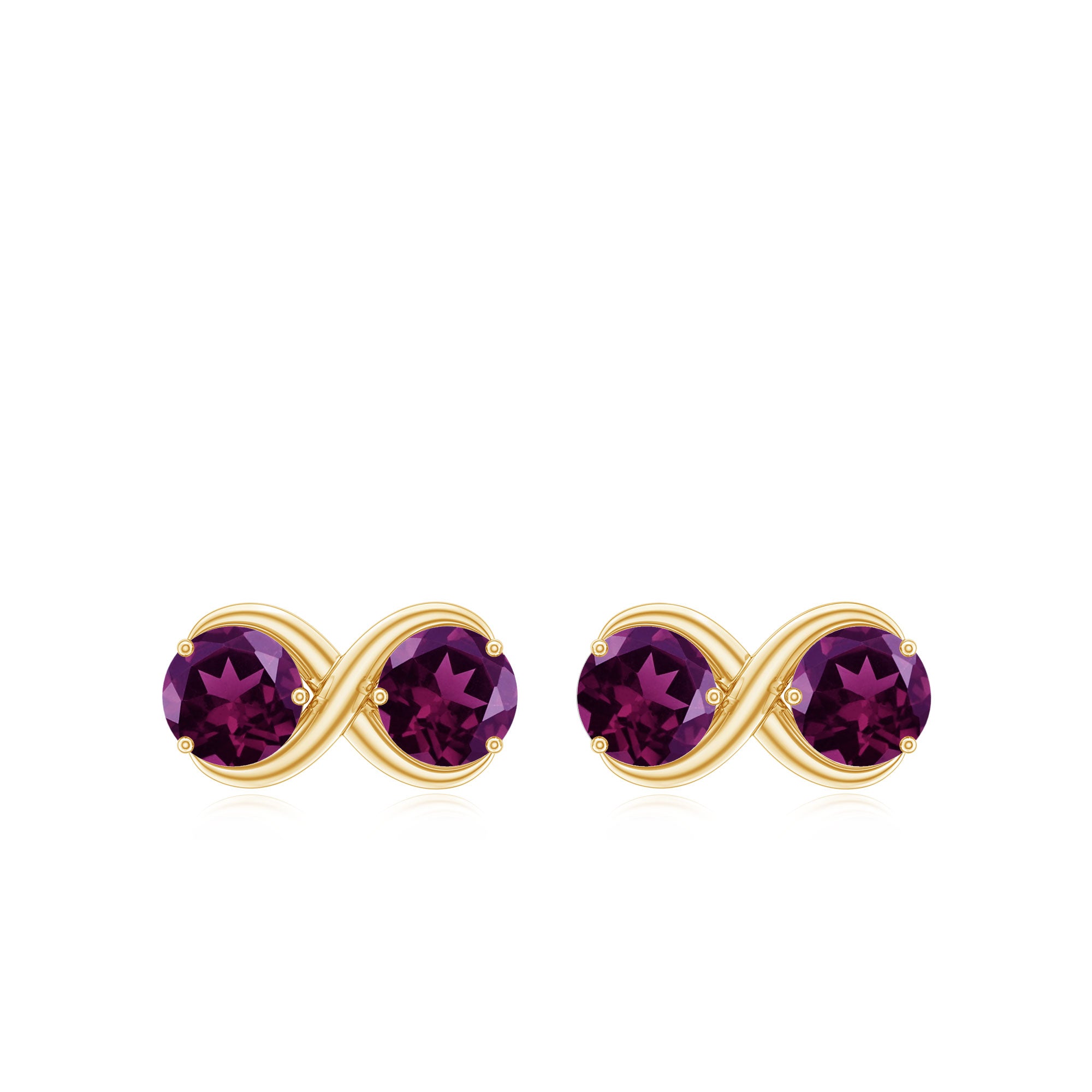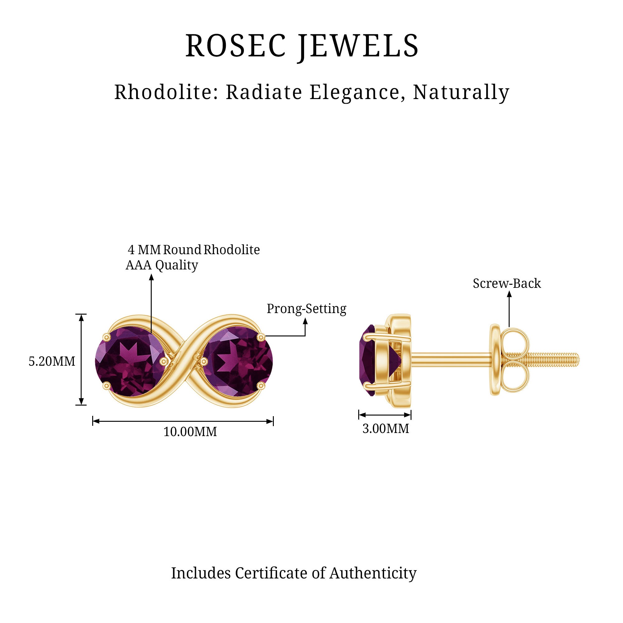 Make this promised day really special for her by giving her this pair of Infinity Stud Earrings she will cherish forever. Starring Round Shape Rhodolite in a Two Stone Setting held between a gorgeous infinity symbol crafted with Solid Gold.