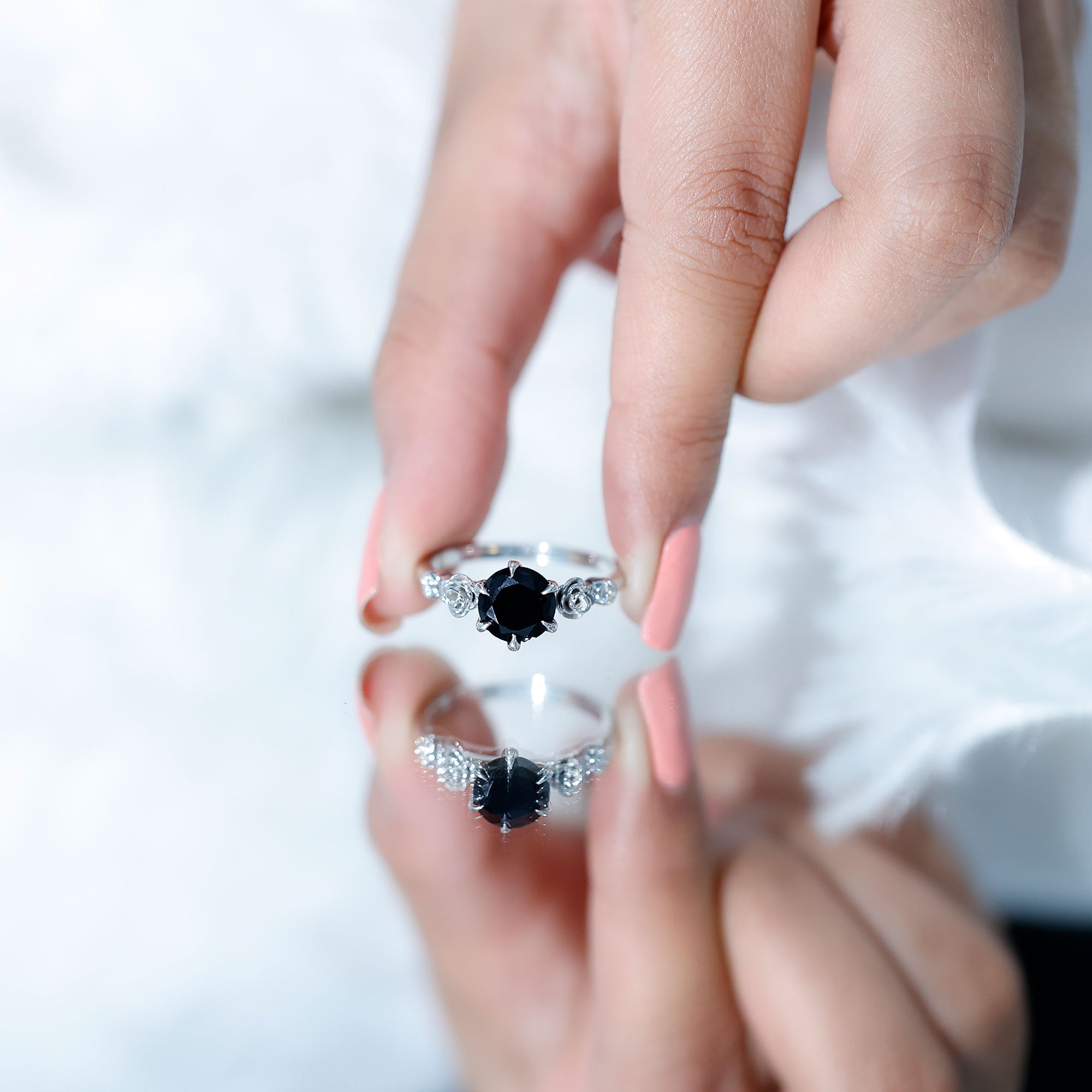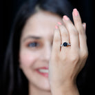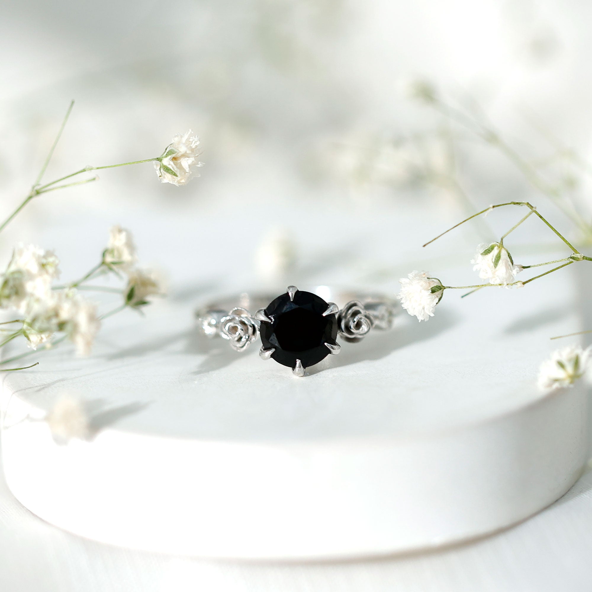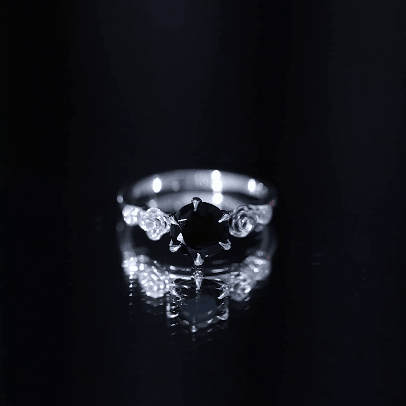 1.50 CT Solitaire Black Spinel Flower Ring with Diamond Side Stones