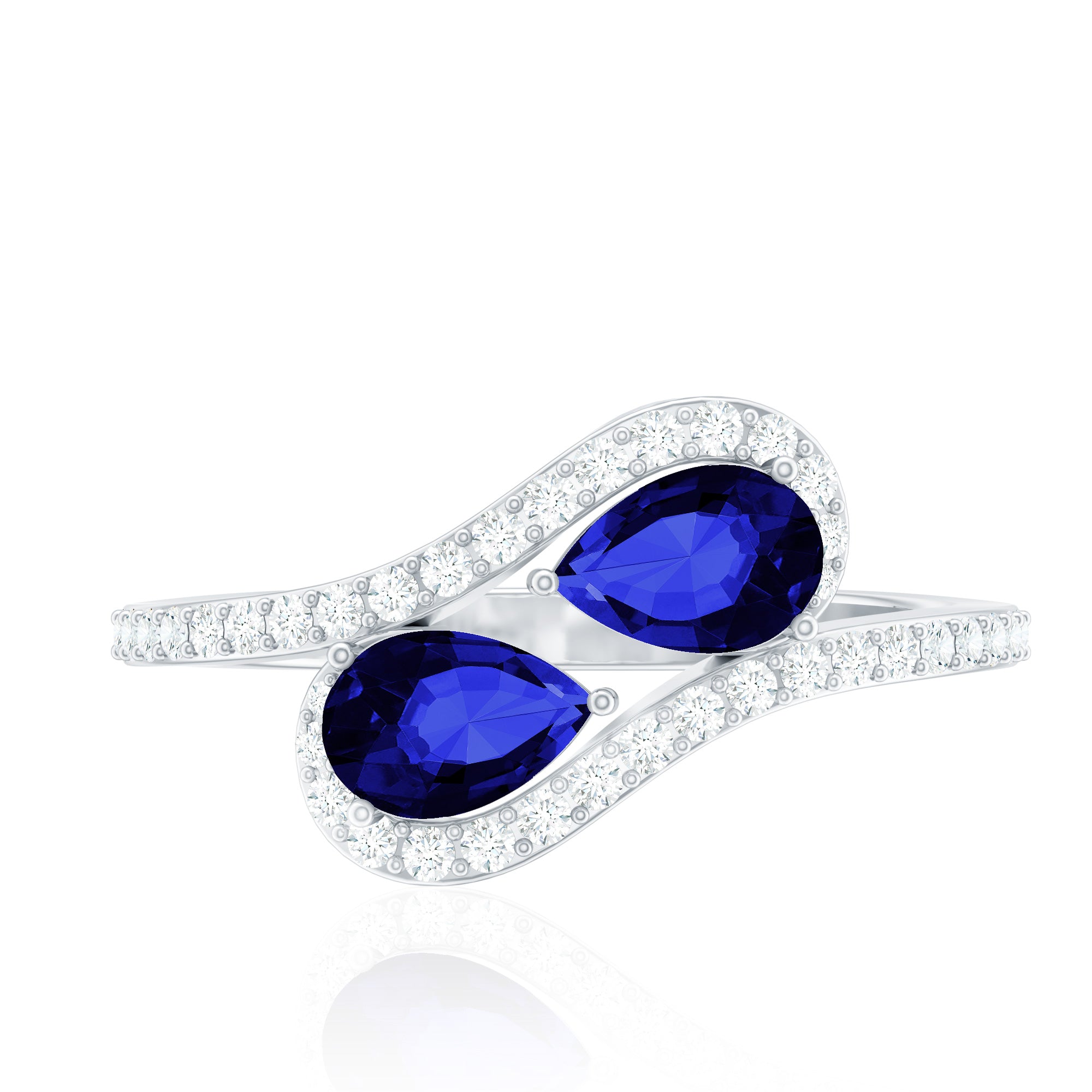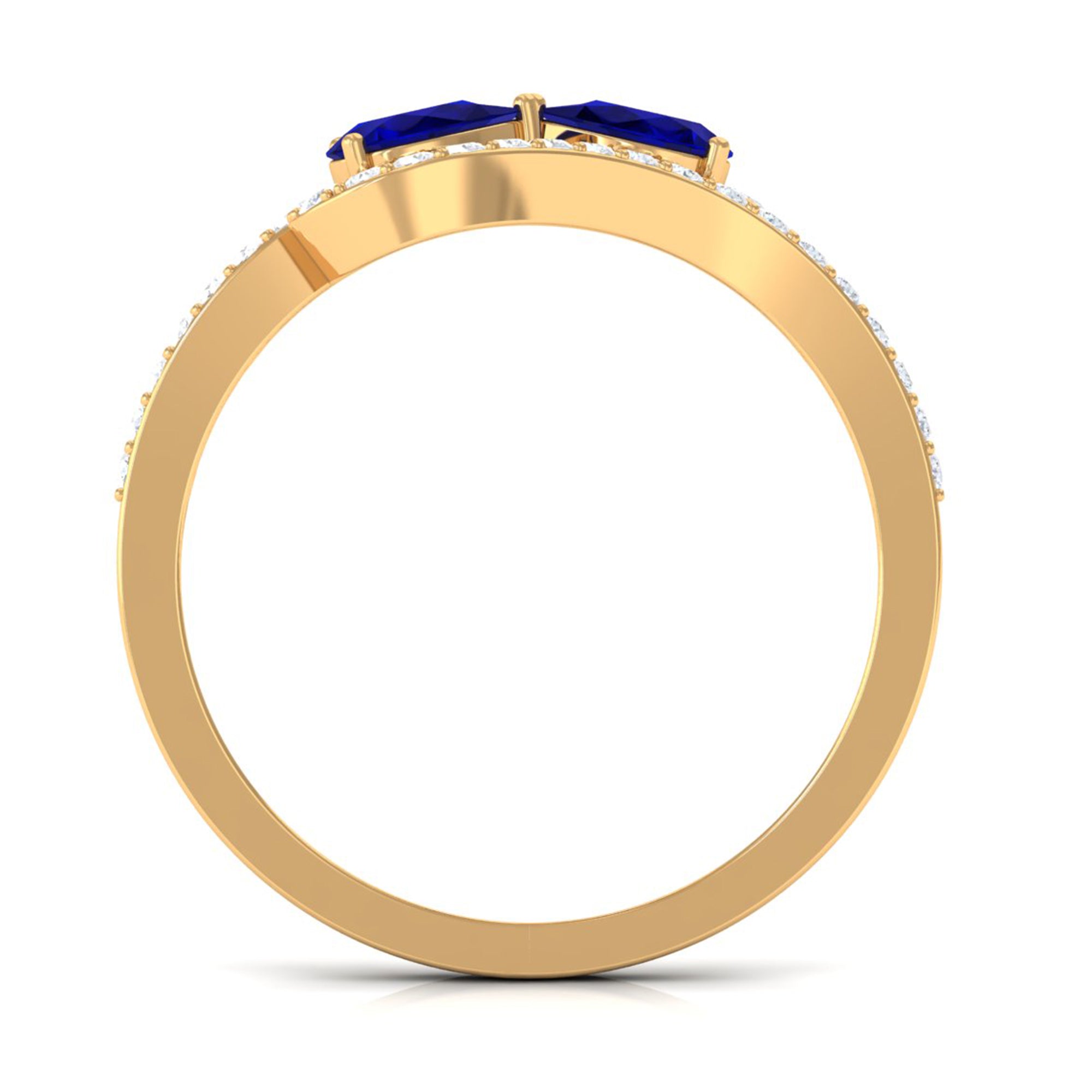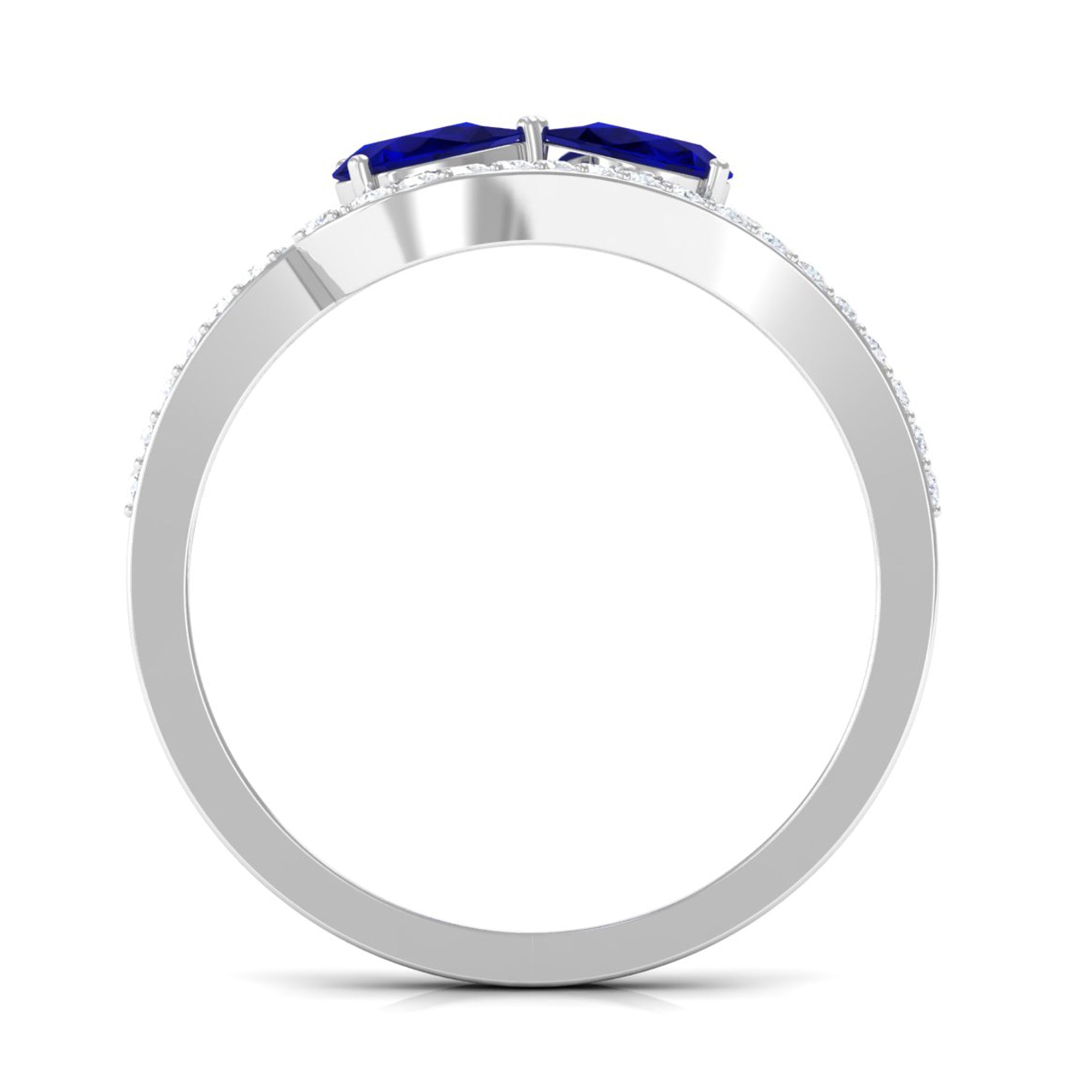 1.50 CT Two Stone Blue Sapphire Bypass Engagement Ring with Diamond