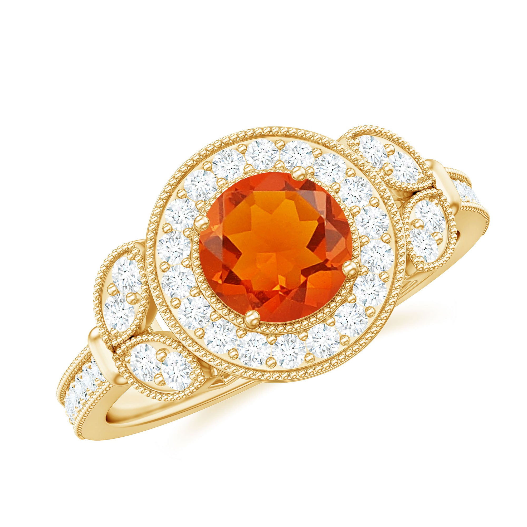 Indulge in the timeless elegance of the Classic Gold Beaded Ring, featuring a stunning Round Shape Fire Opal and sparkling Diamond accents. This exquisite Fire Opal Engagement Ring is a fashion-forward choice that will make any woman feel glamorous and sophisticated. With its intricate beaded design and high-quality materials, this ring is a stylish statement piece that is sure to turn heads and make a lasting impression.