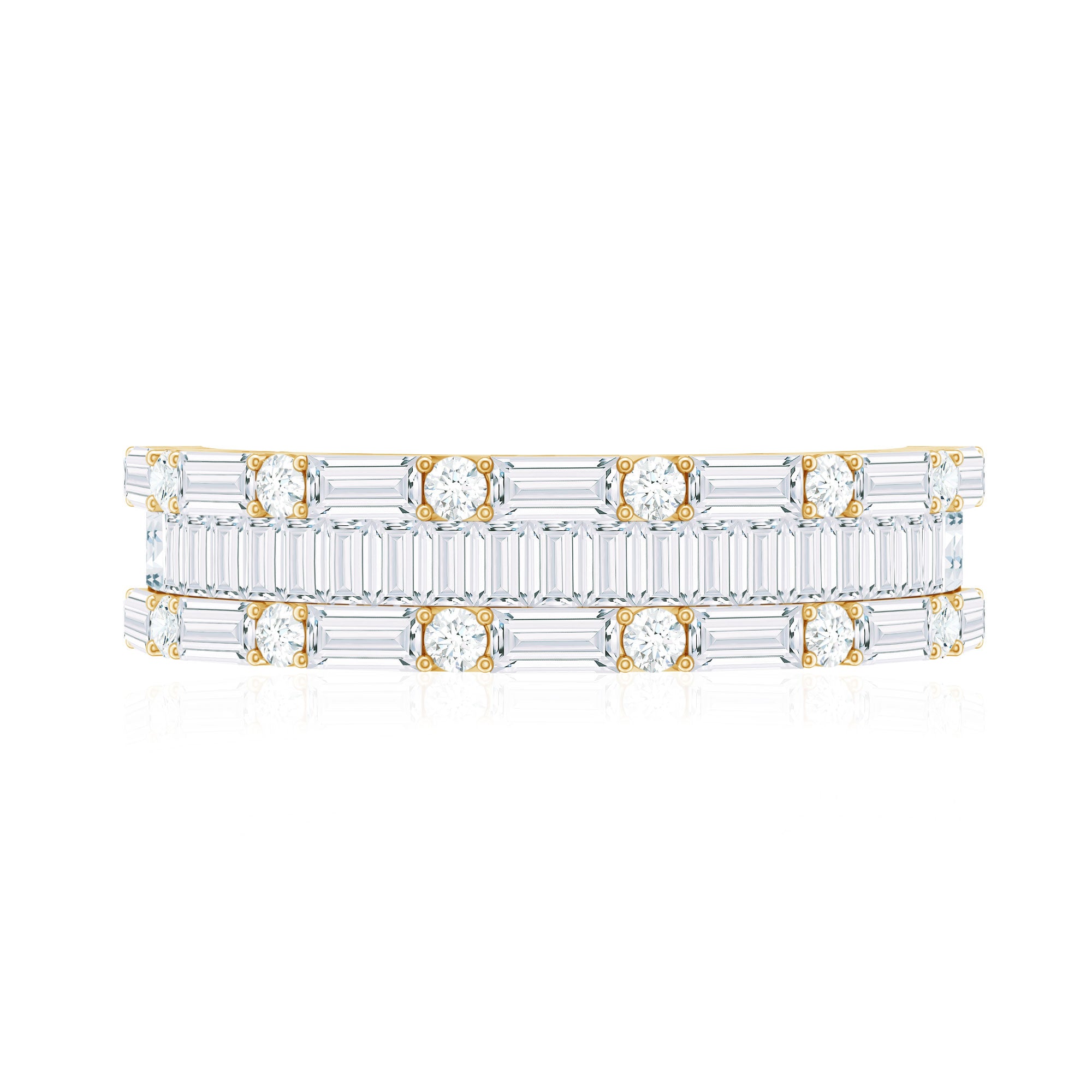 1.75 CT Baguette and Round Zircon Wedding Band in Gold