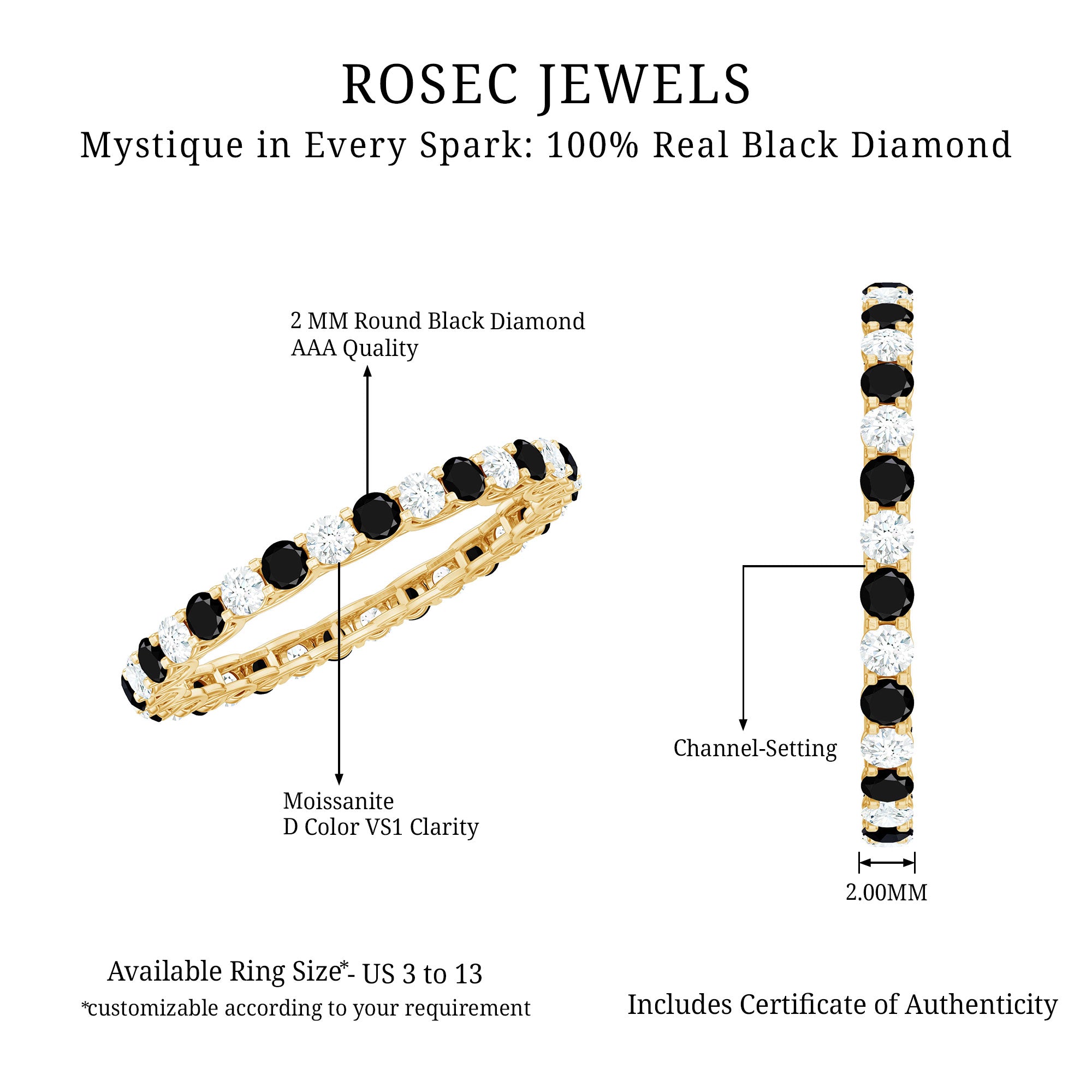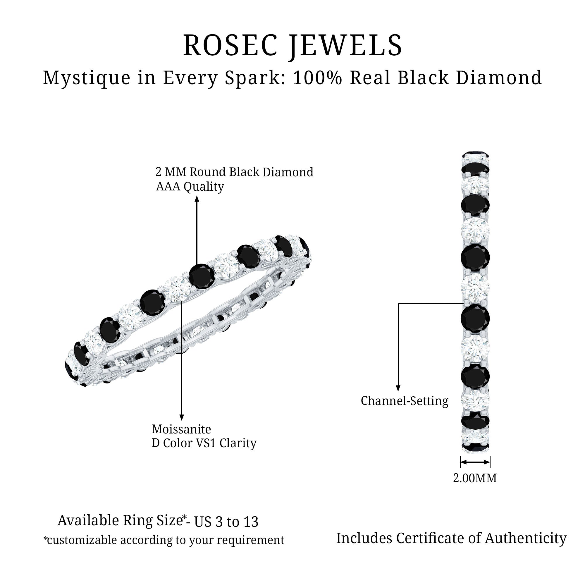 1.75 CT Black Diamond and Moissanite Full Eternity Ring in Trellis Setting