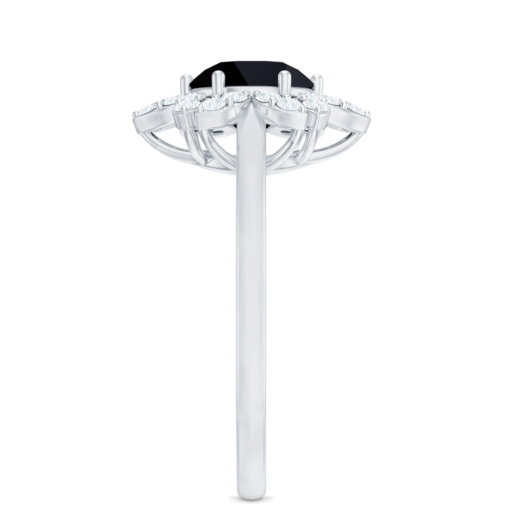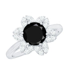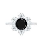 1.75 CT Black Spinel Flower Ring with Diamond Halo