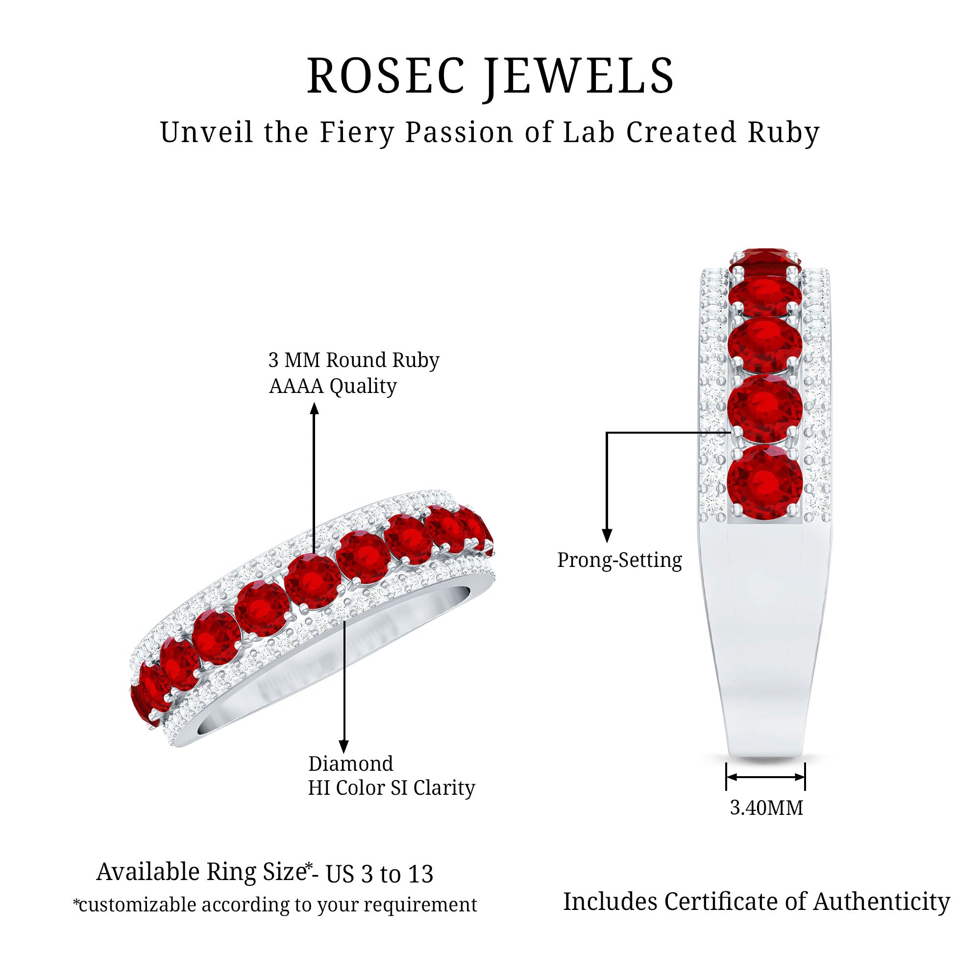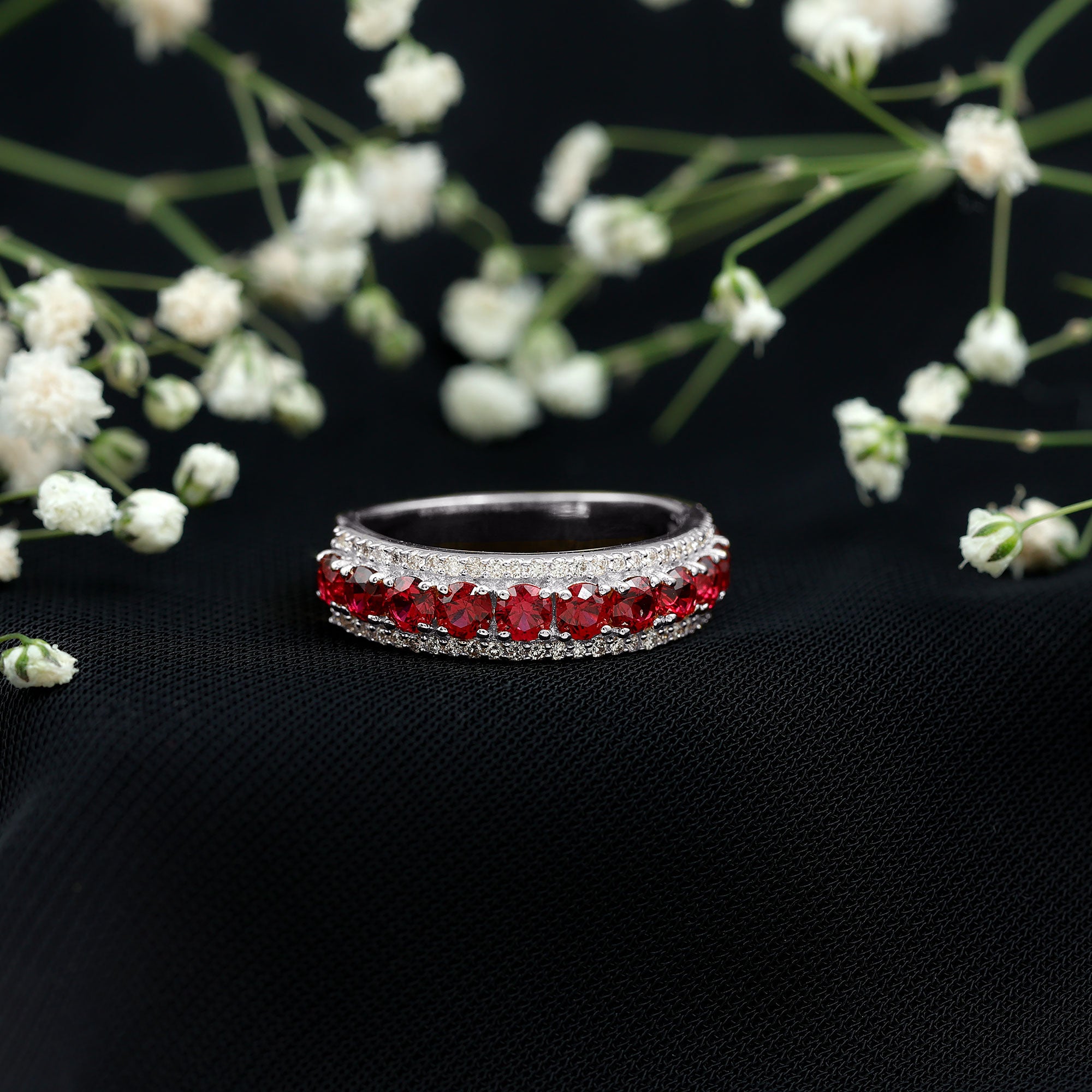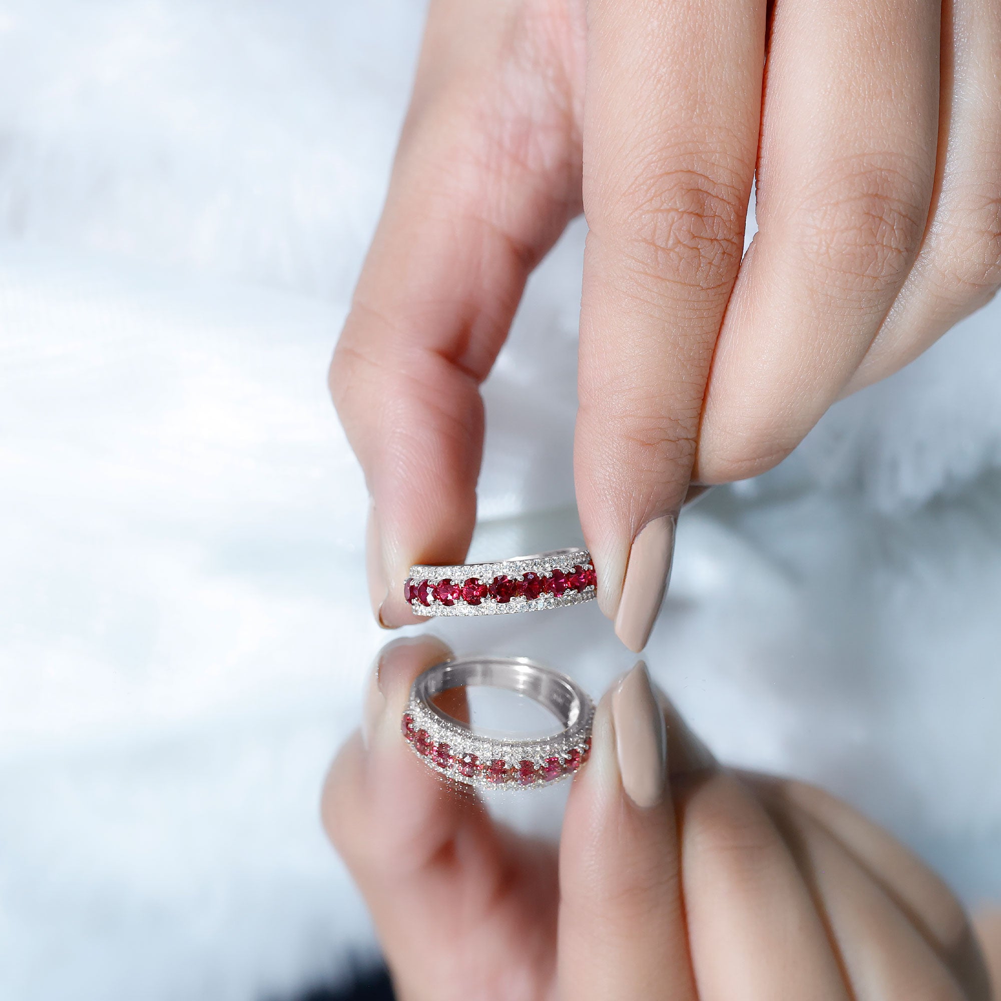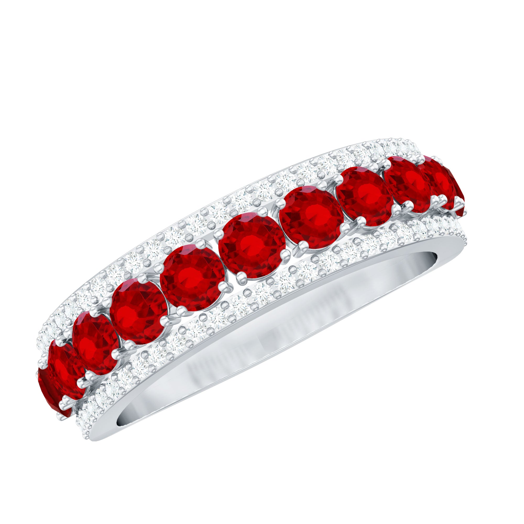 1.75 CT Created Ruby Anniversary Ring with Diamond Accent