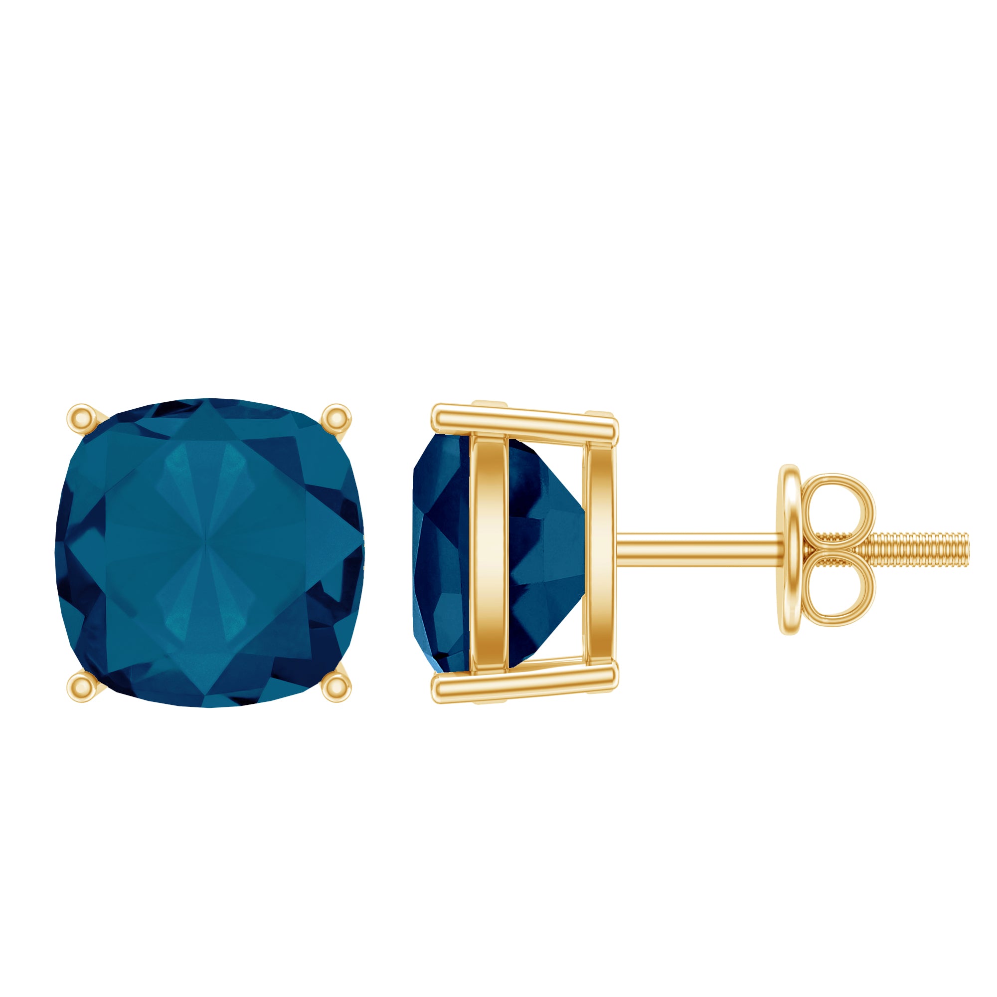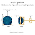 These Solitaire Stud Earrings are a beautiful present for your loved one. The earrings feature stunning Cushion Cut London blue topaz gemstones set in simple yet elegant 4 Prong Setting. The rich blue color of the topaz is reminiscent of the autumn sky. These earrings are a timeless and versatile addition to any jewelry collection, and make a perfect gift for a loved one or a treat for yourself.