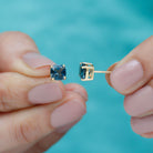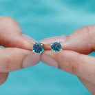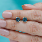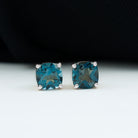 1.75 CT Cushion Cut Solitaire London Blue Topaz Stud Earrings