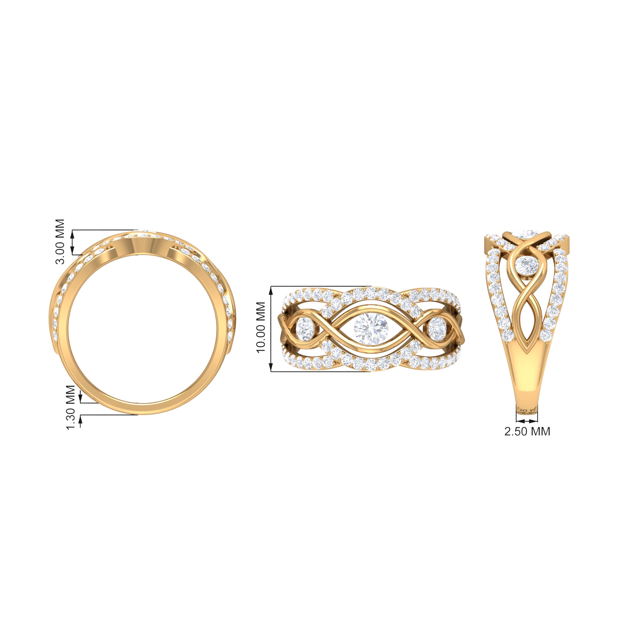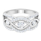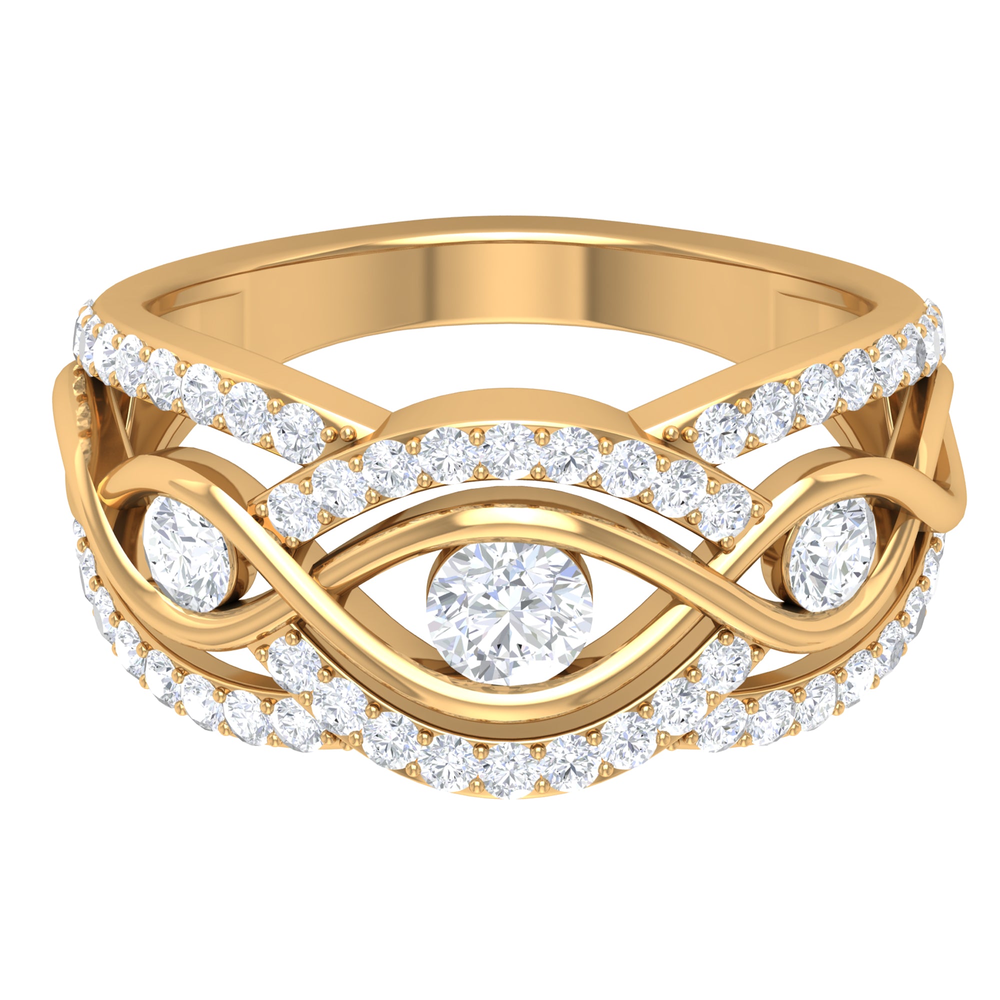 Grab this Round Shape Diamond Wedding Band Infinity Ring in Accent Setting to bless her this Wedding Season. This 3 Stone Ring is made with Solid Gold Metal Finish.