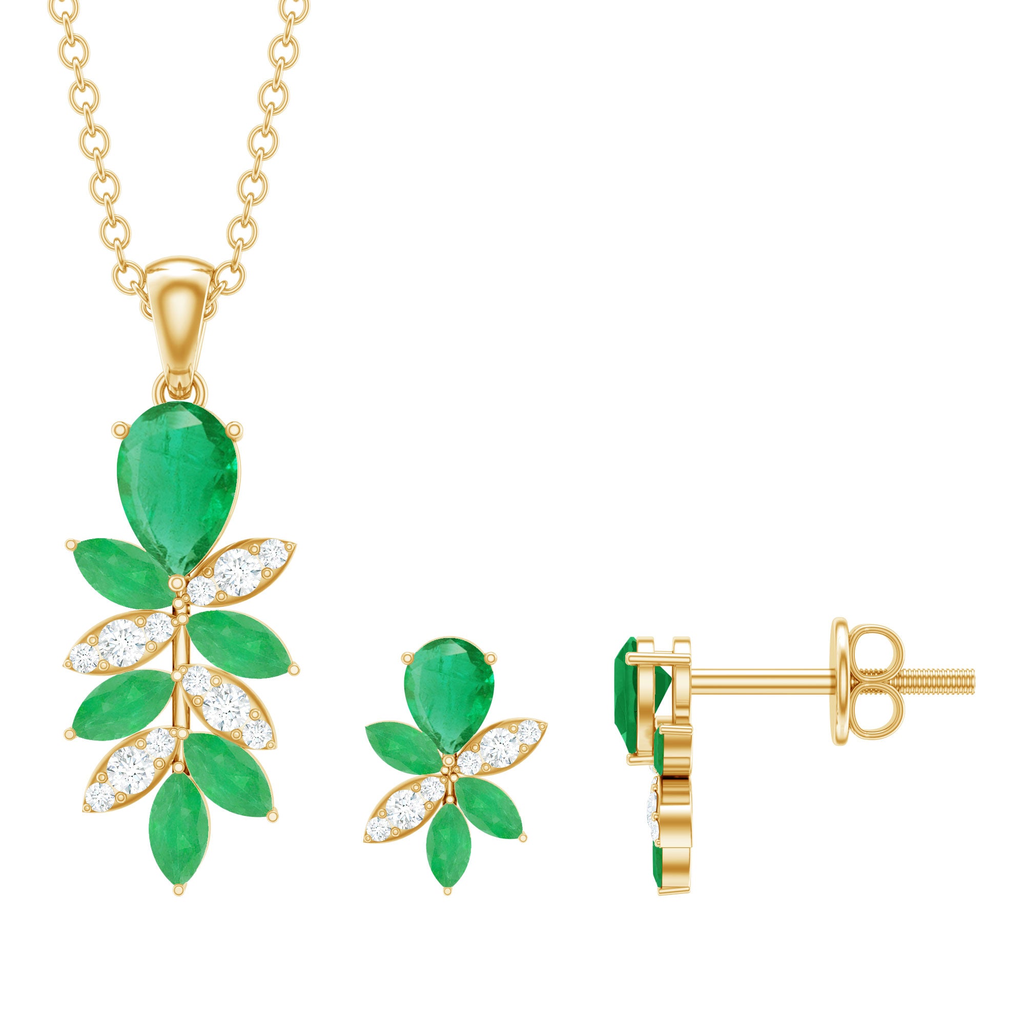 1.75 CT Nature Inspired Emerald and Diamond Dangle jewelry Set