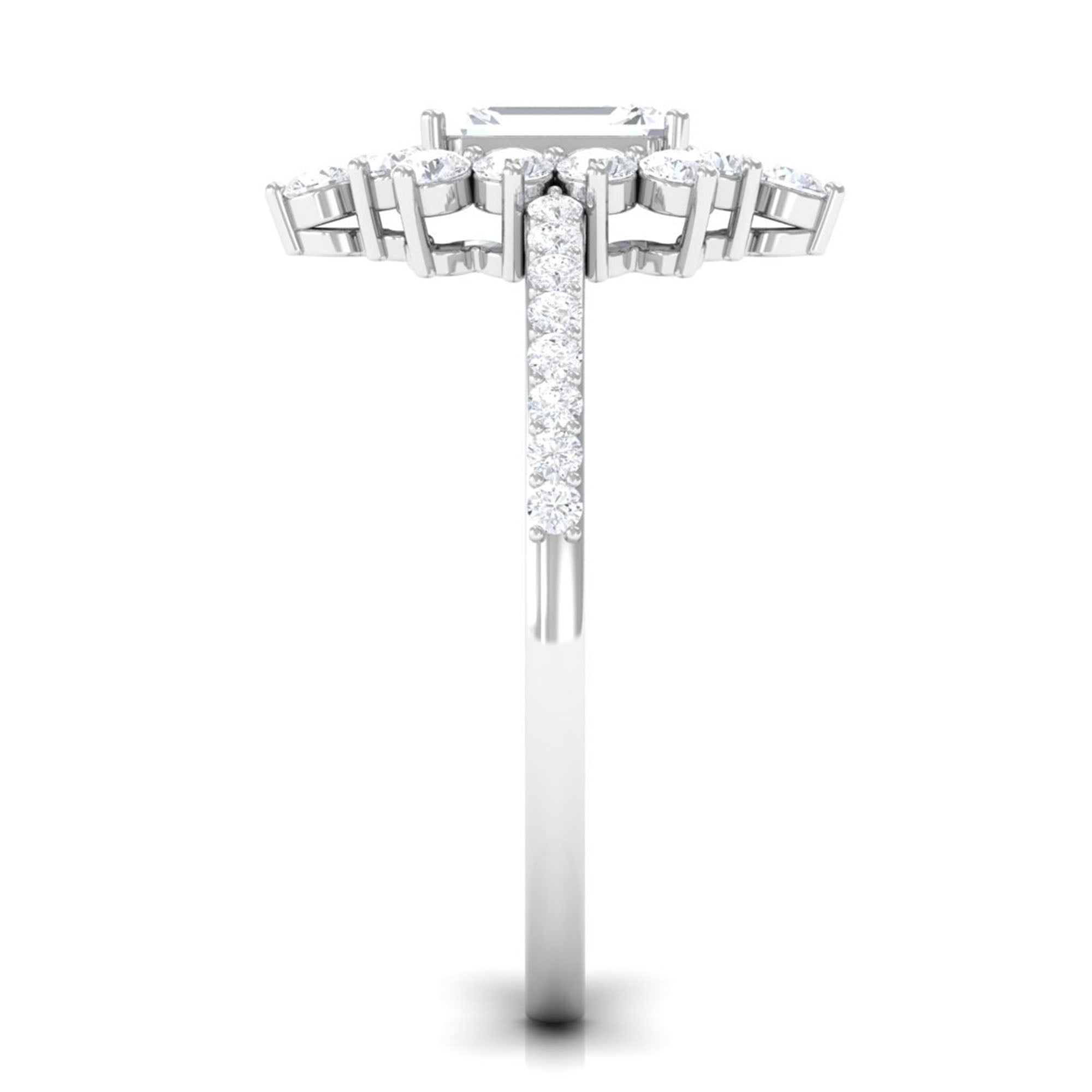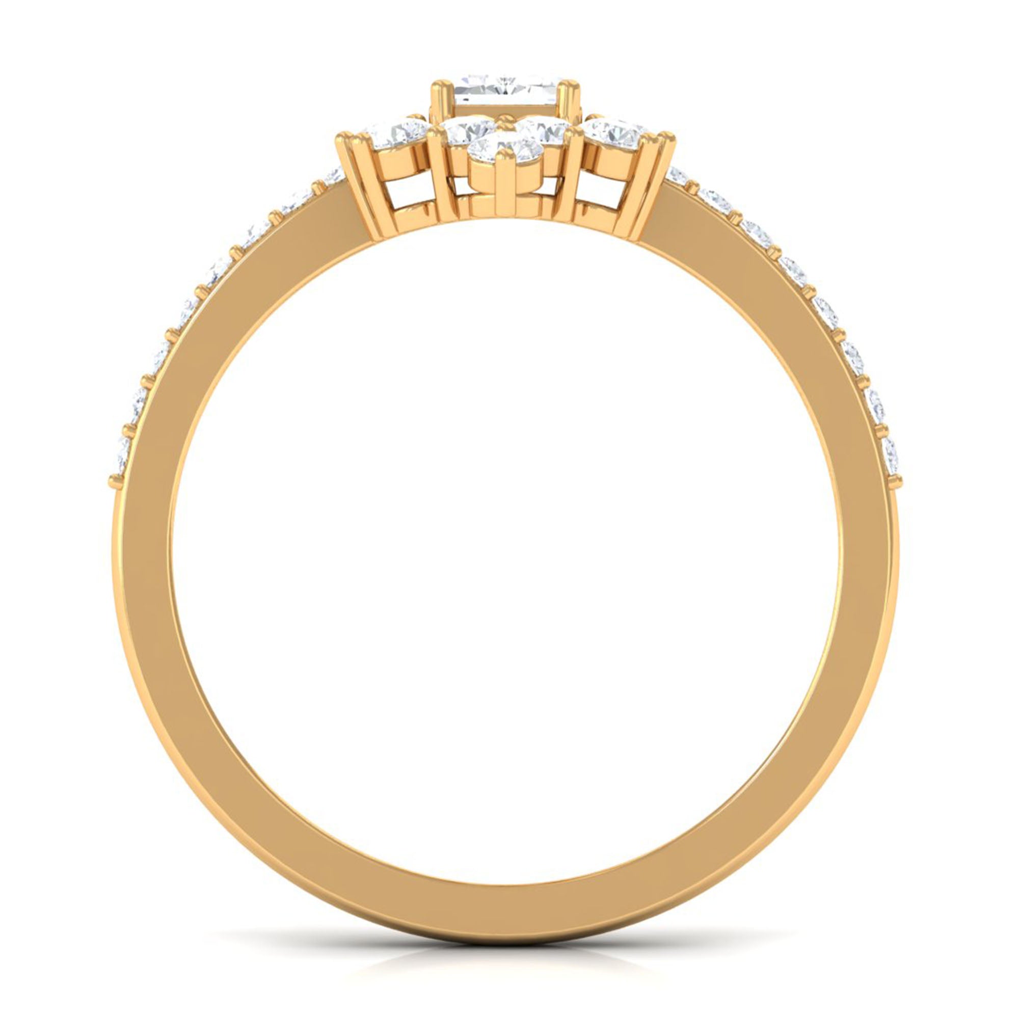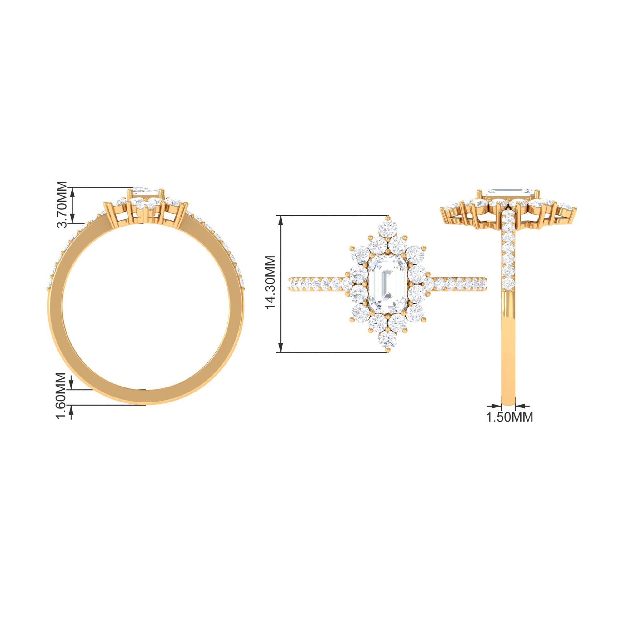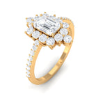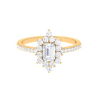 A classic piece with timeless appeal this Vintage Engagement Ring is adorned with the brilliant Octagon Shape Zircon set in Prong Setting with CZ Halo and Side Stones. This Cubic Zirconia Ring is crafted in Gold. This charming Simulated Diamond Ring makes for a trendy and elegant choice for different occasions. Mark your promise to your blooming lady love with our Zircon Engagement Ring.