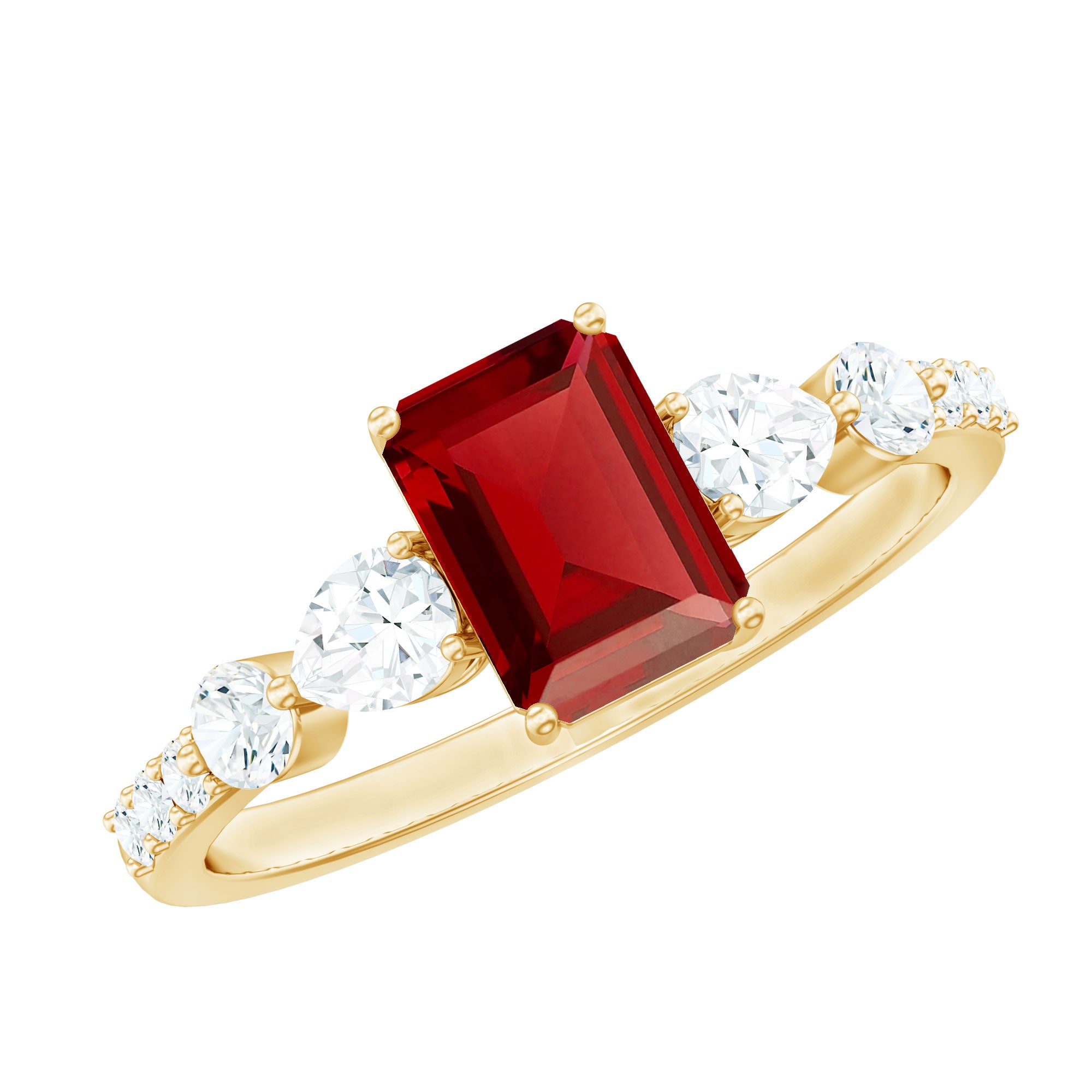 1.75 CT Octagon Lab Created Ruby Classic Solitaire Engagement Ring with Moissanite