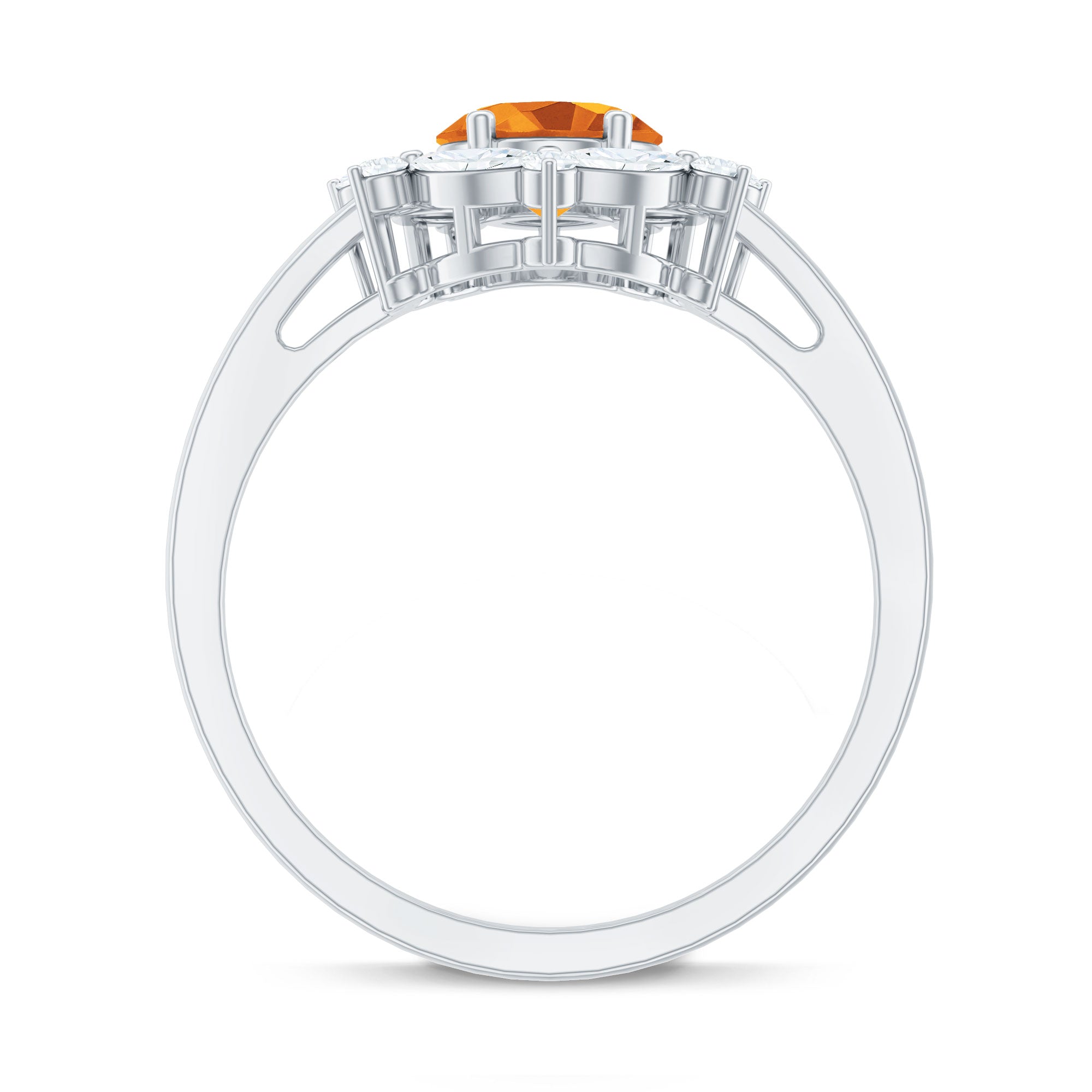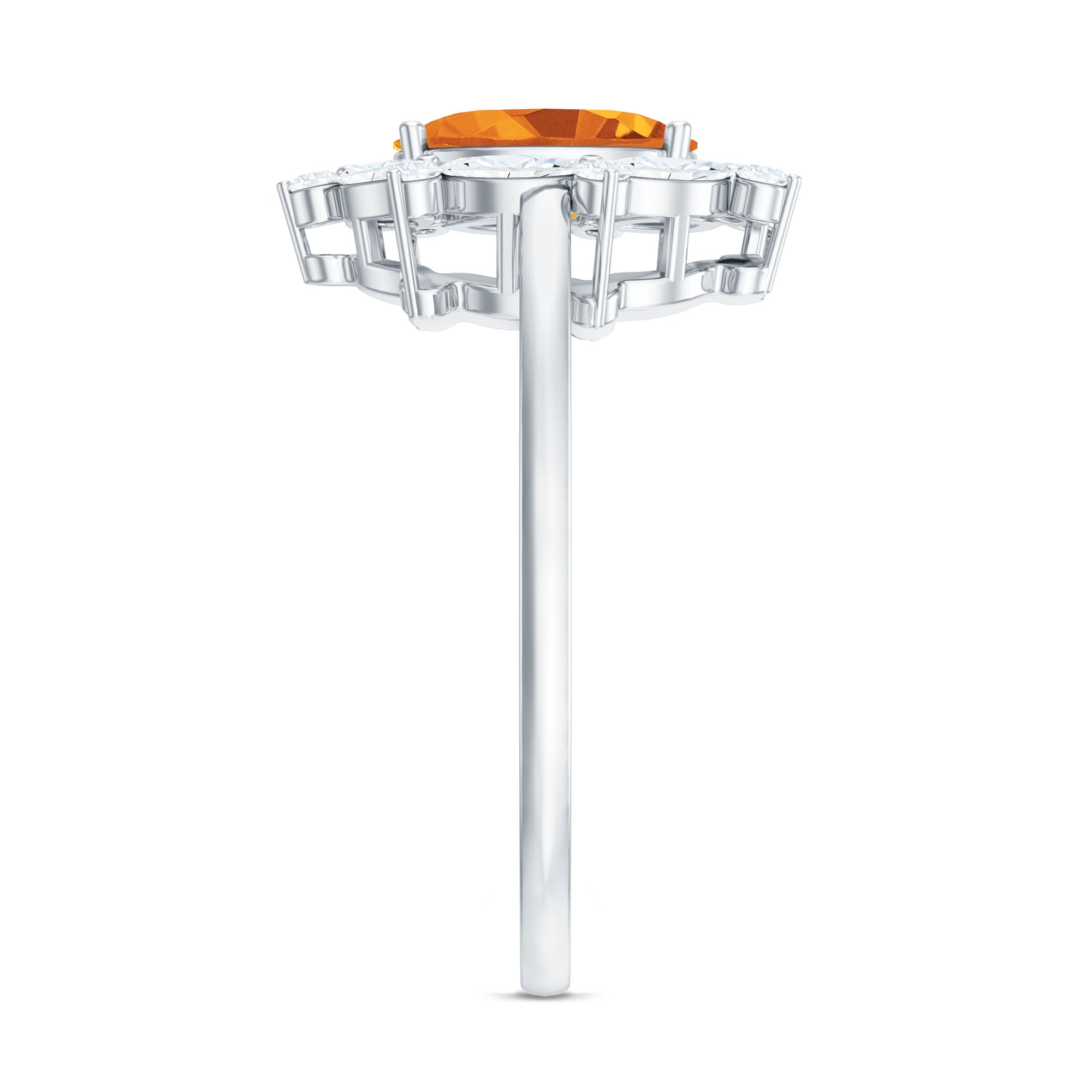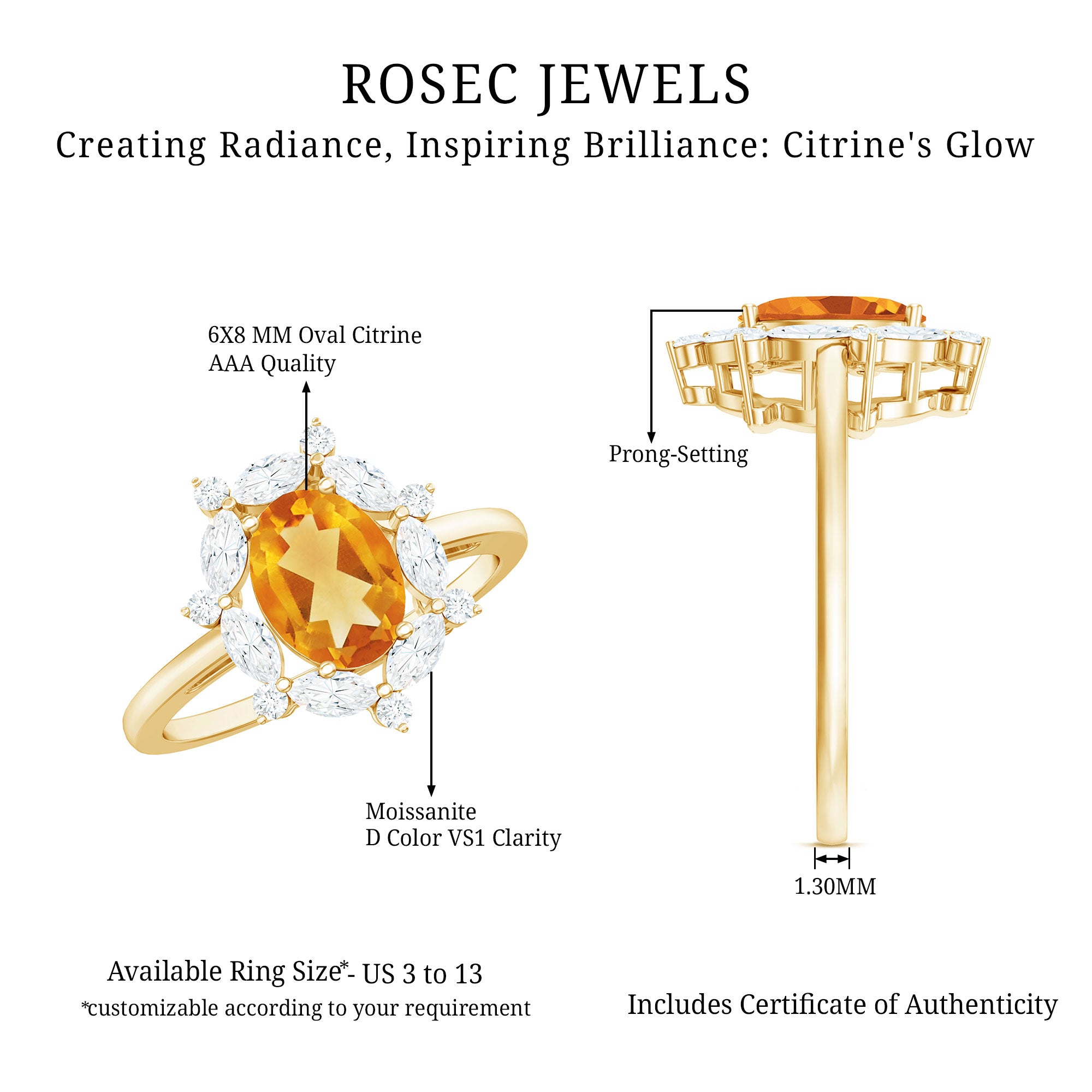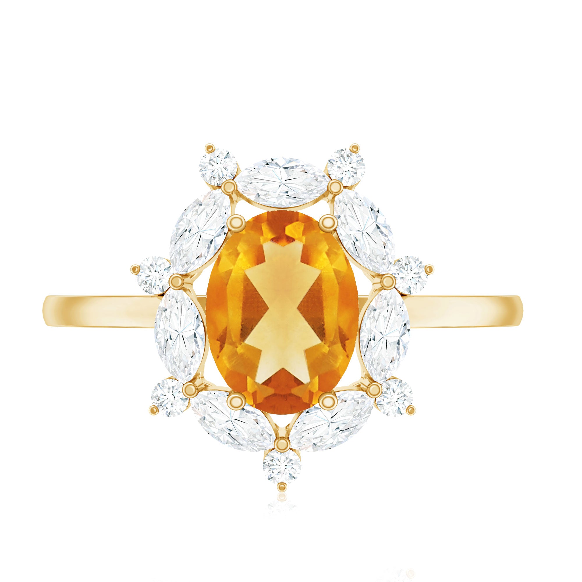 1.75 CT Oval Citrine Designer Halo Engagement Ring with Moissanite