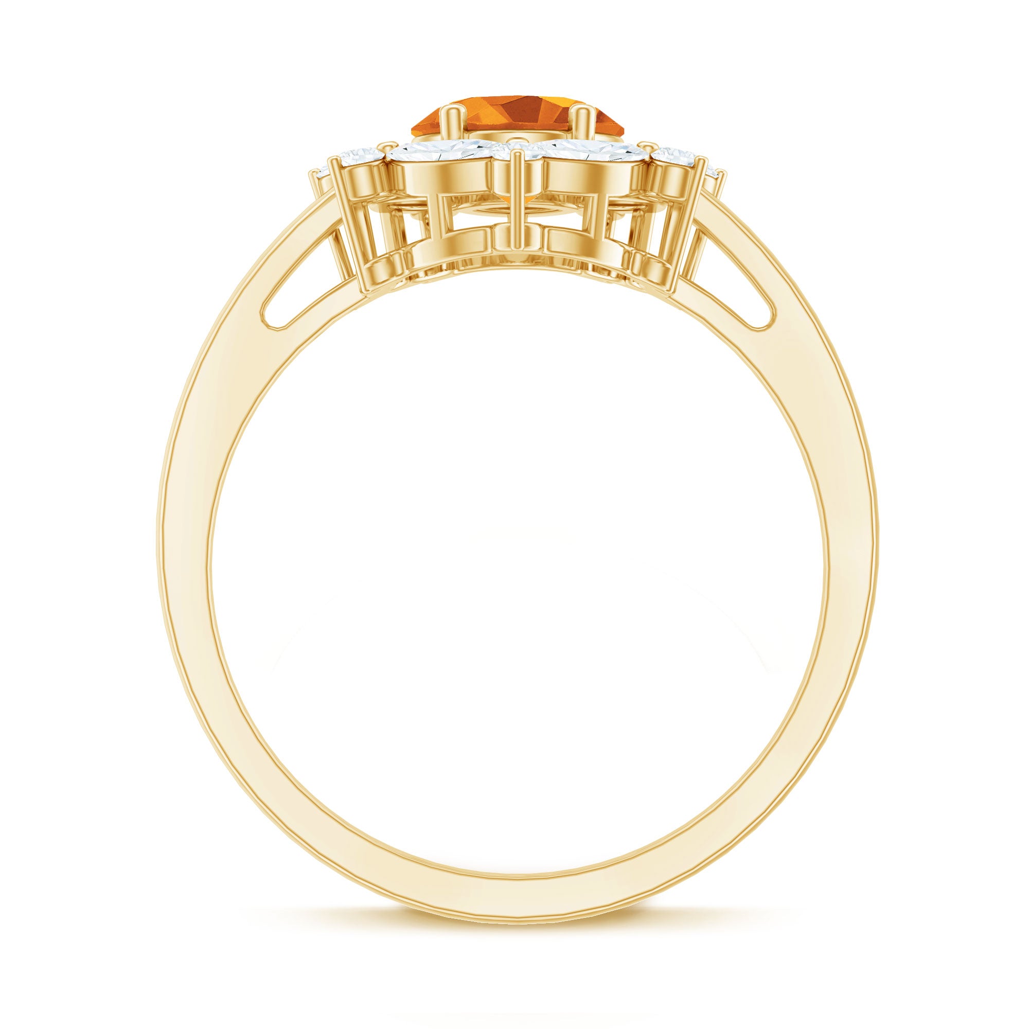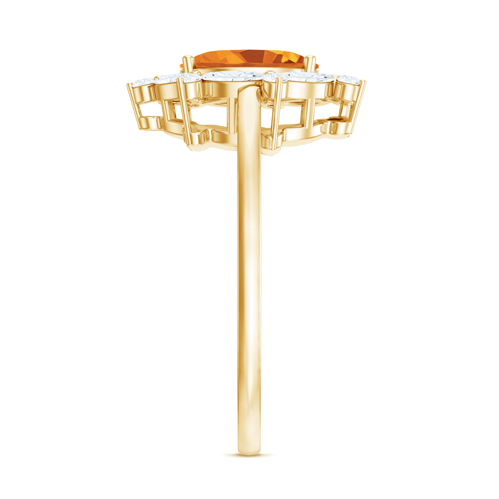 Make a stunning proposal with this elegant Citrine Engagement Ring. The ring features an oval cut Citrine surrounded by a halo of marquise and round moissanite. The designer halo adds a touch of glamour to this gorgeous piece of jewelry, crafted in beautiful gold. Celebrate your love in style with this stunning engagement ring.