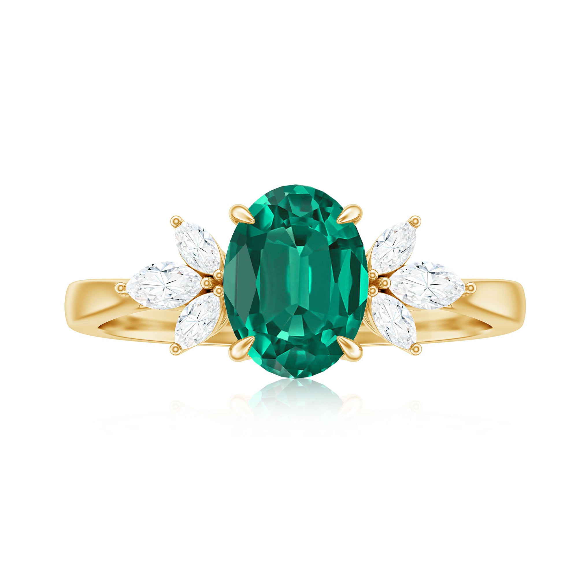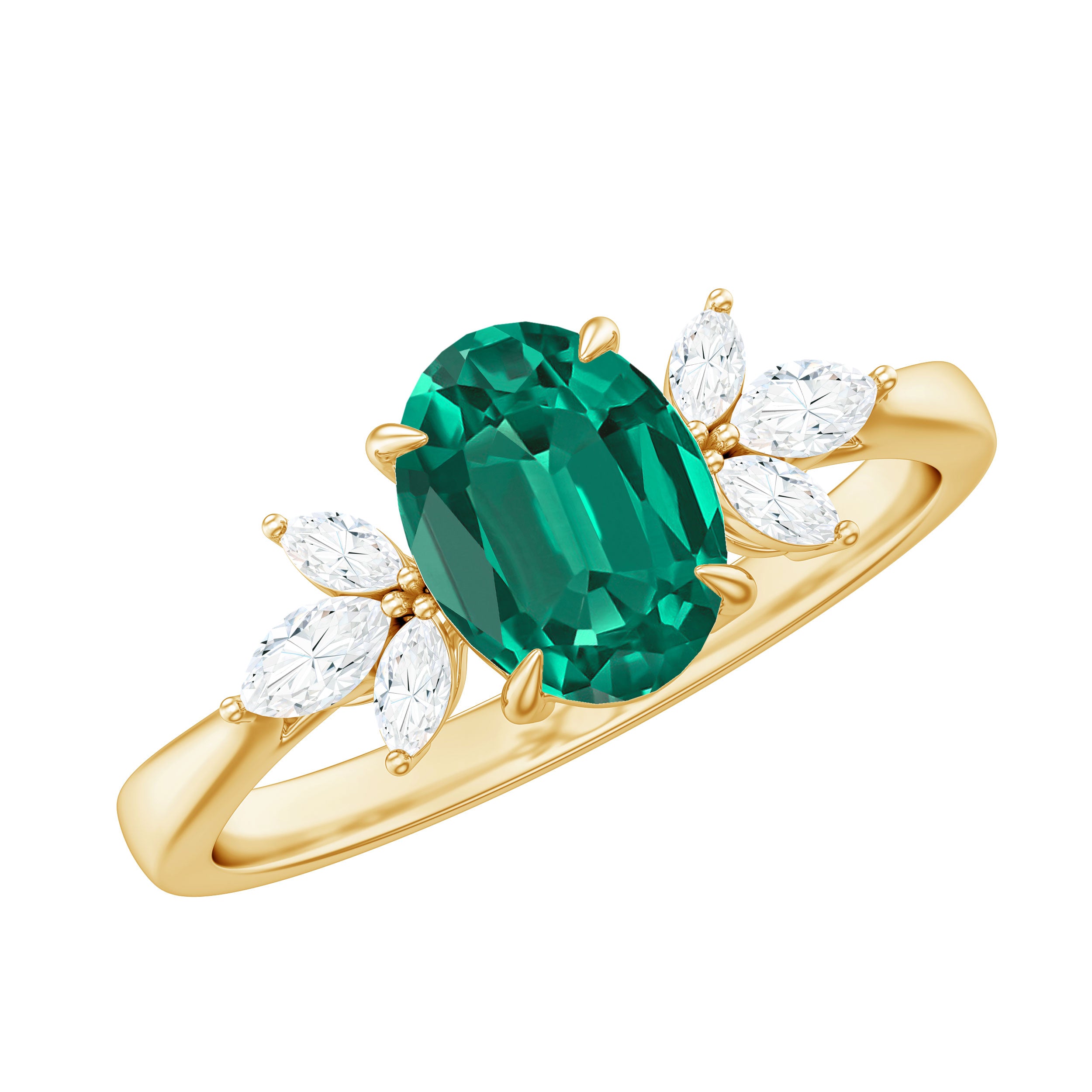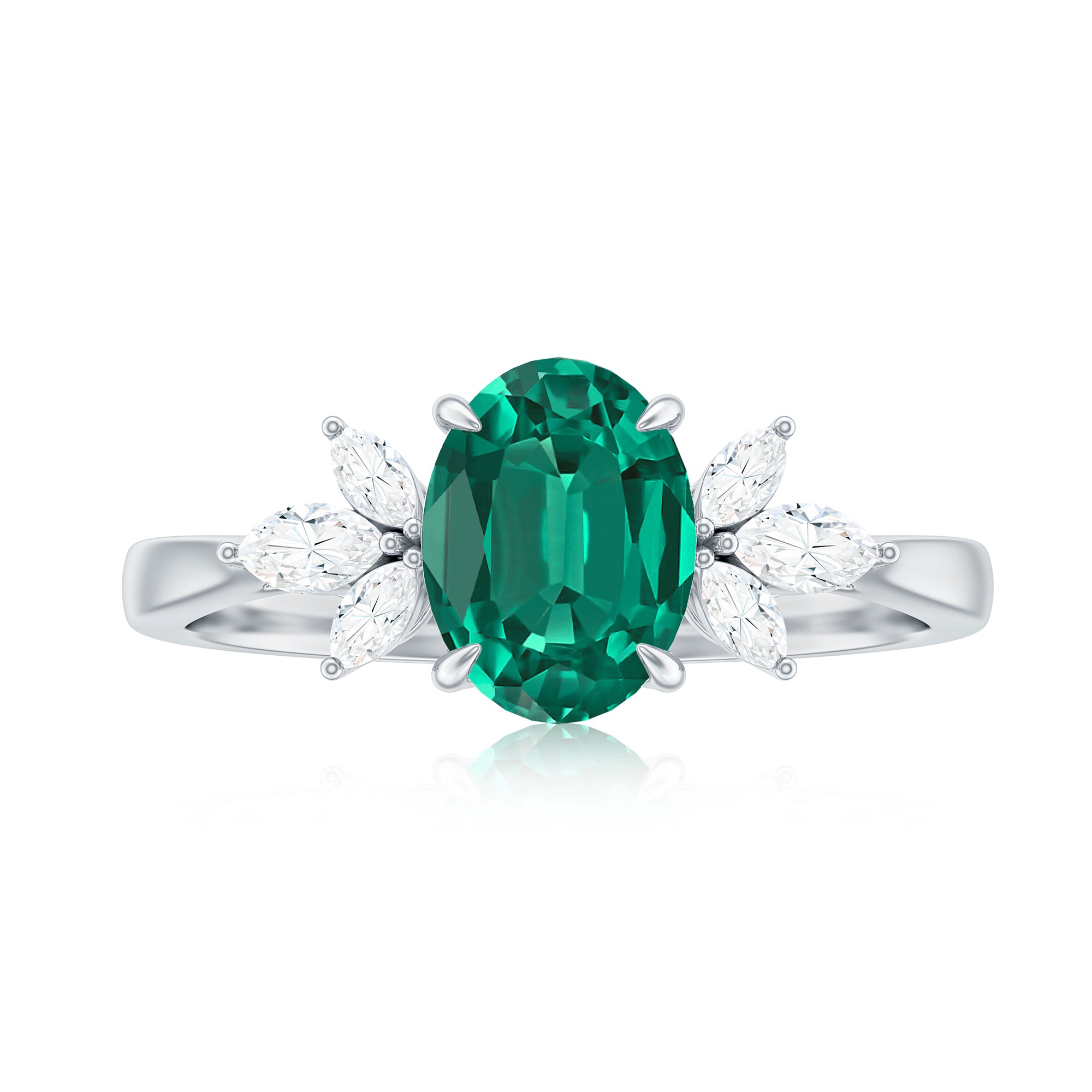 1.75 CT Oval Created Emerald Designer Engagement Ring with Diamond
