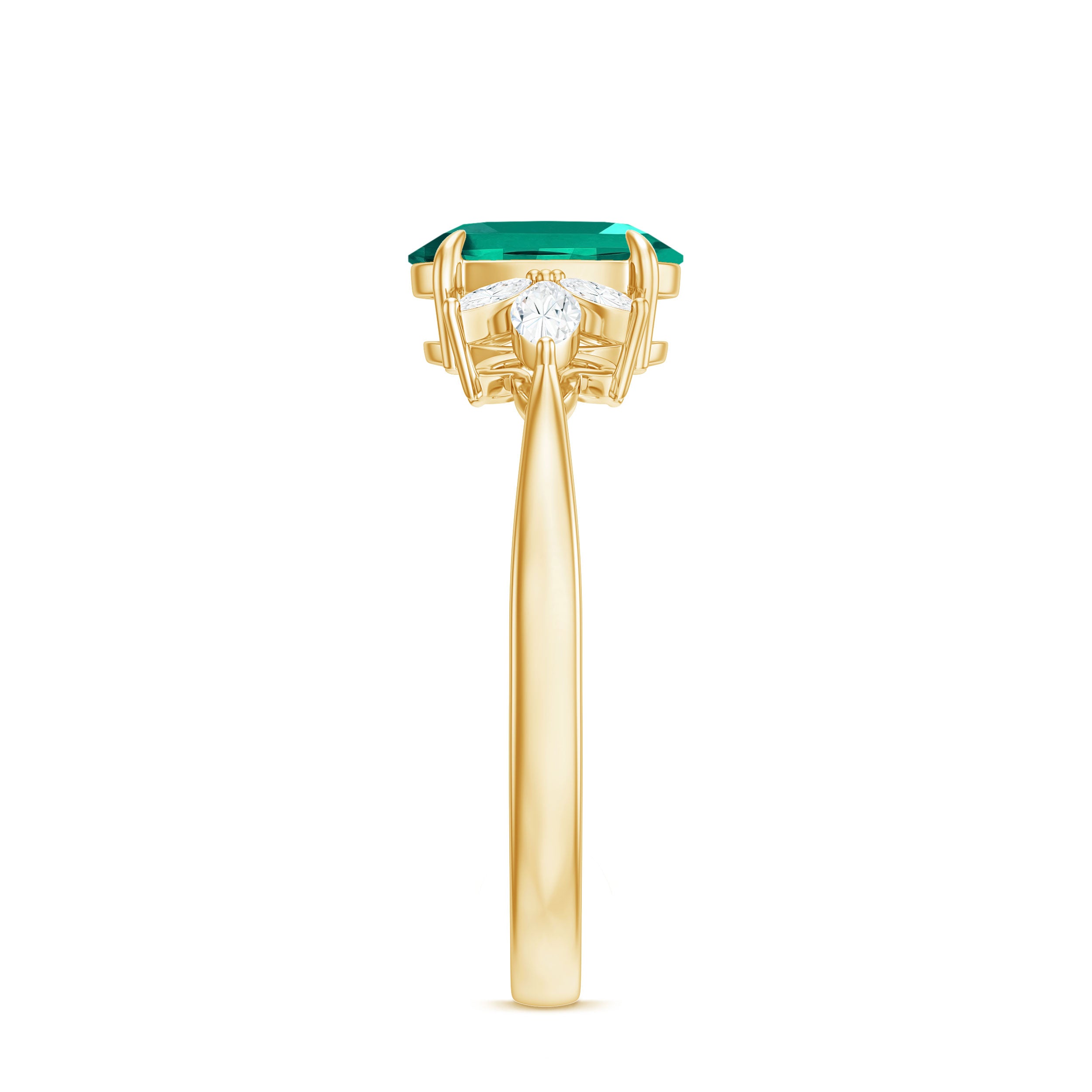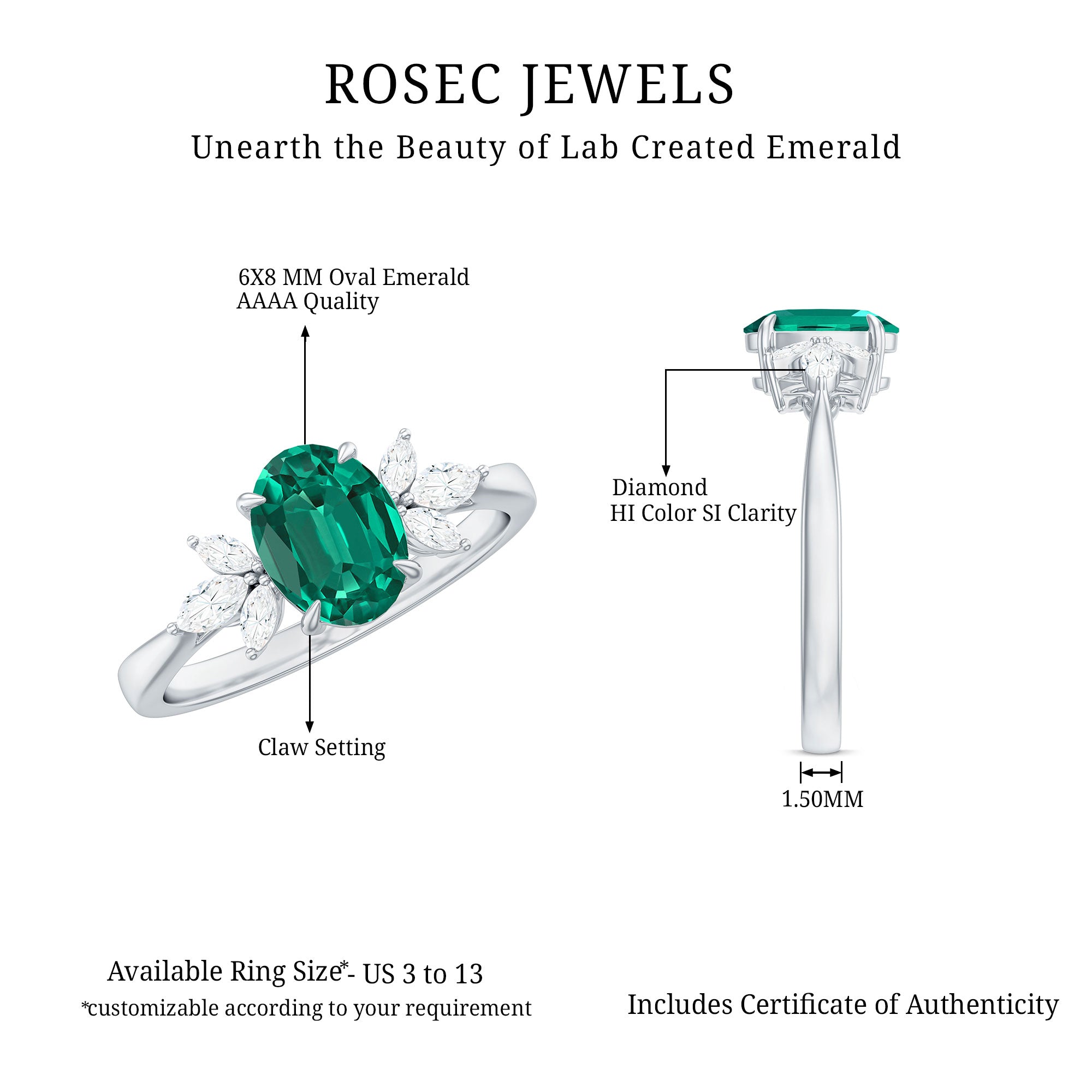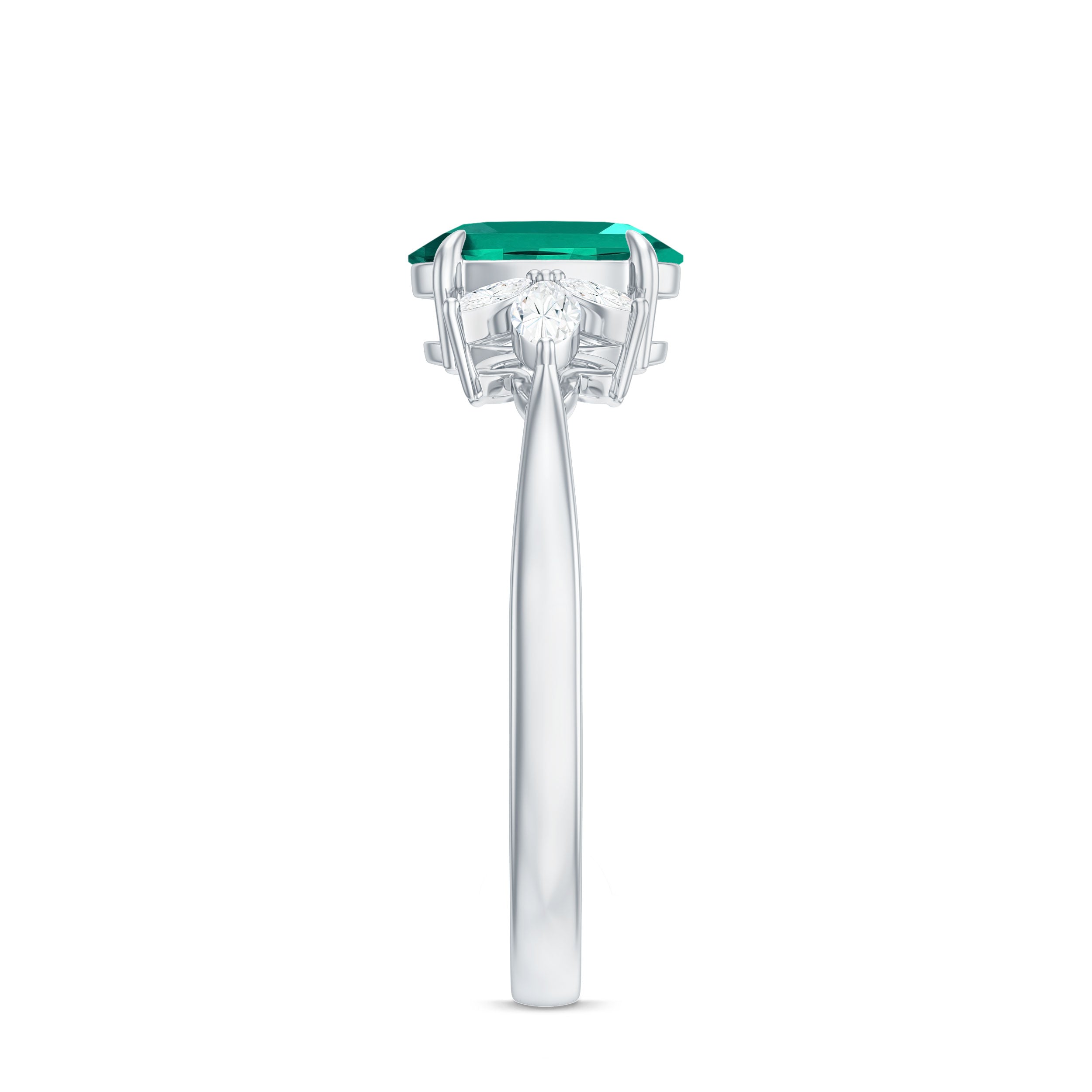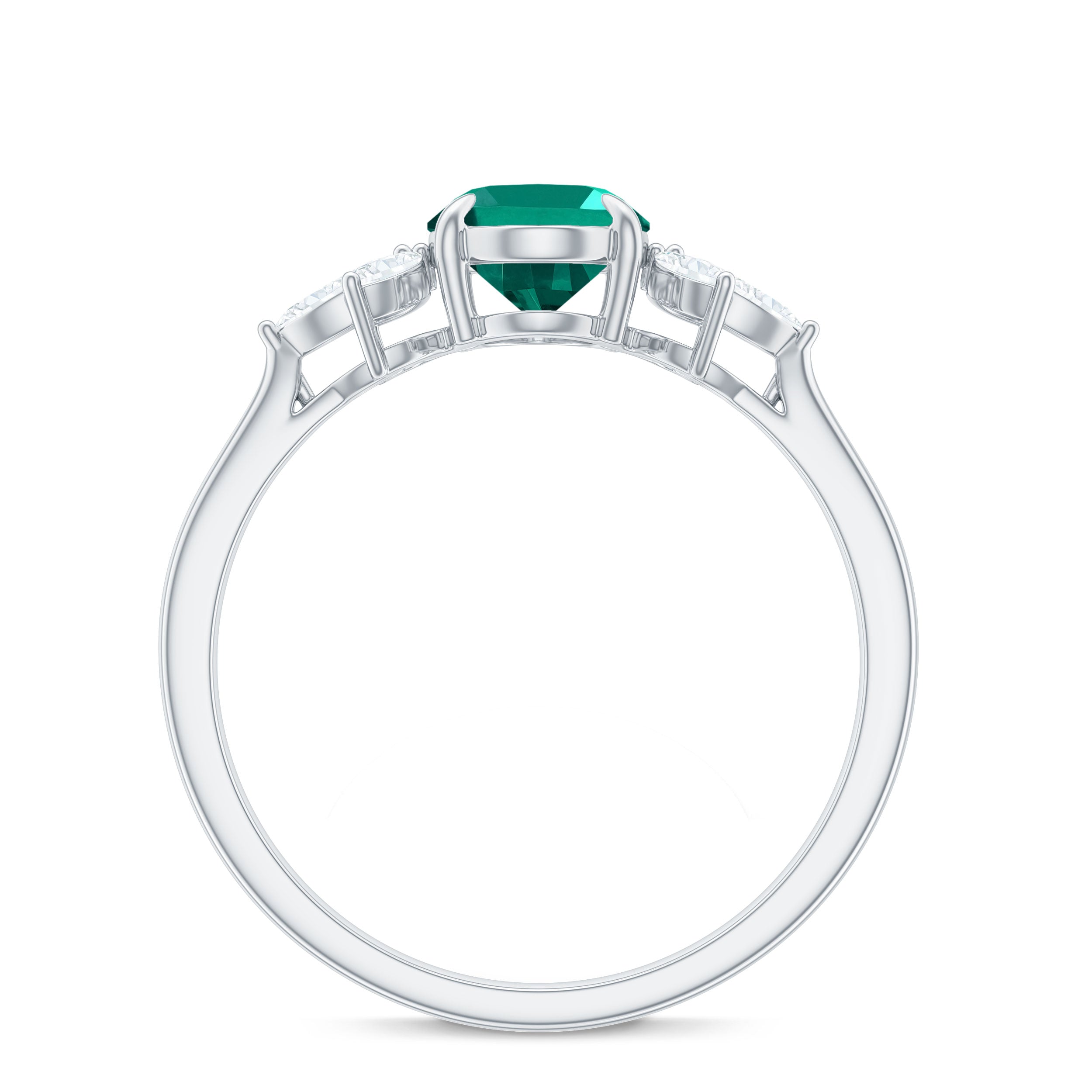 1.75 CT Oval Created Emerald Designer Engagement Ring with Diamond