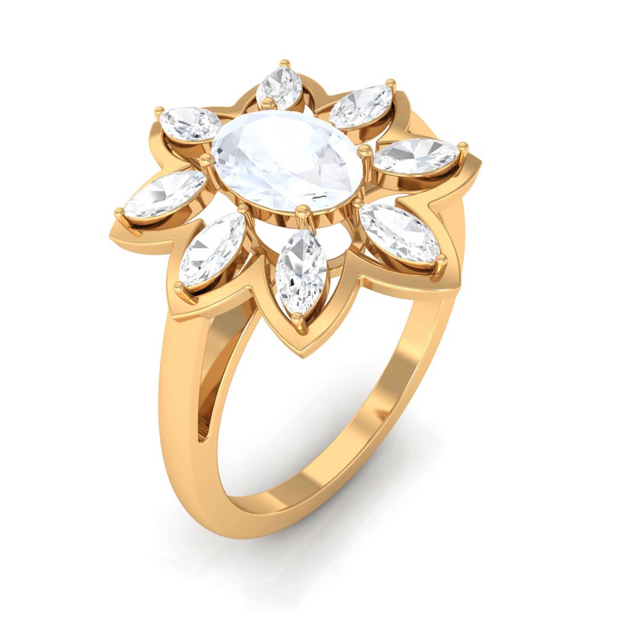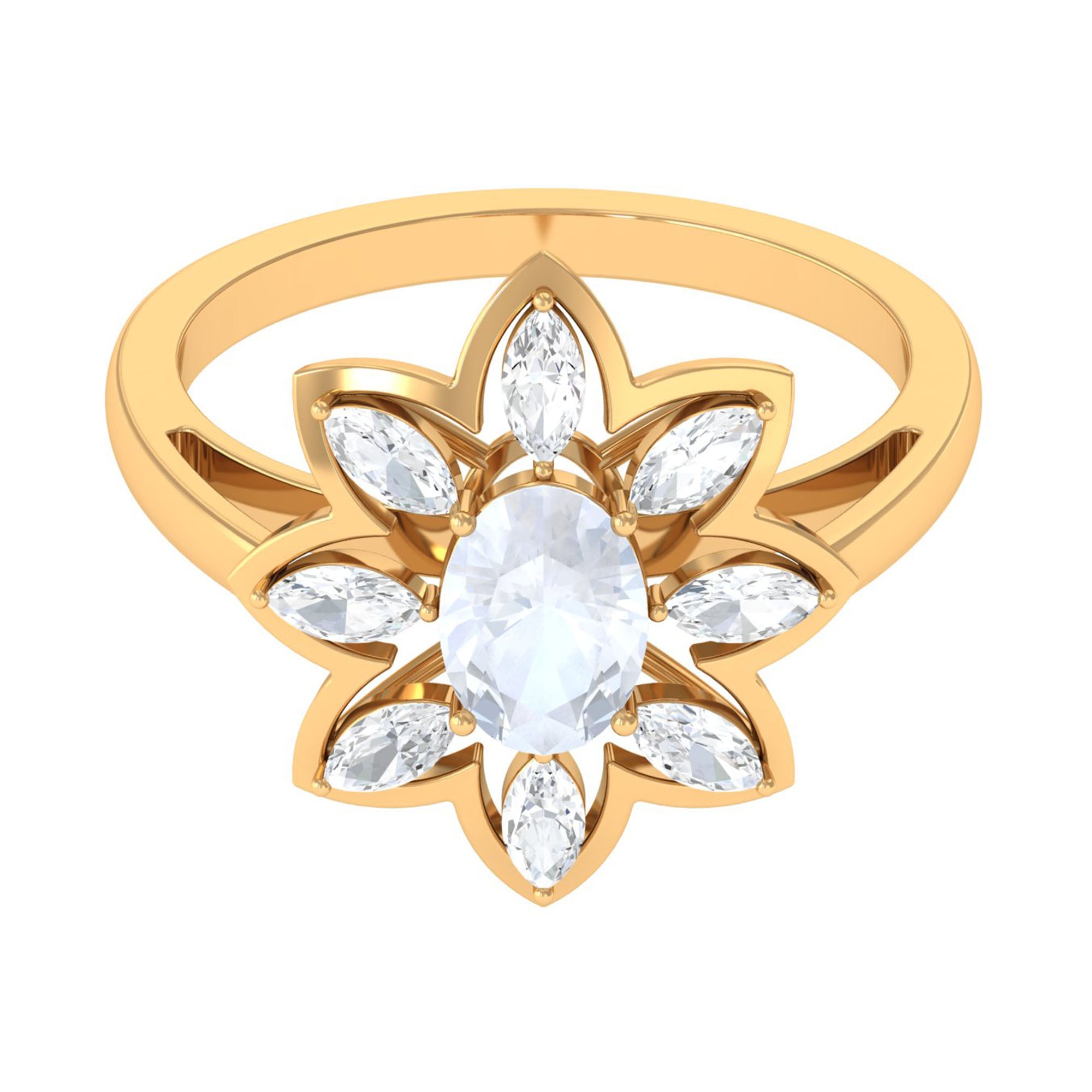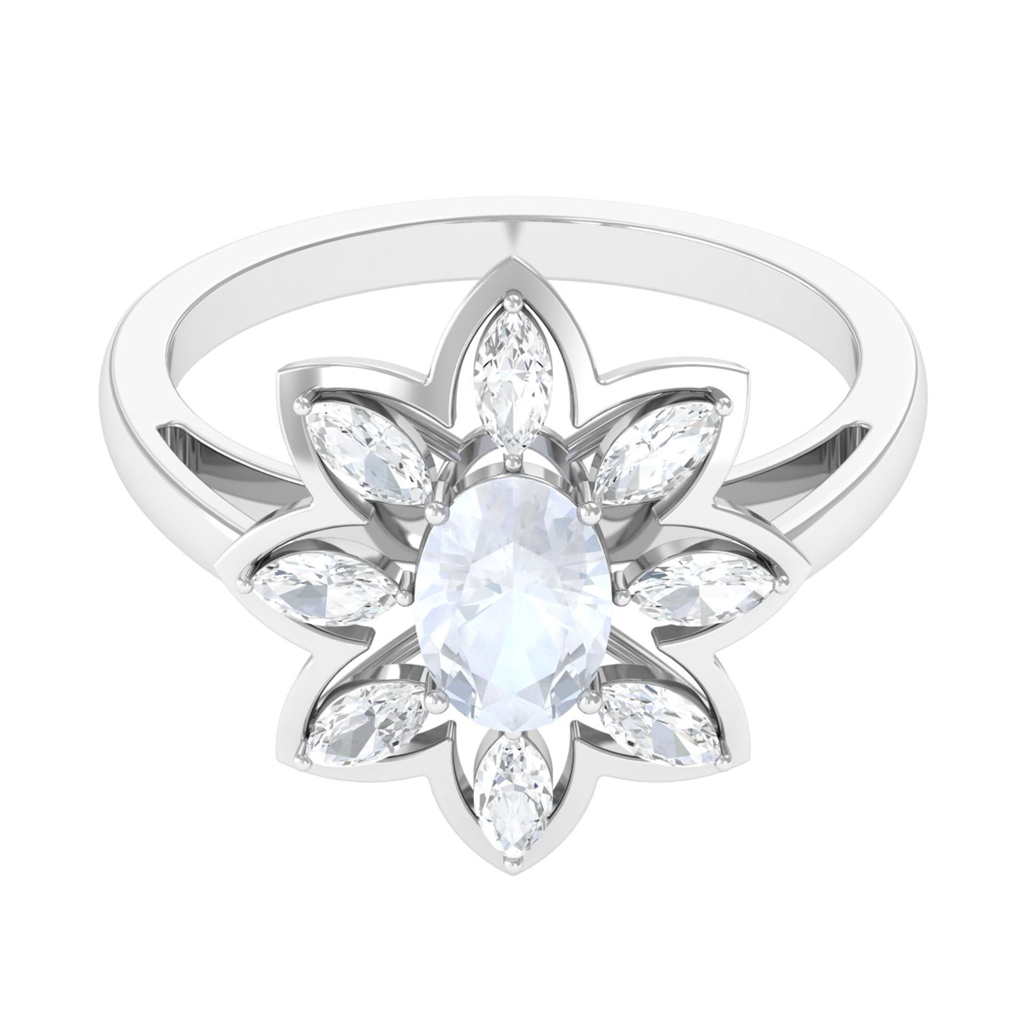 1.75 CT Oval Cut Moonstone and Moissanite Flower Cocktail Ring
