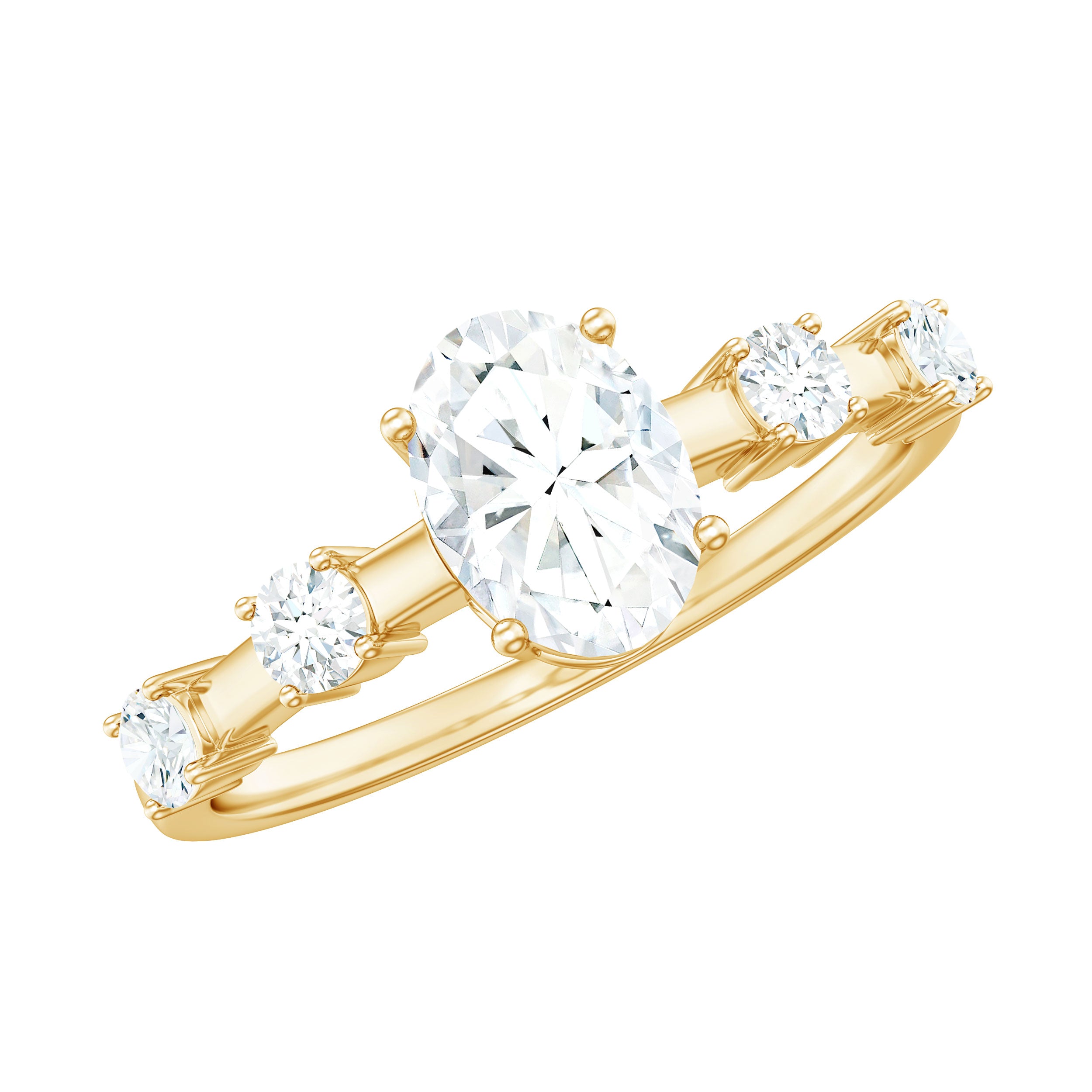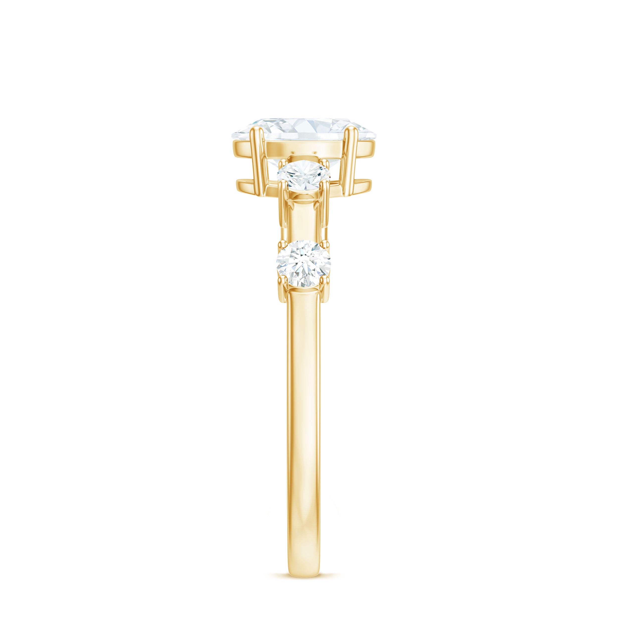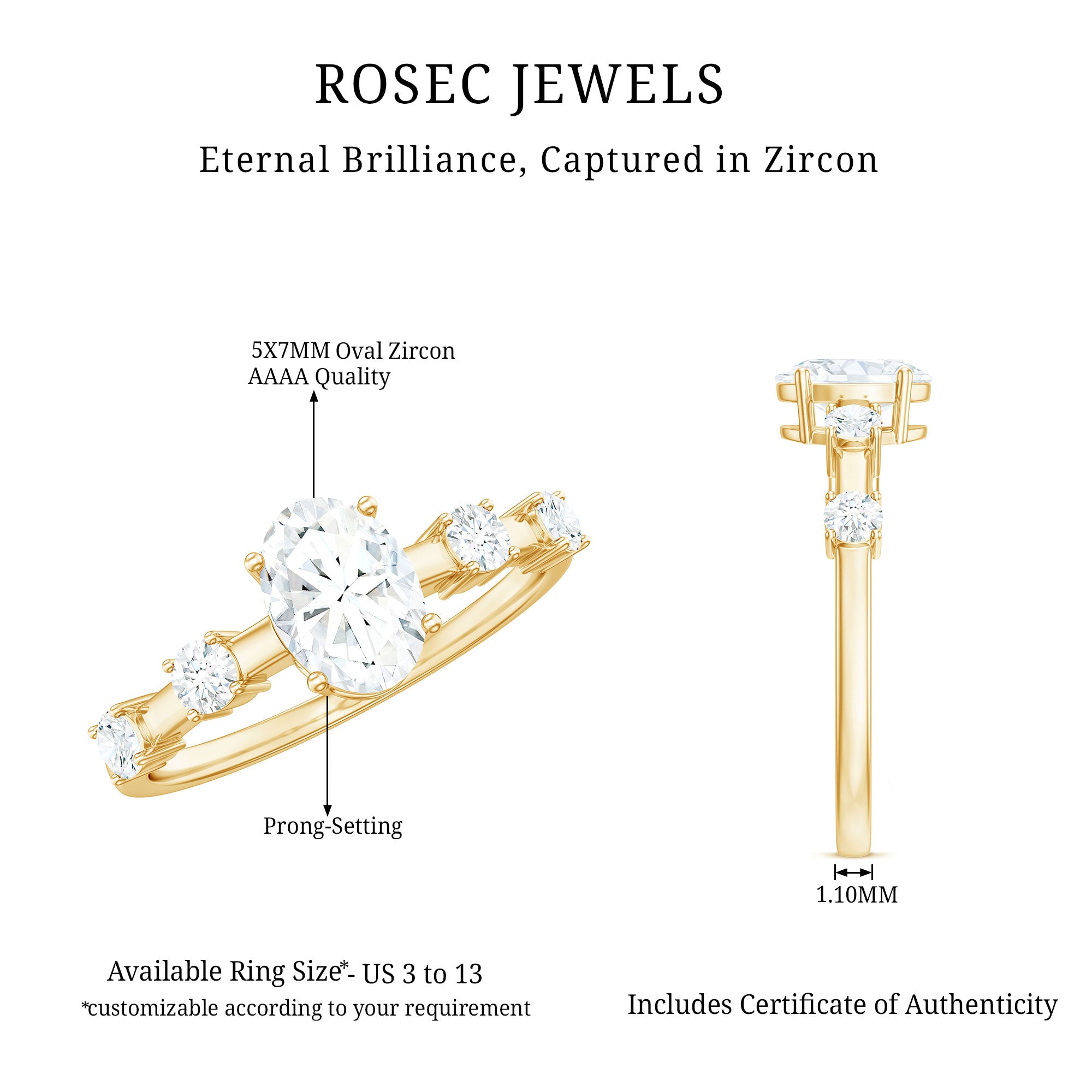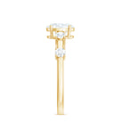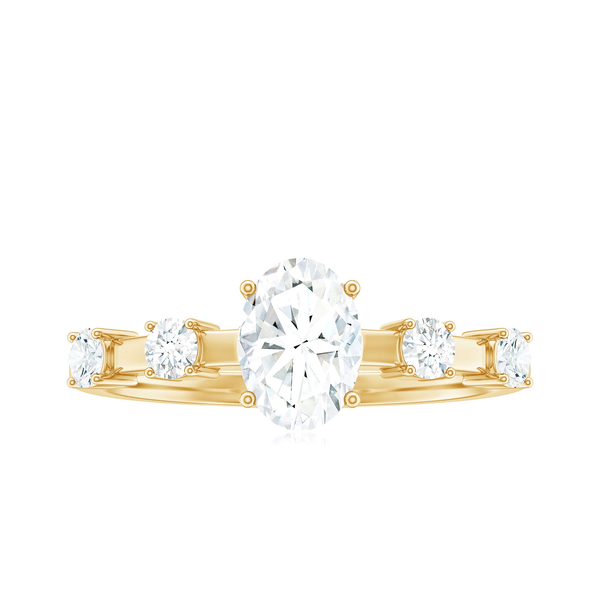 Your love is a tale as old as time, true as it can be. Put this charming Oval Engagement Ring on her finger. This Cubic Zirconia Engagement Ring features a Oval Shape center stone with an impeccably radiant shine and Round Shape Simulated Diamond set as Side Stones in a simple way, crafted in gold.