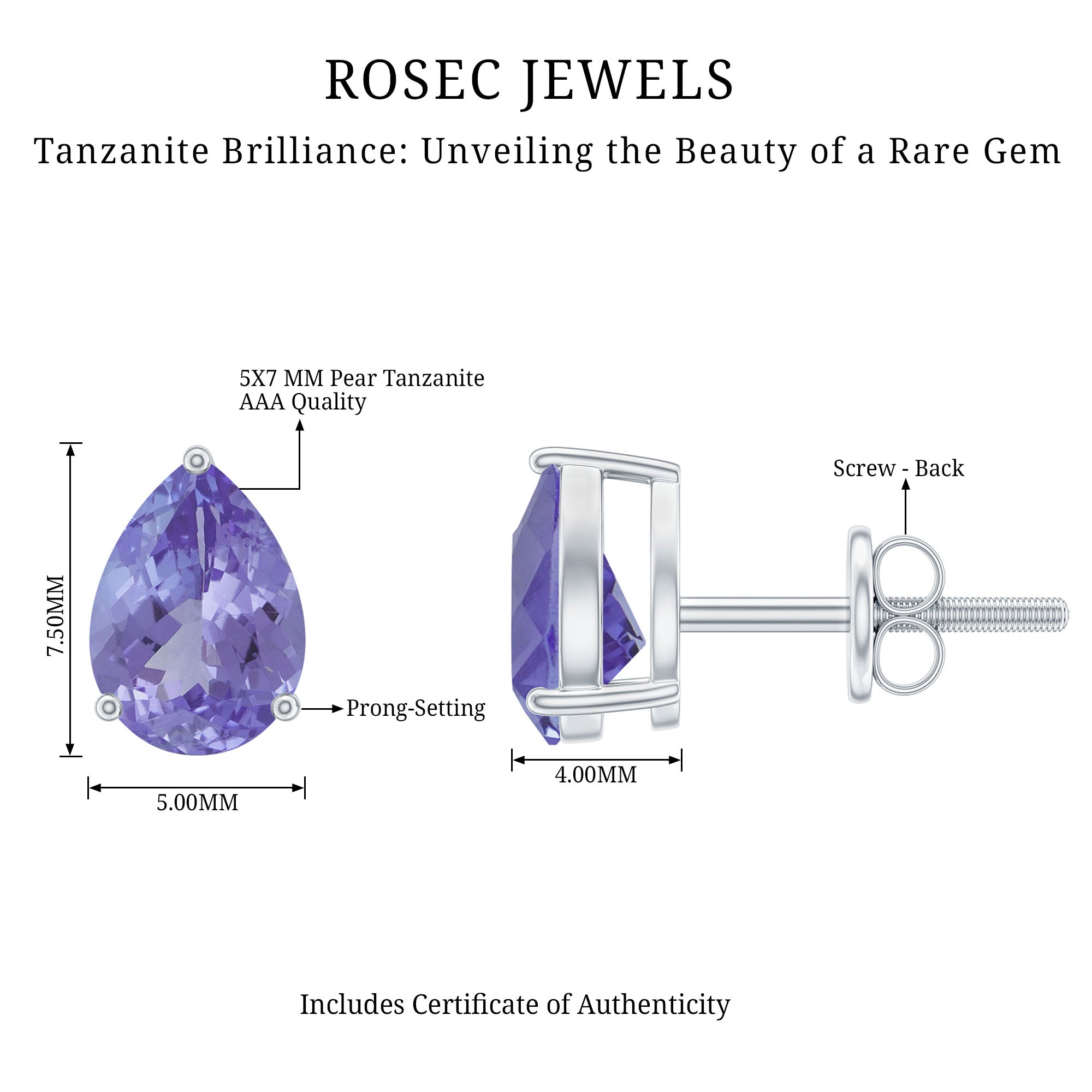 1.75 CT Pear Cut Tanzanite Solitaire Stud Earrings