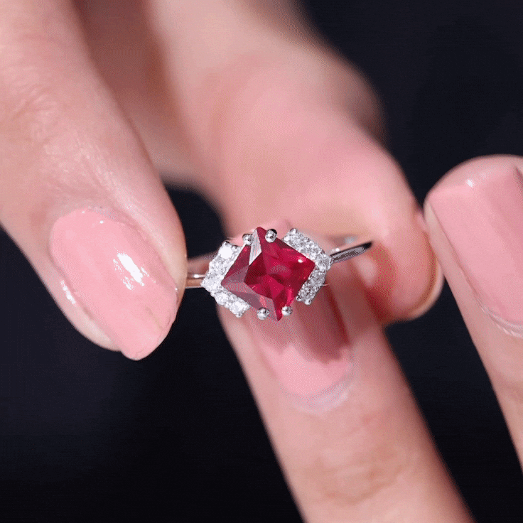 1.75 CT Princess Cut Lab Grown Ruby Engagement Ring with Diamond