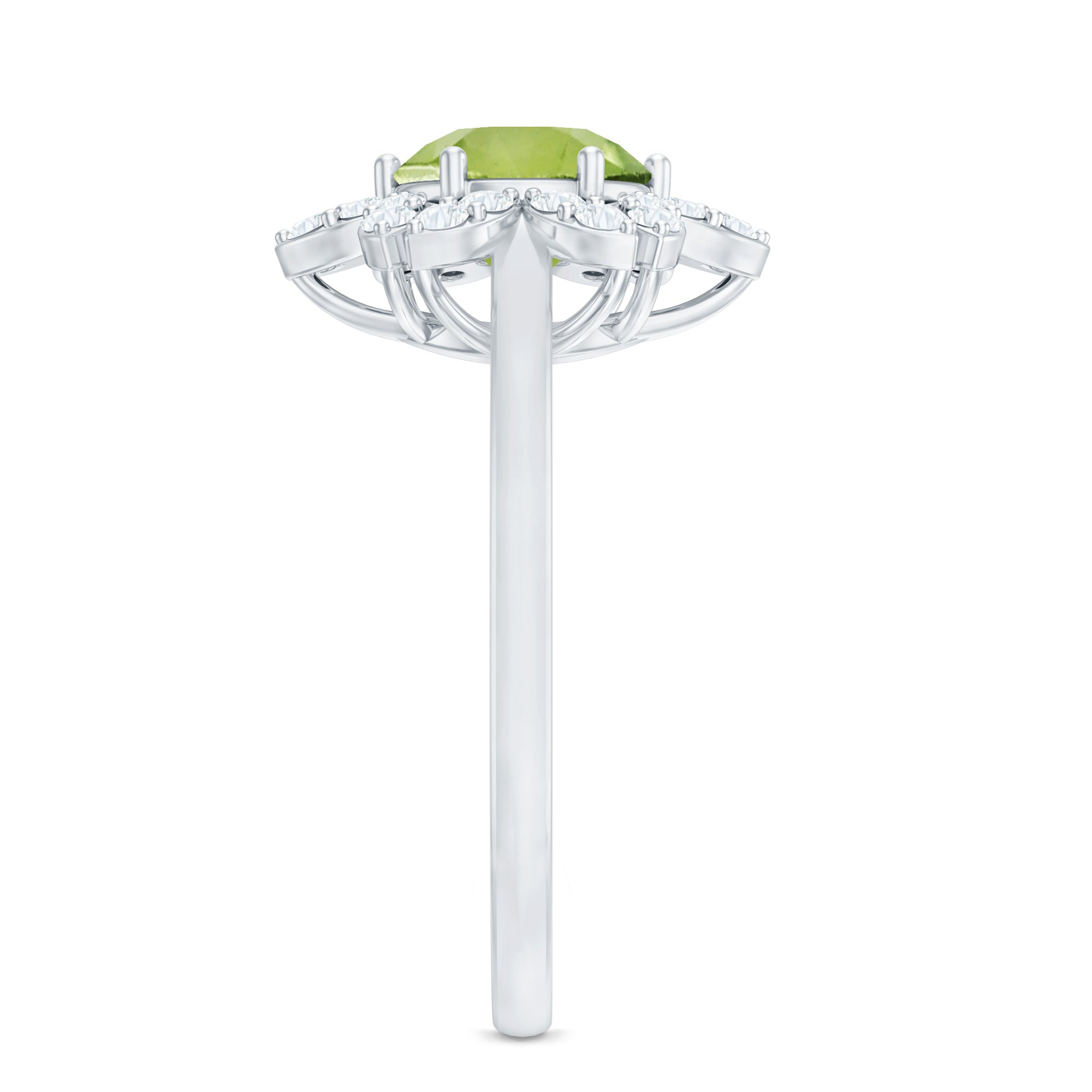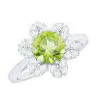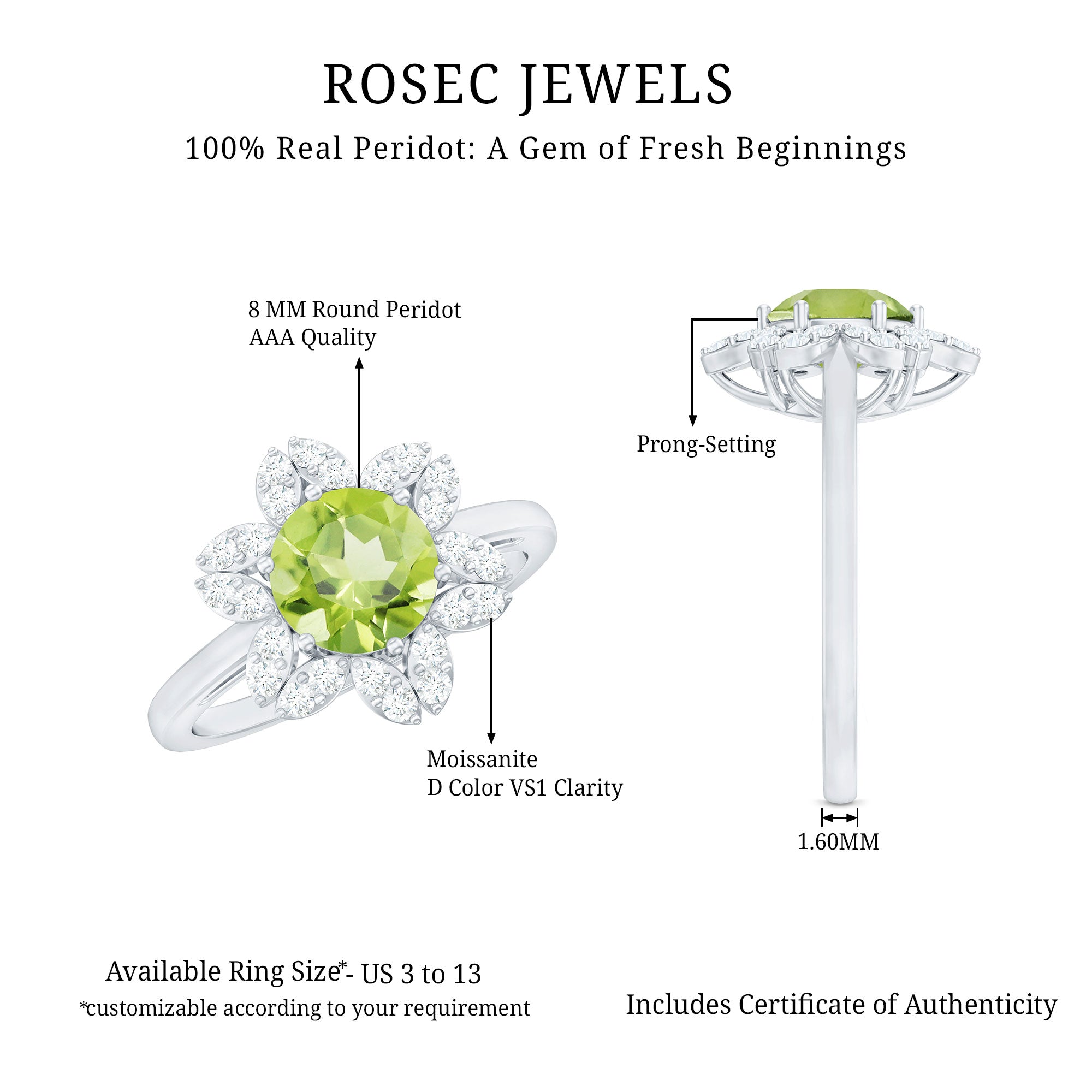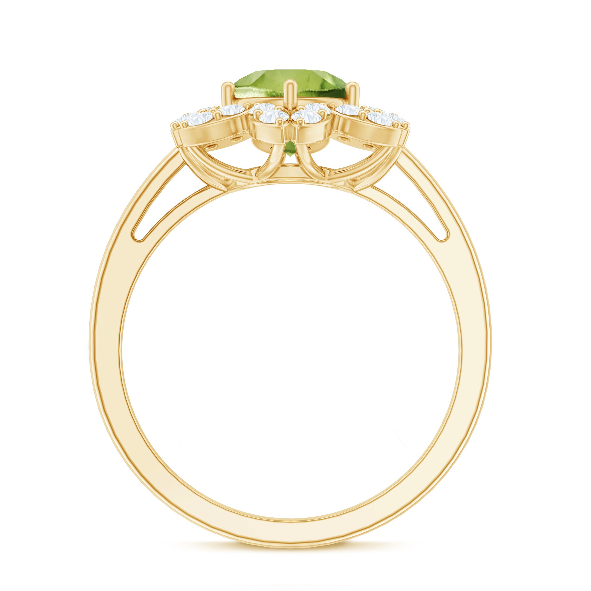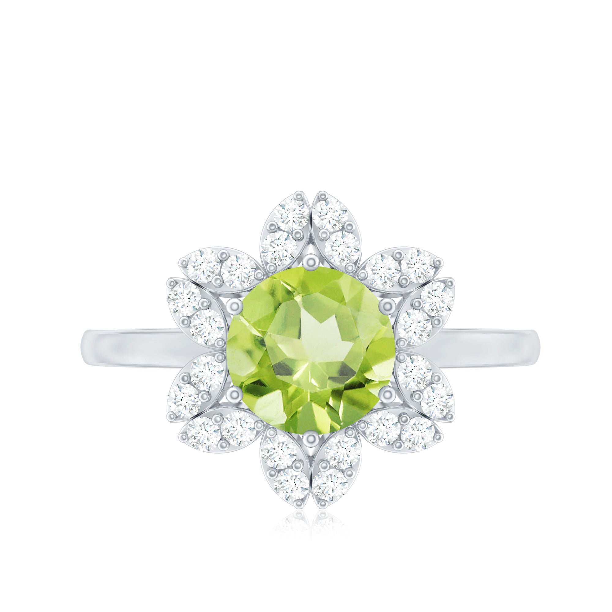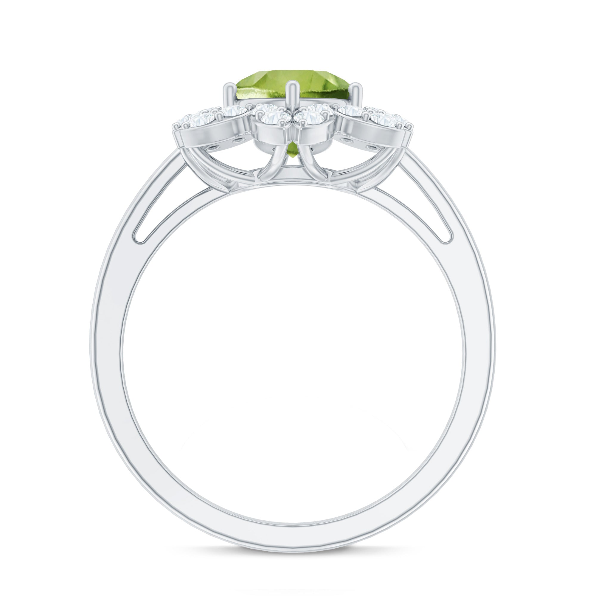 1.75 CT Real Peridot Flower Ring with Moissanite Halo