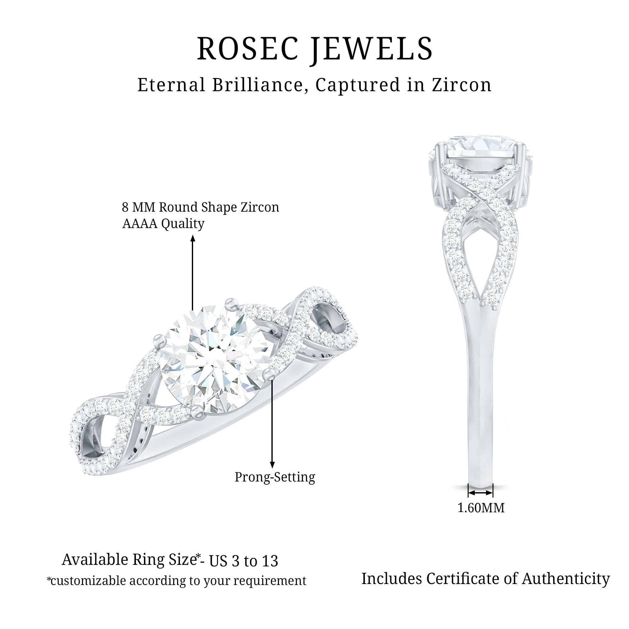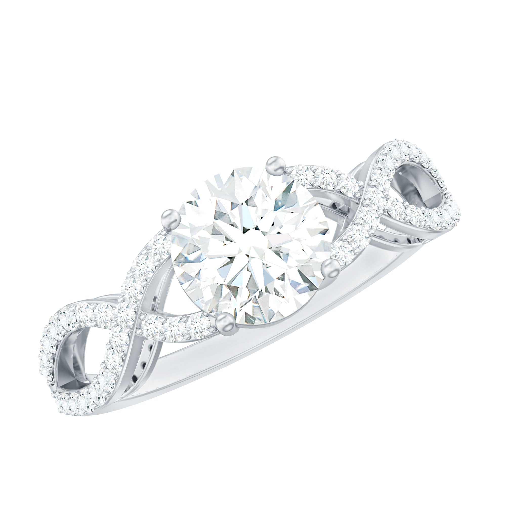 1.75 CT Round Cut Solitaire Zircon Crossover Engagement Ring