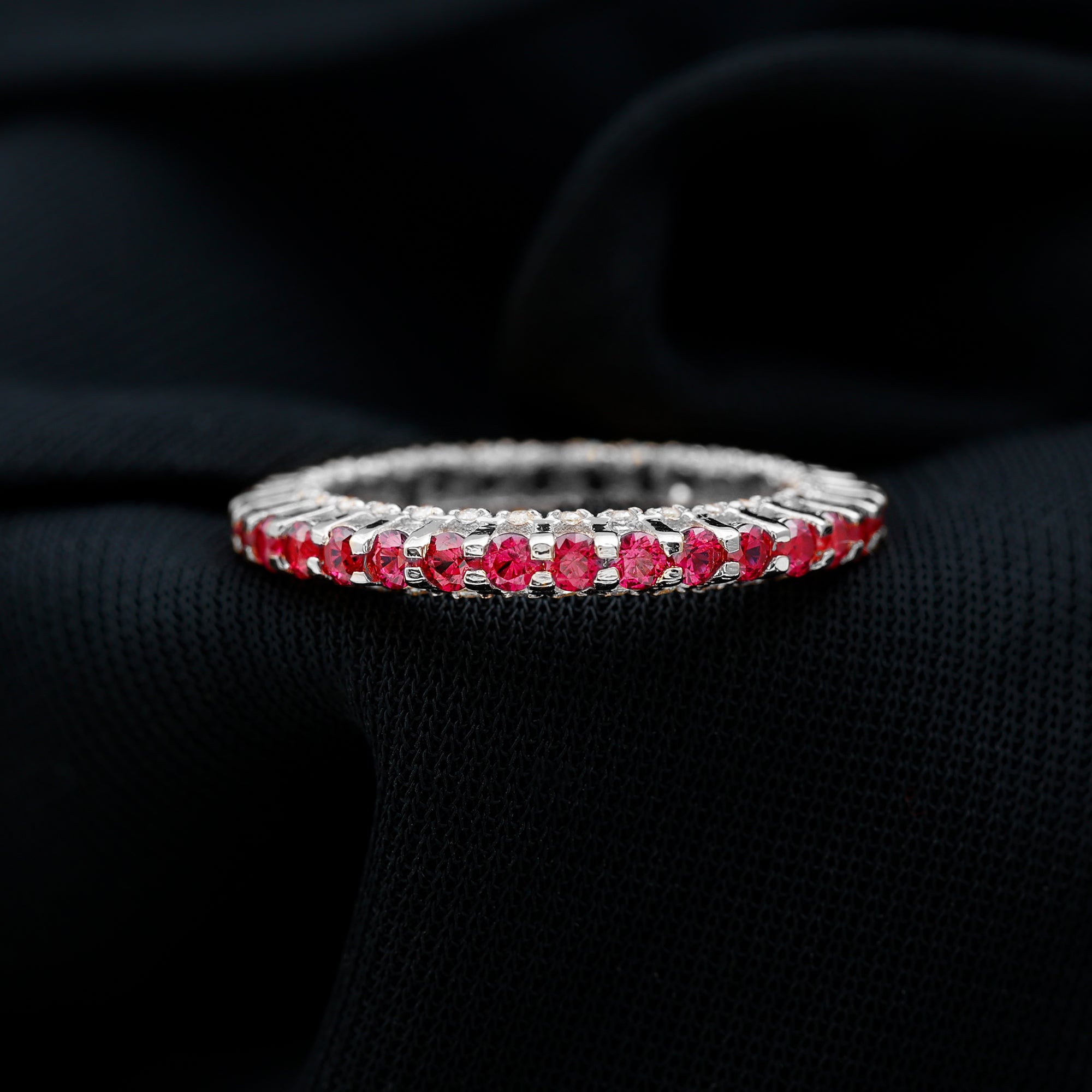 1.75 CT Round Shape Lab Grown Ruby and Diamond Eternity Wedding Band